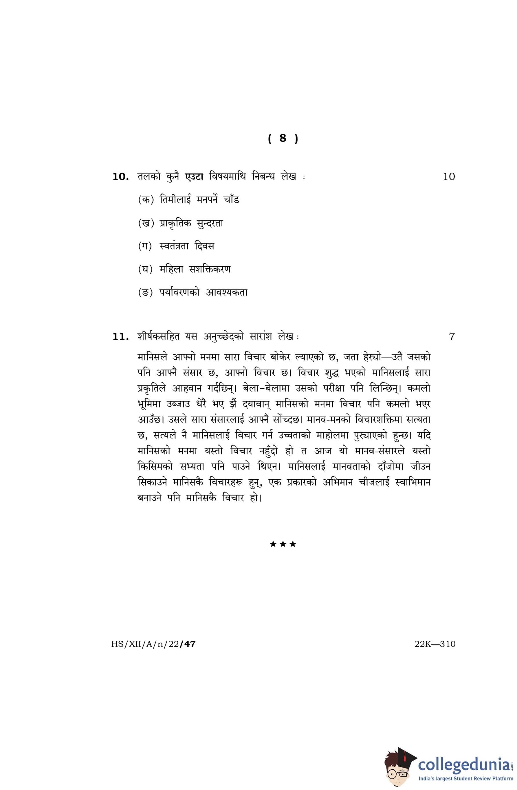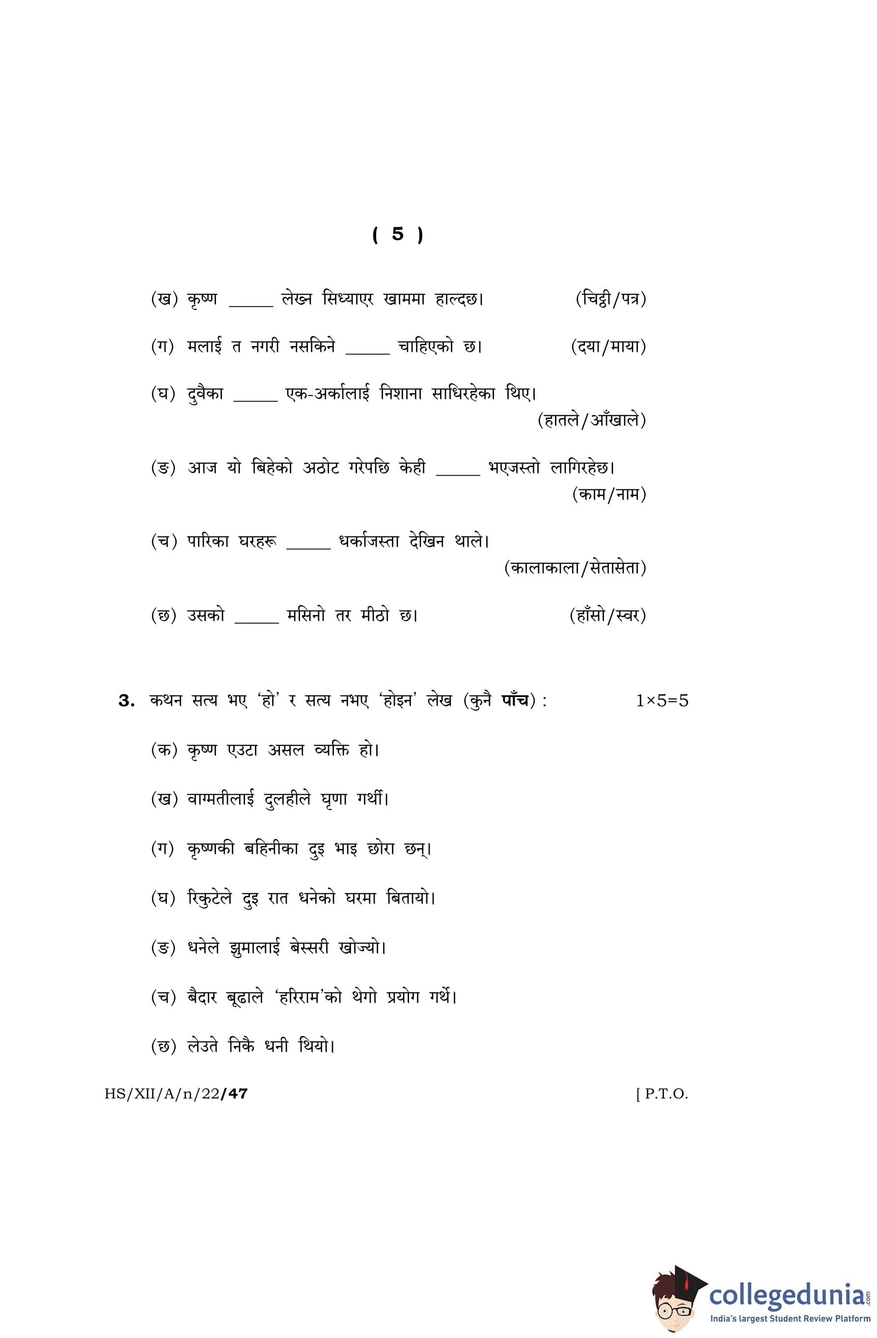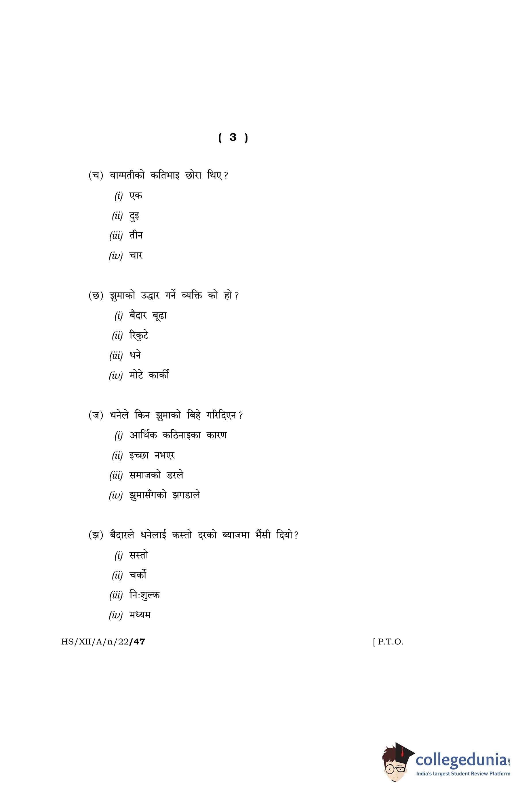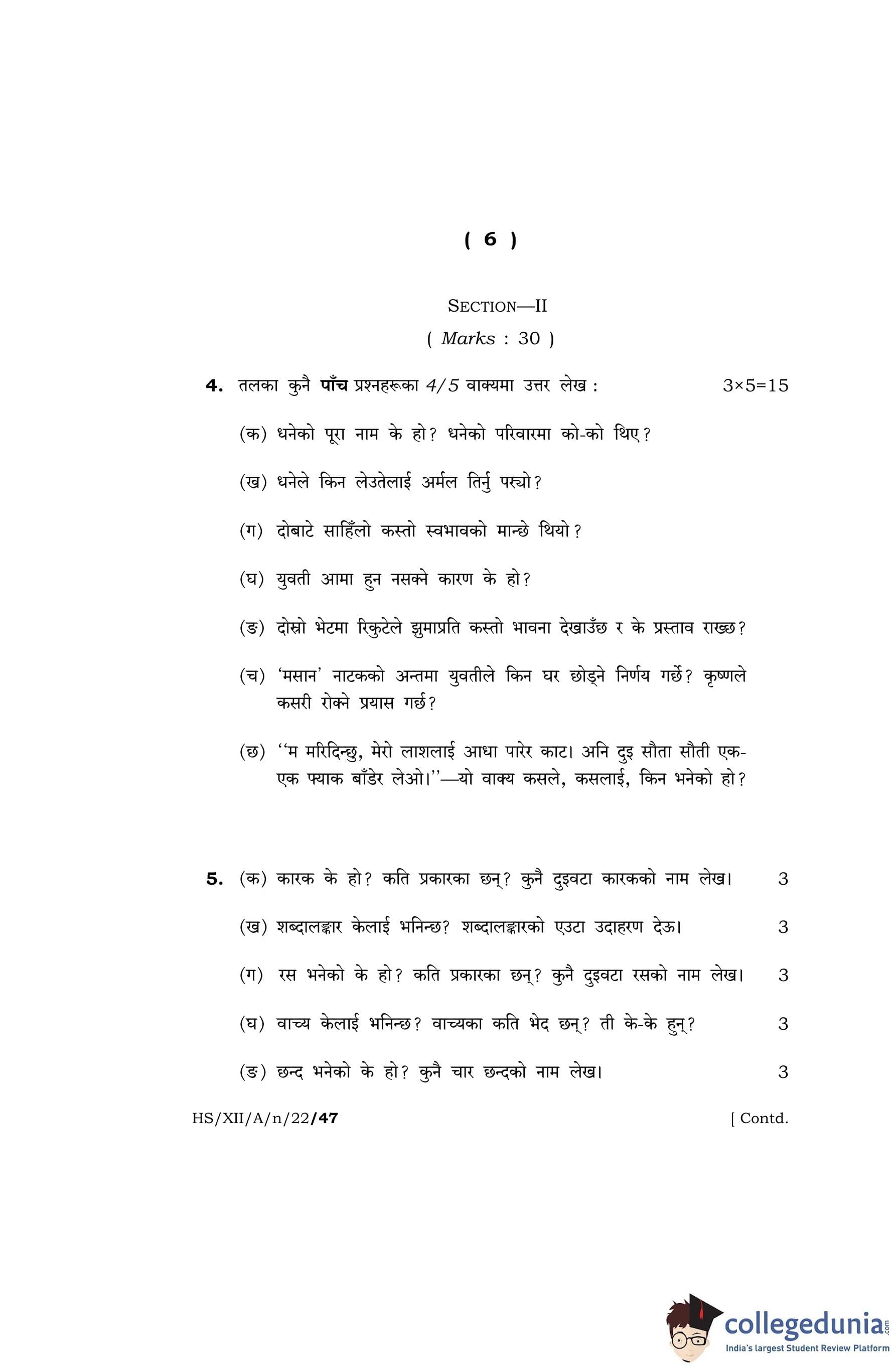 MBOSE Class 12 Nepali (Elective) Question Paper 2022