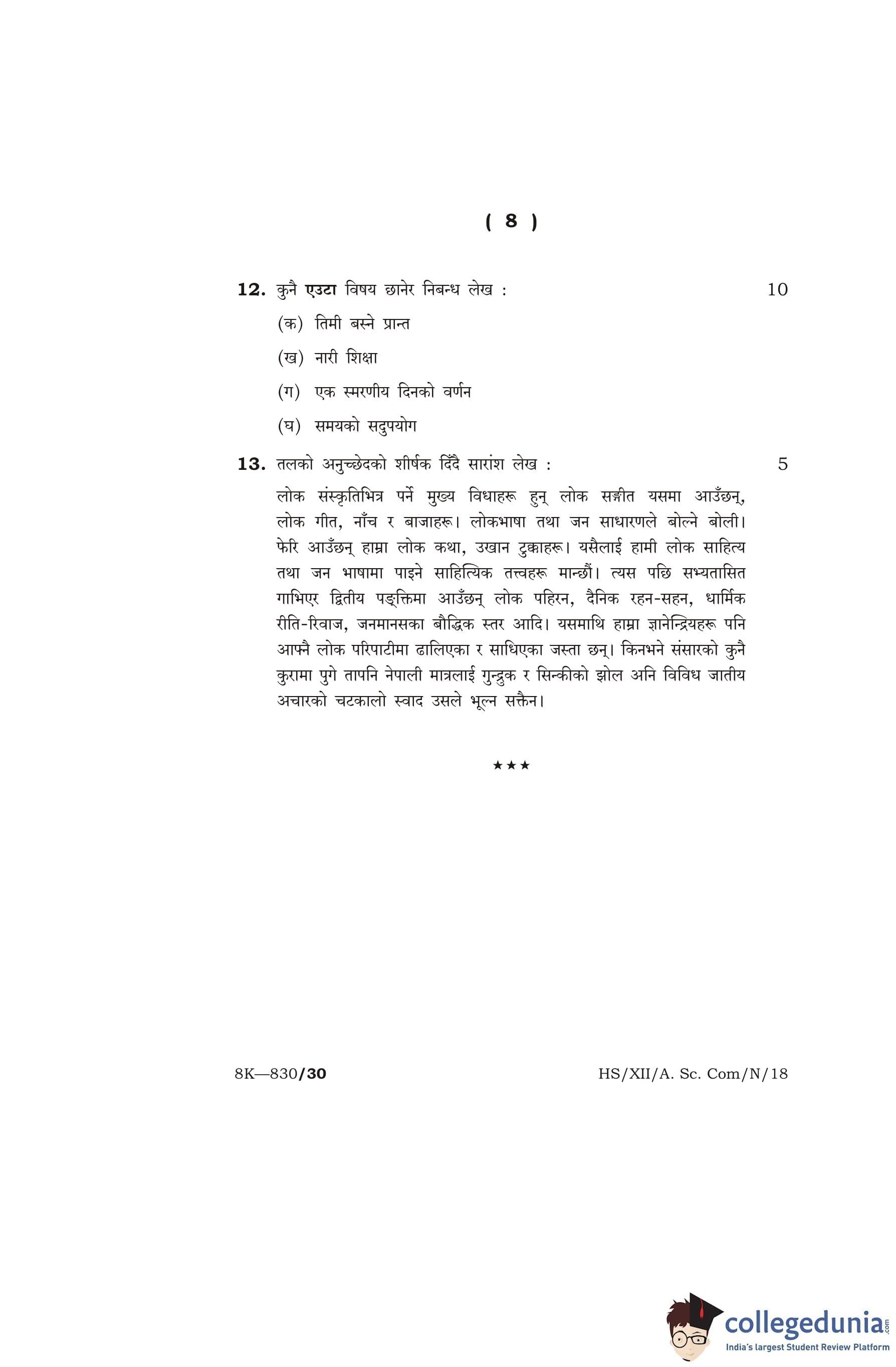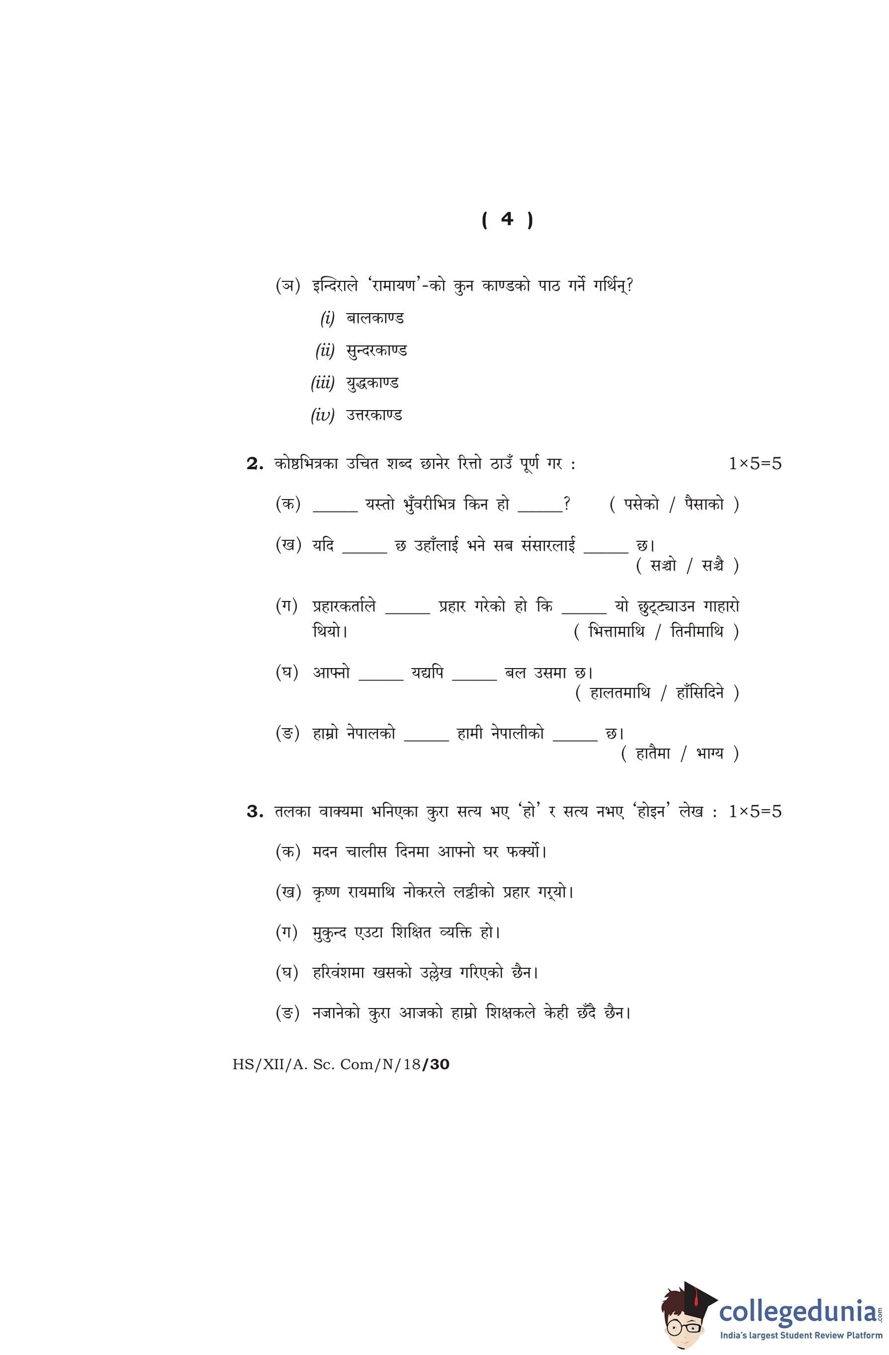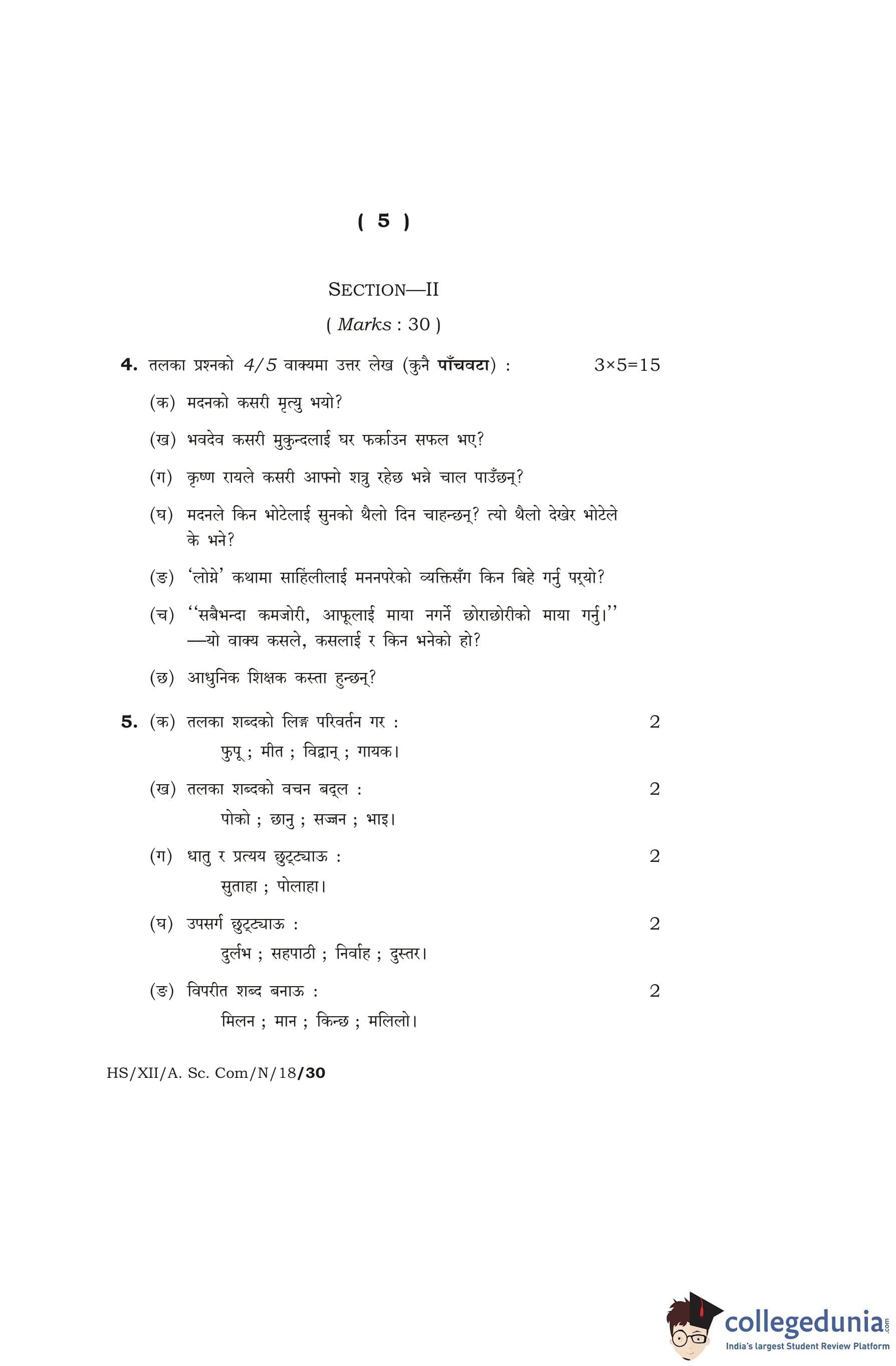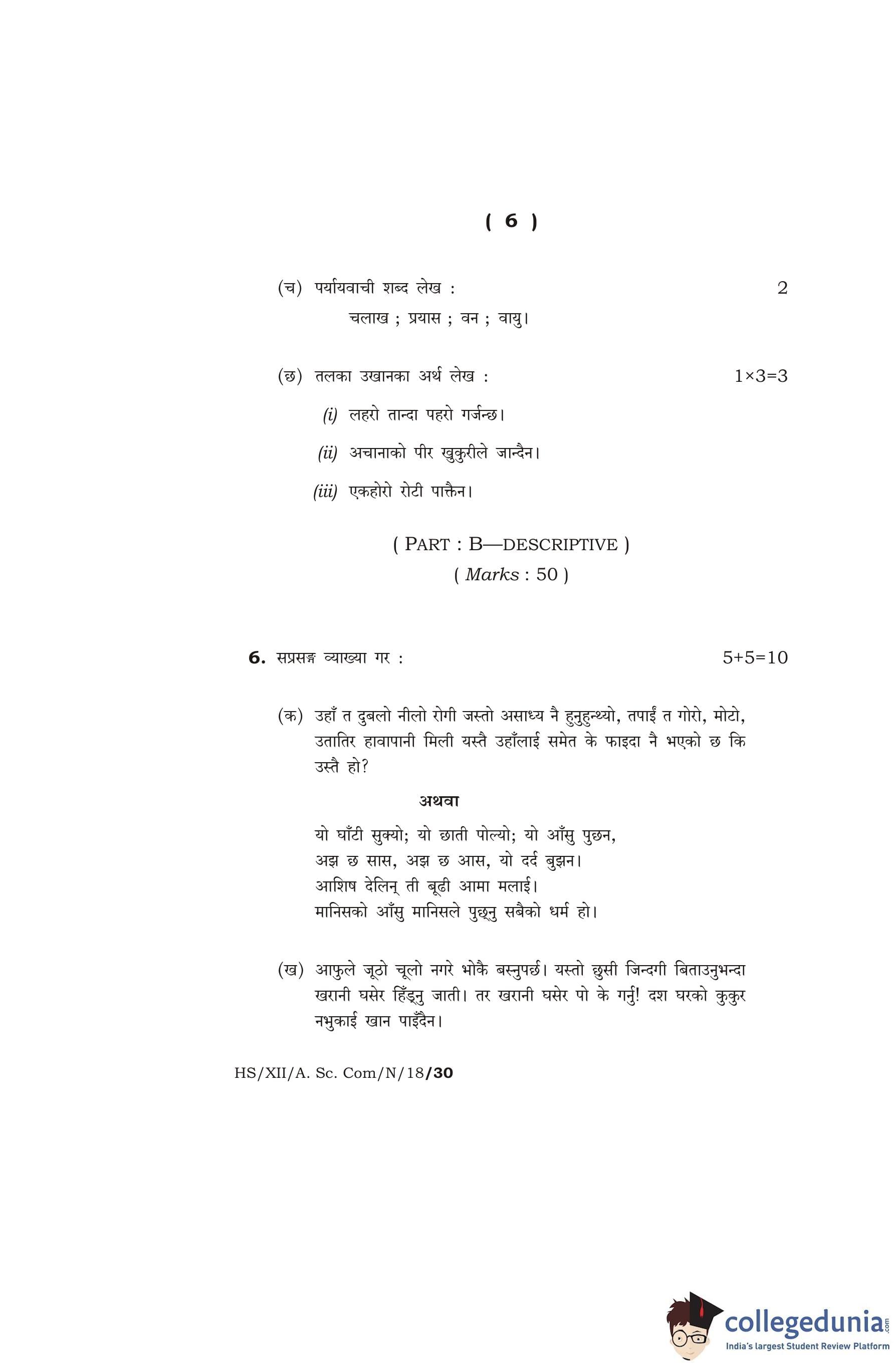 MBOSE Class 12 Nepali Question Paper 2018 with Answer Key pdf is available for download here. The exam was conducted by Meghalaya Board of School Education on March 8, 2018 in the Morning Session 10 AM to 1 PM. The question paper comprised a total of 13 questions divided among 2 sections.