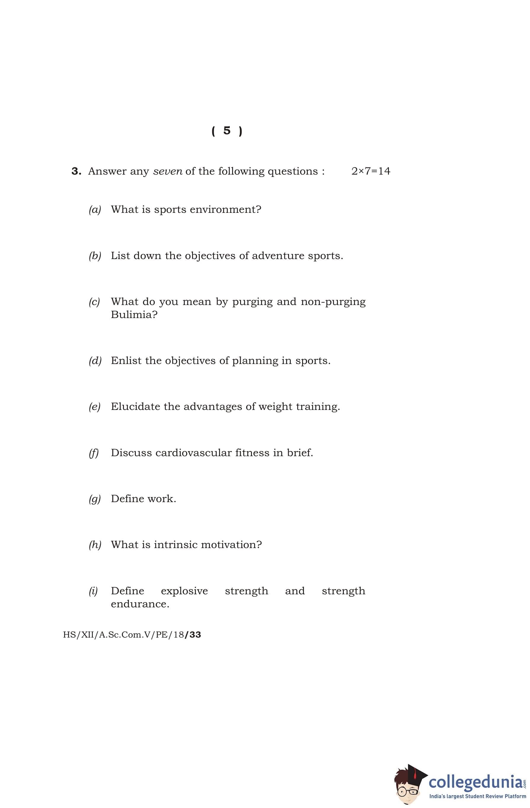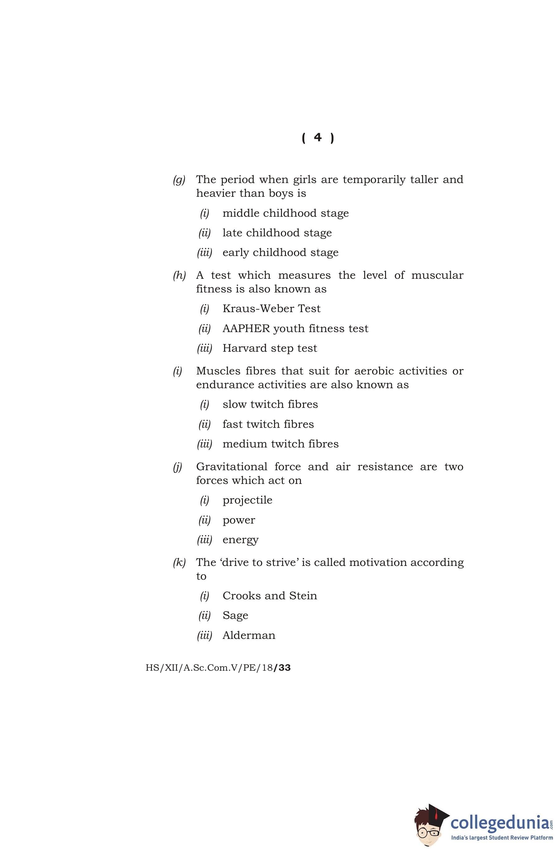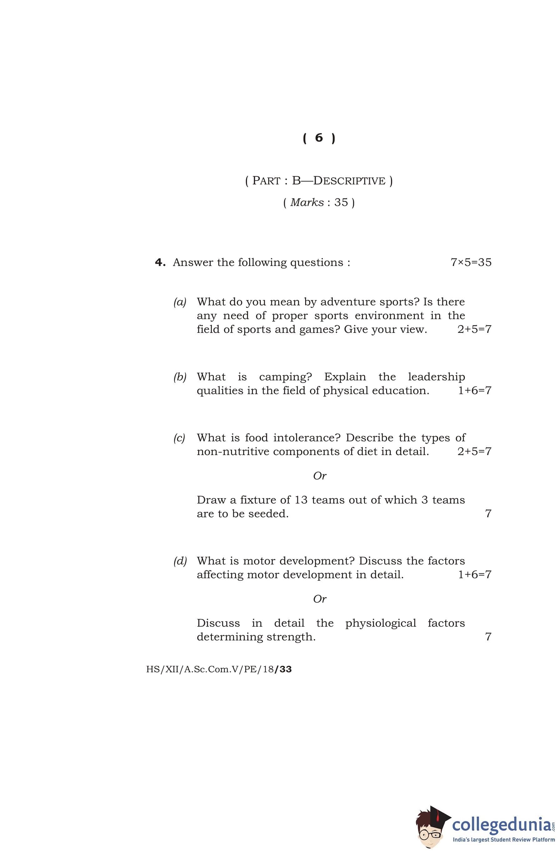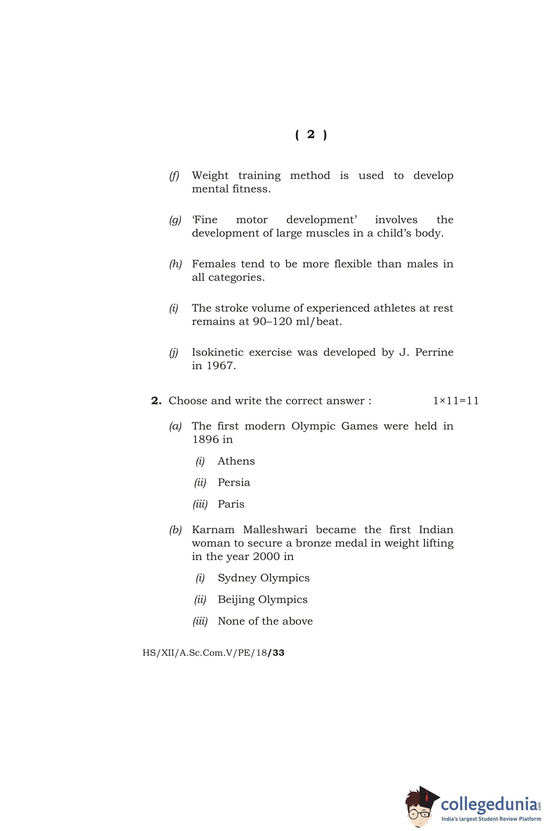 MBOSE Class 12 Physical Education Question Paper 2018 with Answer Key pdf is available for download here. The exam was conducted by Meghalaya Board of School Education on March 29, 2018 in the Morning Session 10 AM to 1 PM. The question paper comprised a total of 4 questions divided among 2 sections.