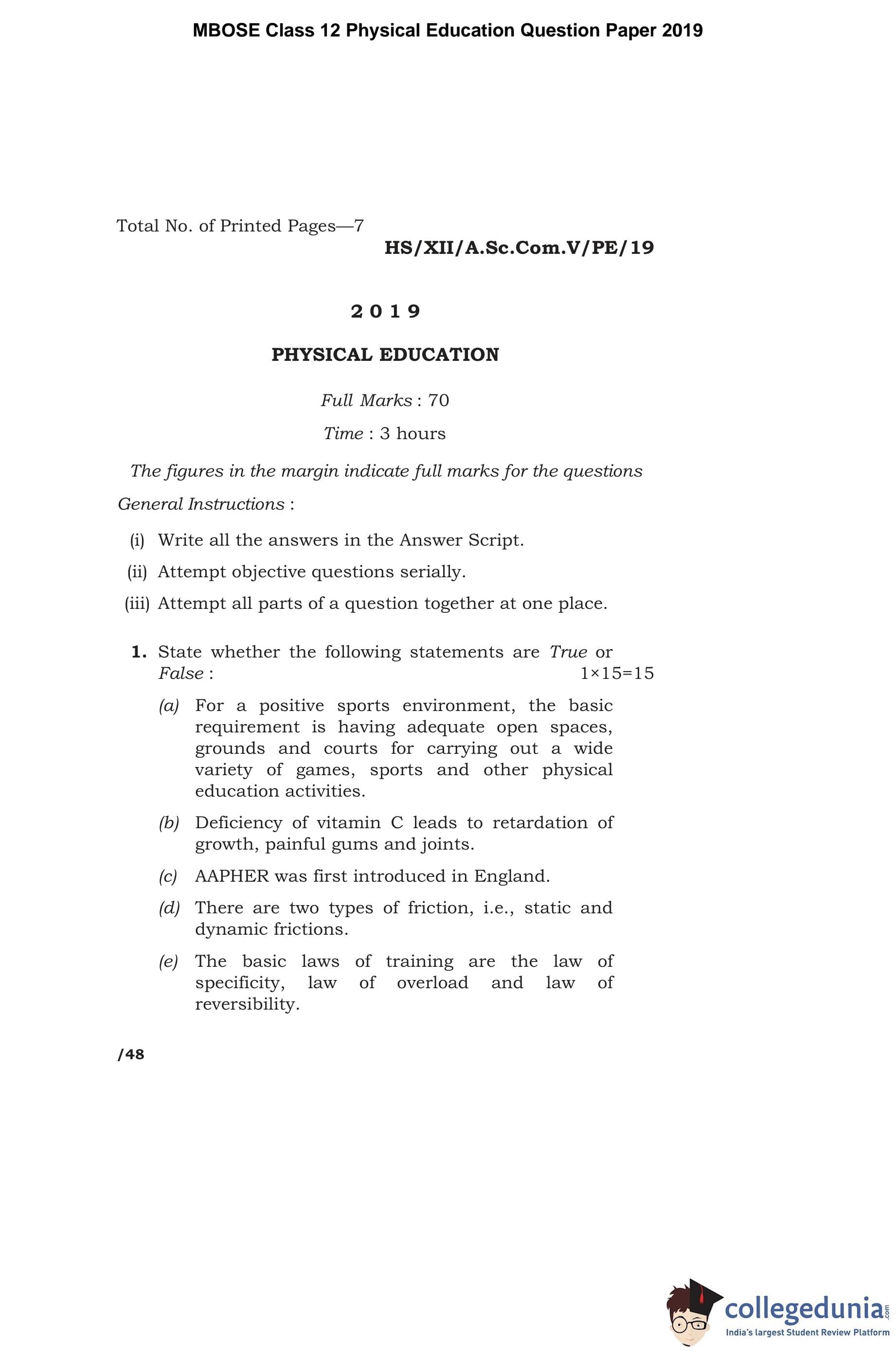 | MBOSE Class 12 Physical Education Question Paper 2019 PDF | MBOSE Class 12 Physical Education Answer Key 2019 PDF |