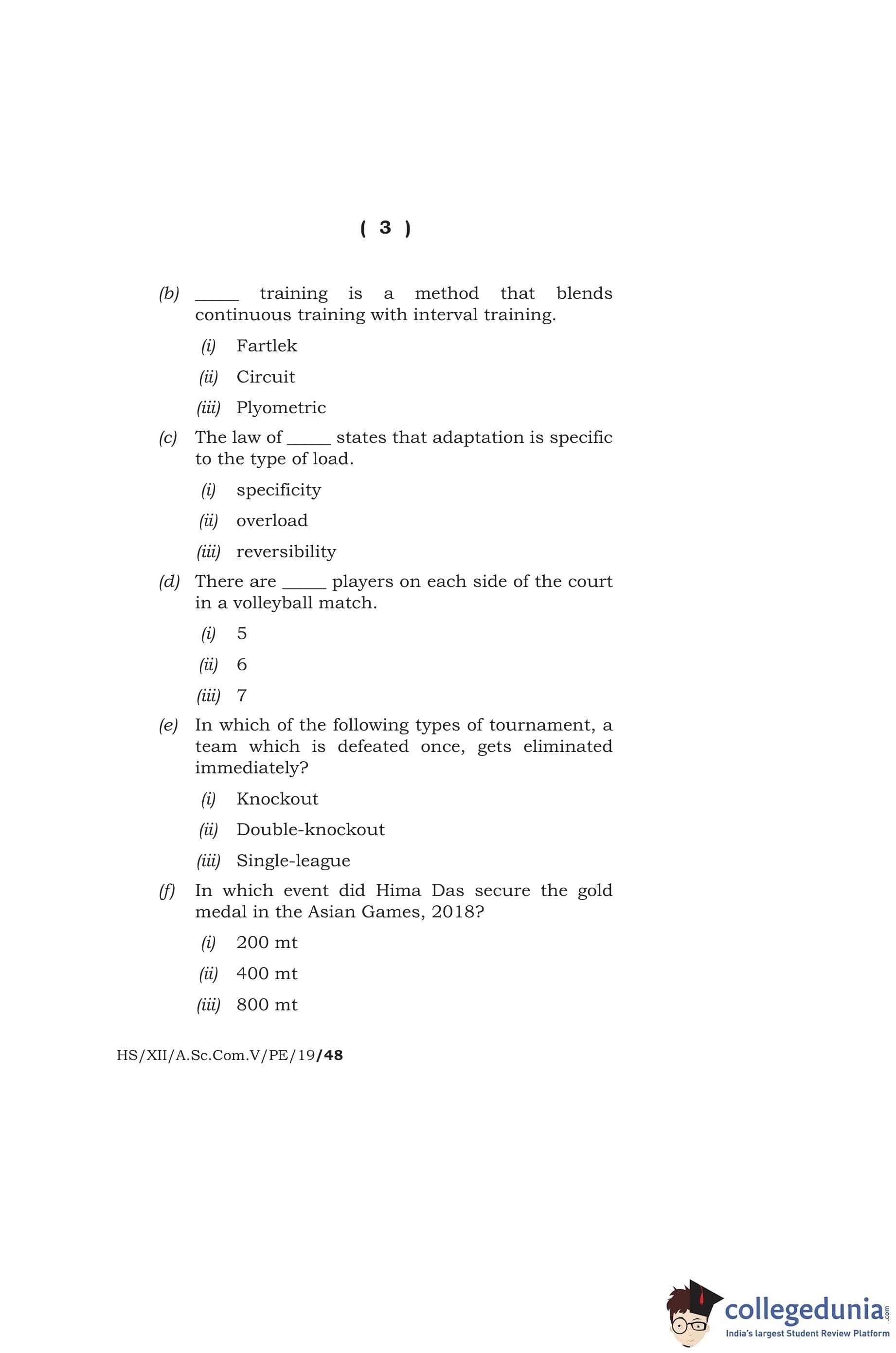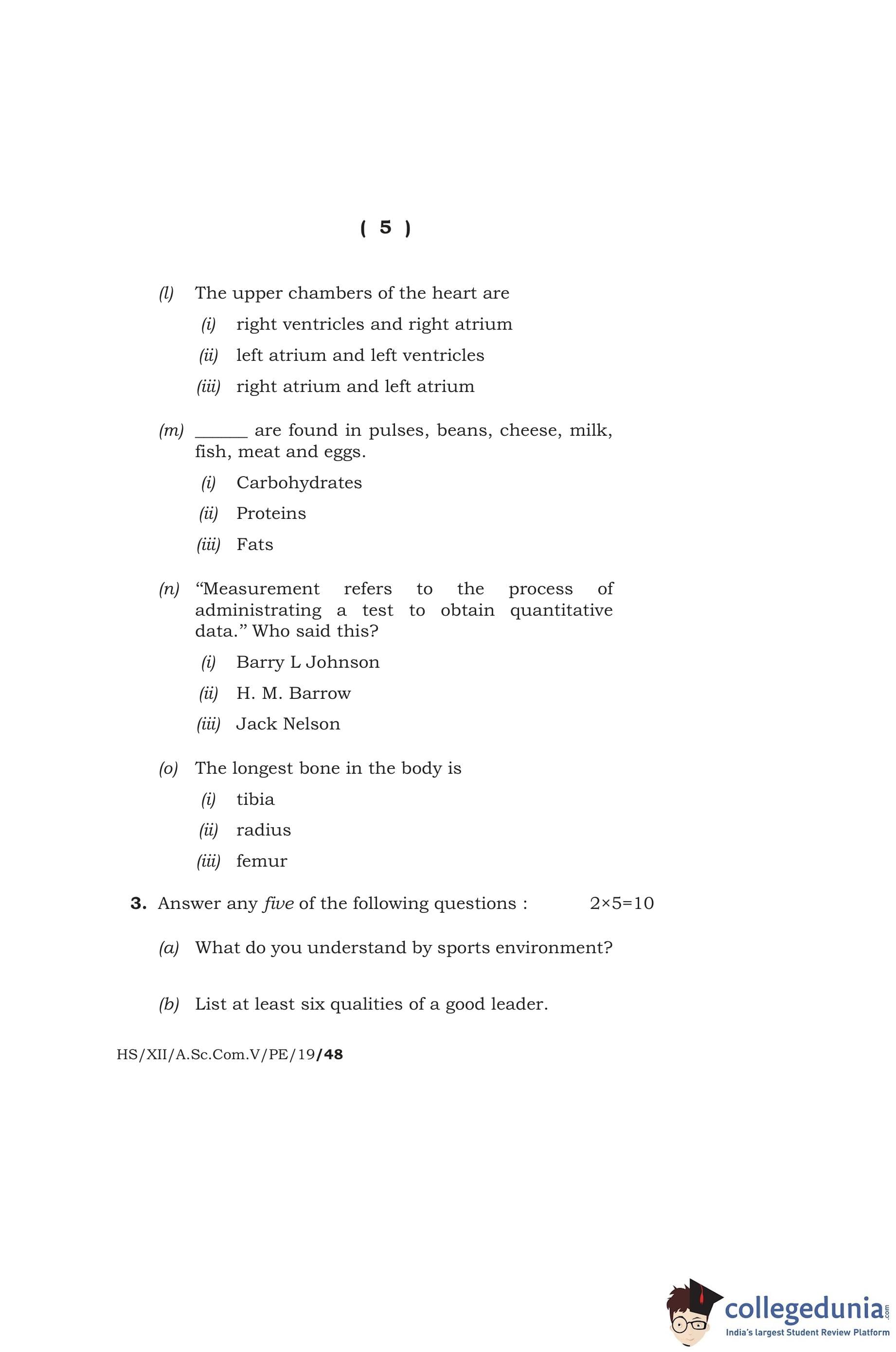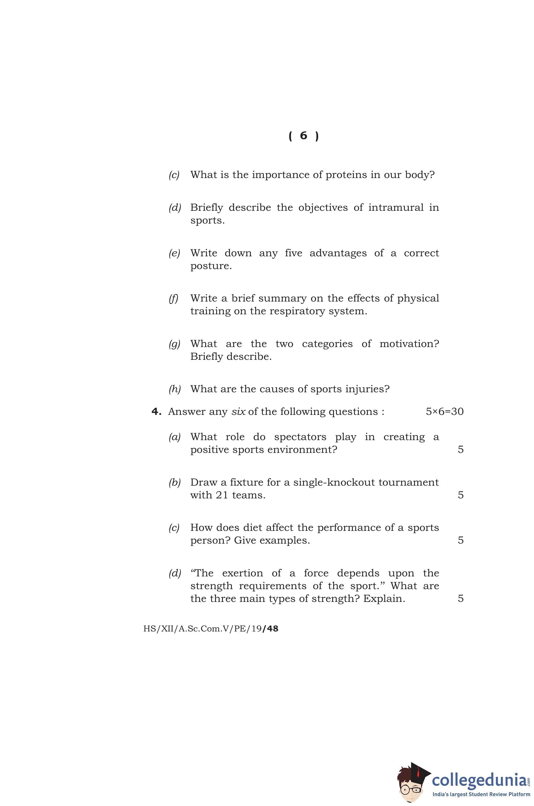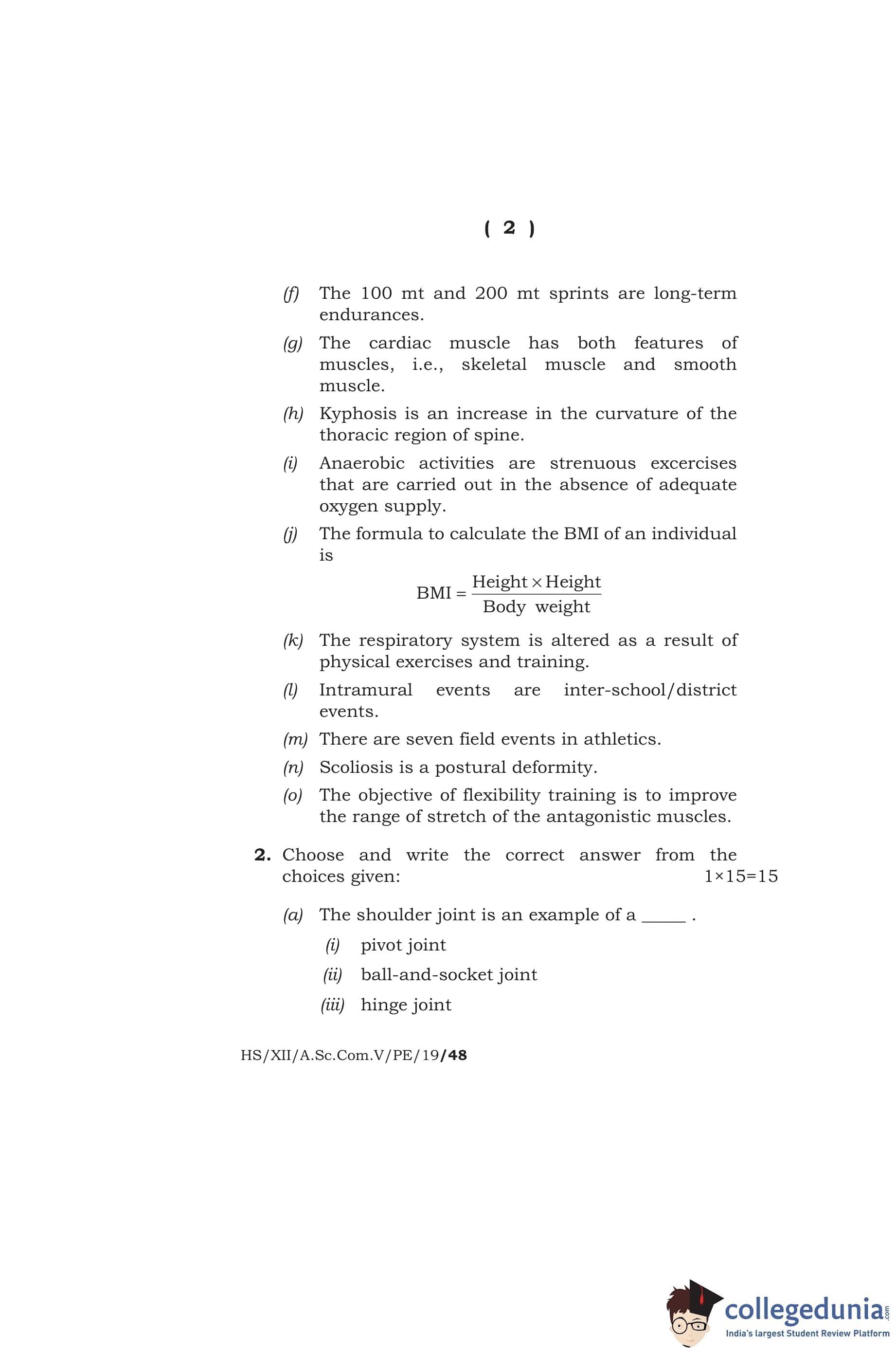 MBOSE Class 12 Physical Education Question Paper 2019