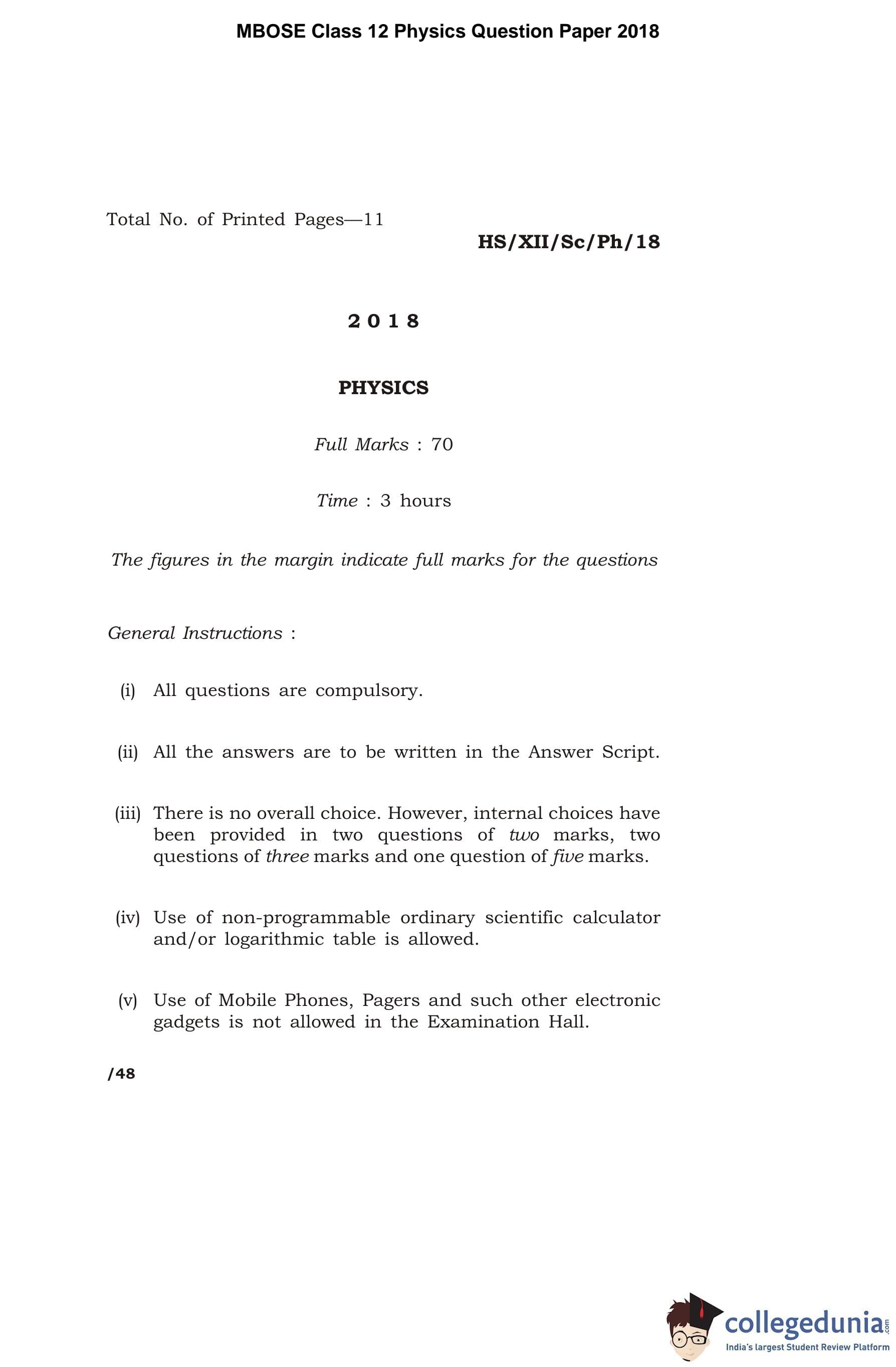| MBOSE Class 12 Physics Question Paper 2018 PDF | MBOSE Class 12 Physics Answer Key 2018 PDF |