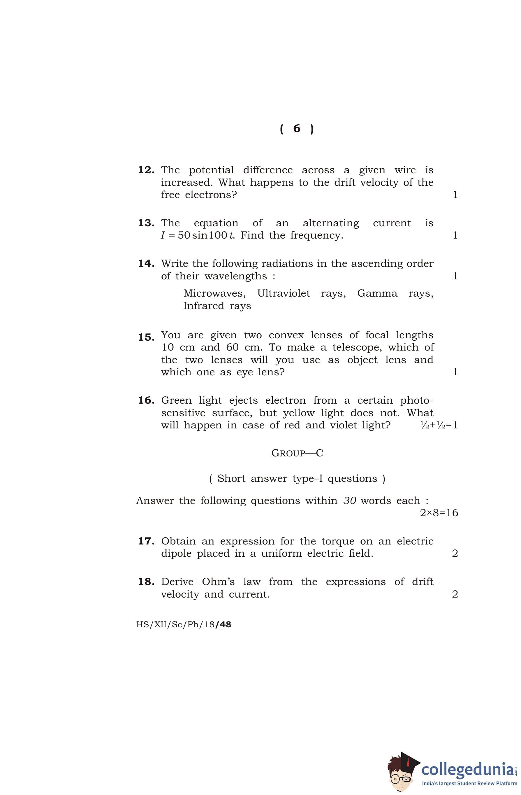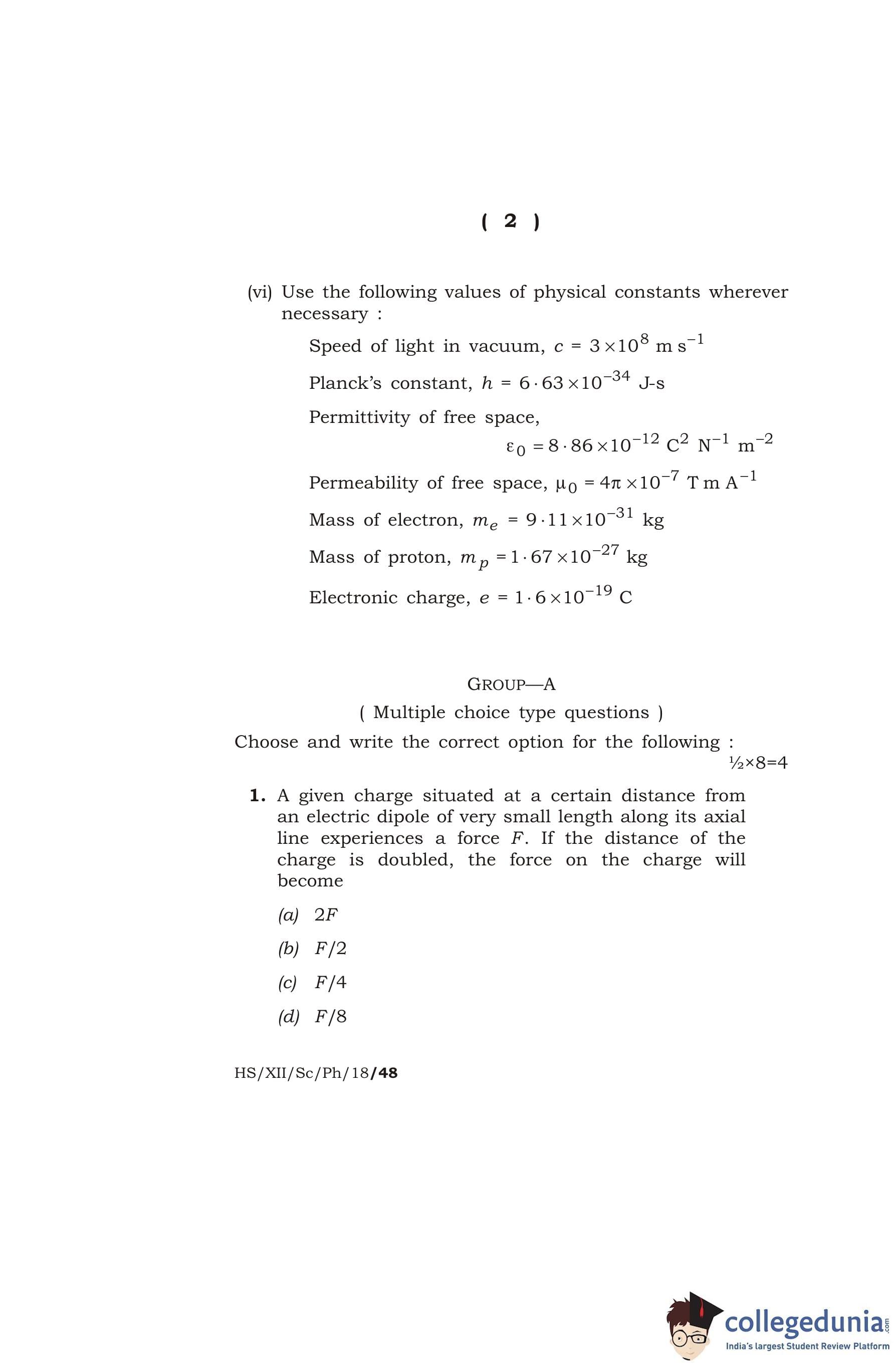 MBOSE Class 12 Physics Question Paper 2018 with Answer Key pdf is available for download here. The exam was conducted by Meghalaya Board of School Education on March 13, 2018 in the Morning Session 10 AM to 1 PM. The question paper comprised a total of 35 questions divided among 5 sections.