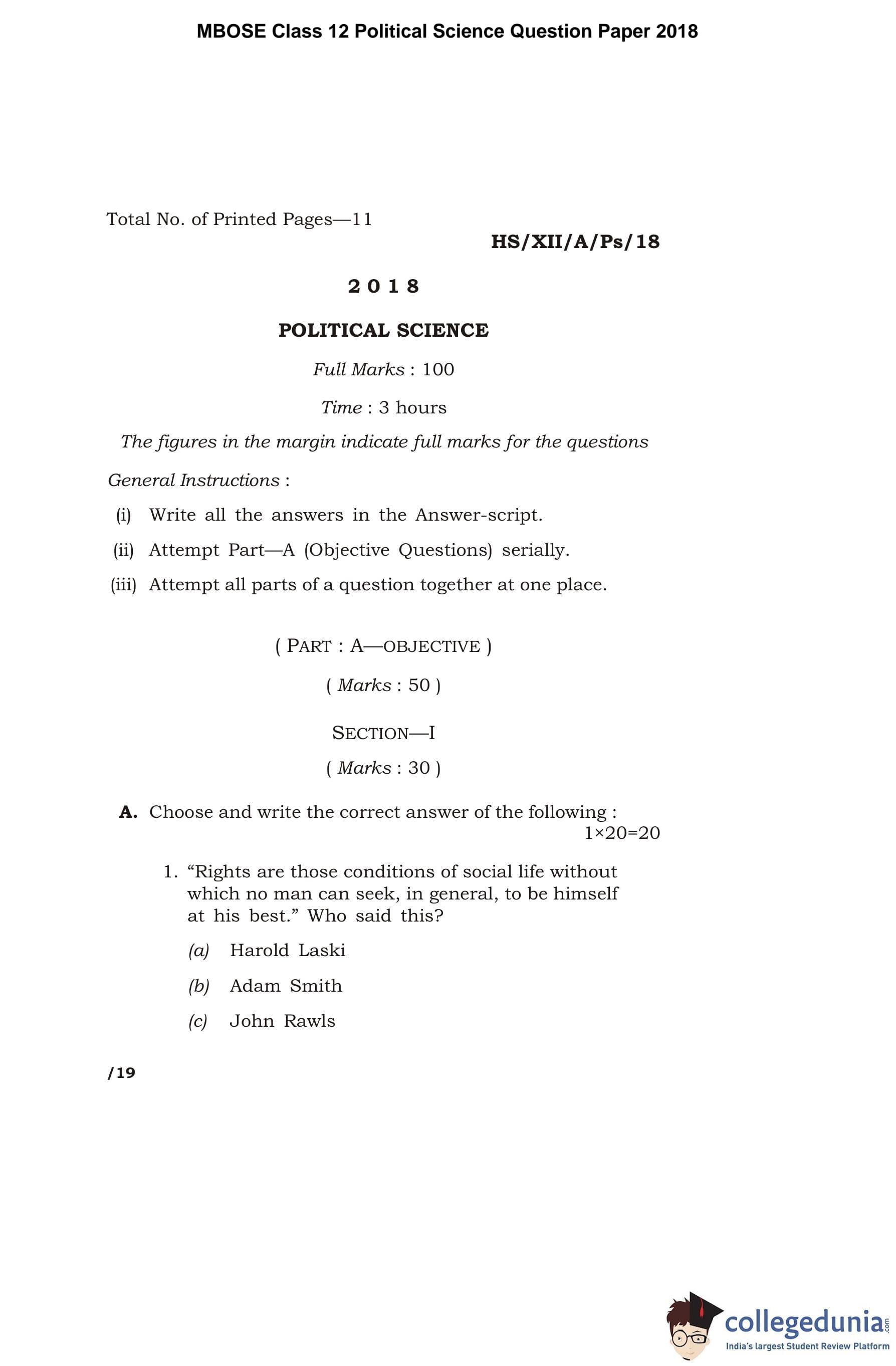 | MBOSE Class 12 Political Science Question Paper 2018 PDF | MBOSE Class 12 Political Science Answer Key 2018 PDF |