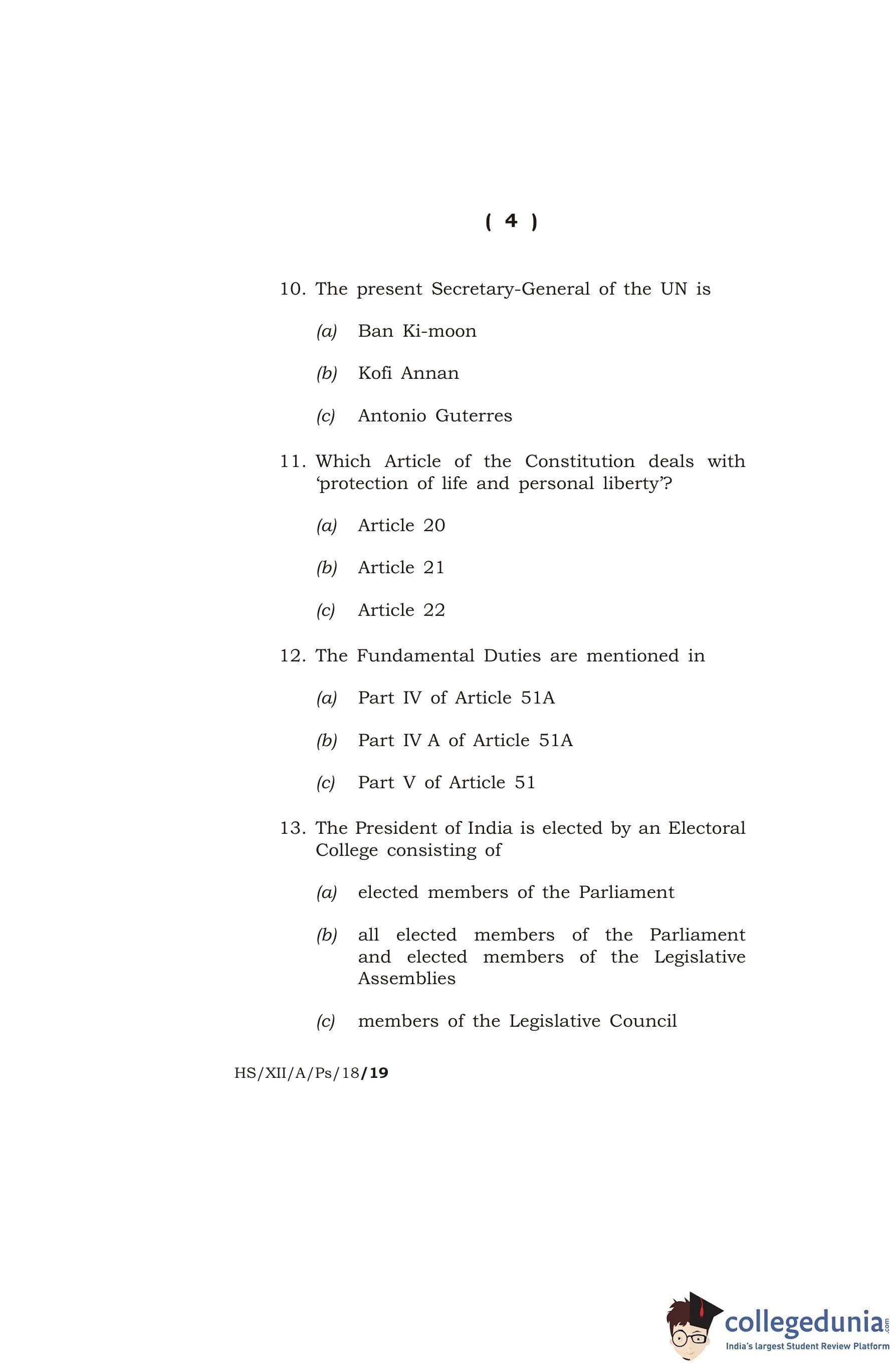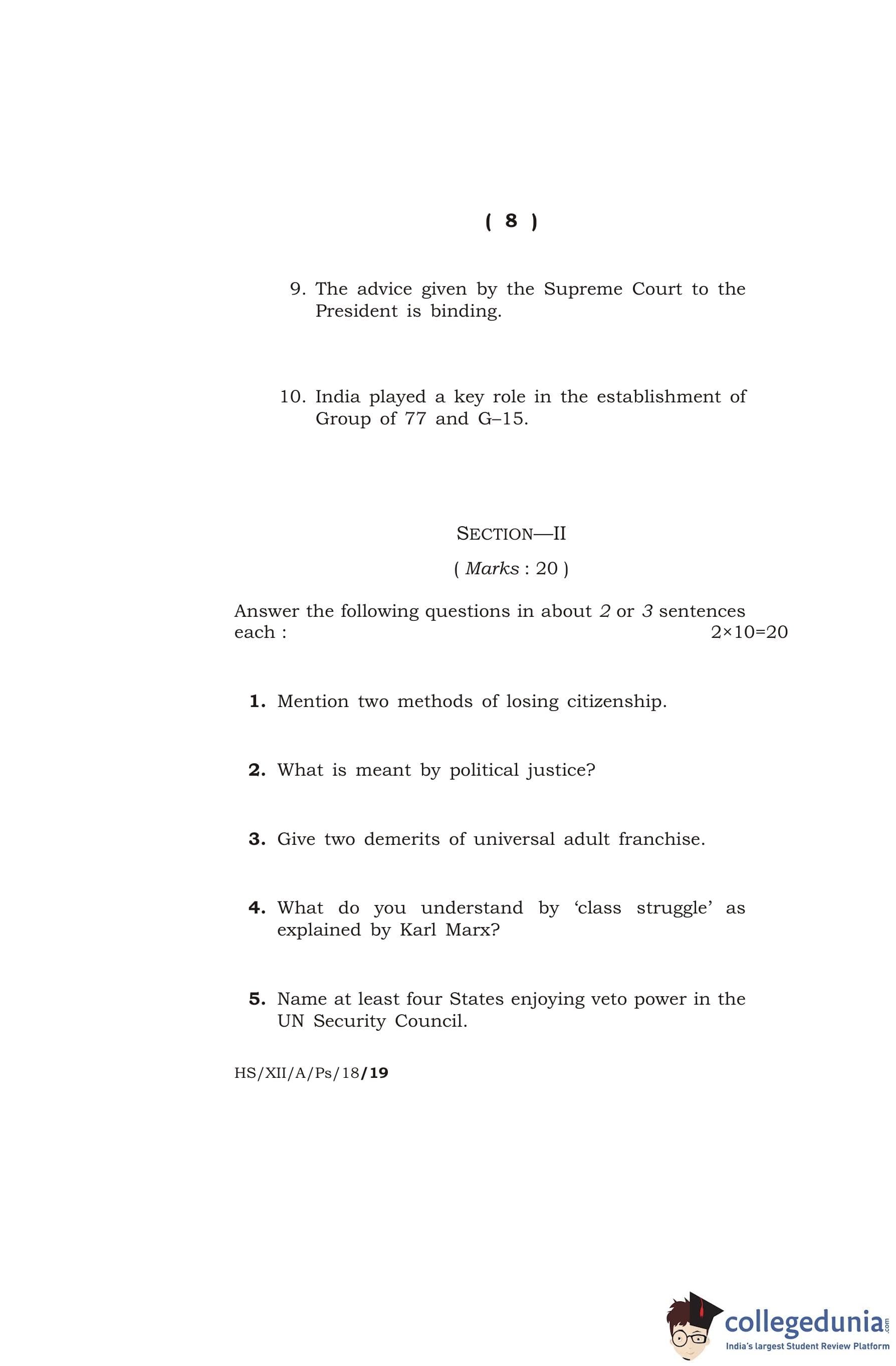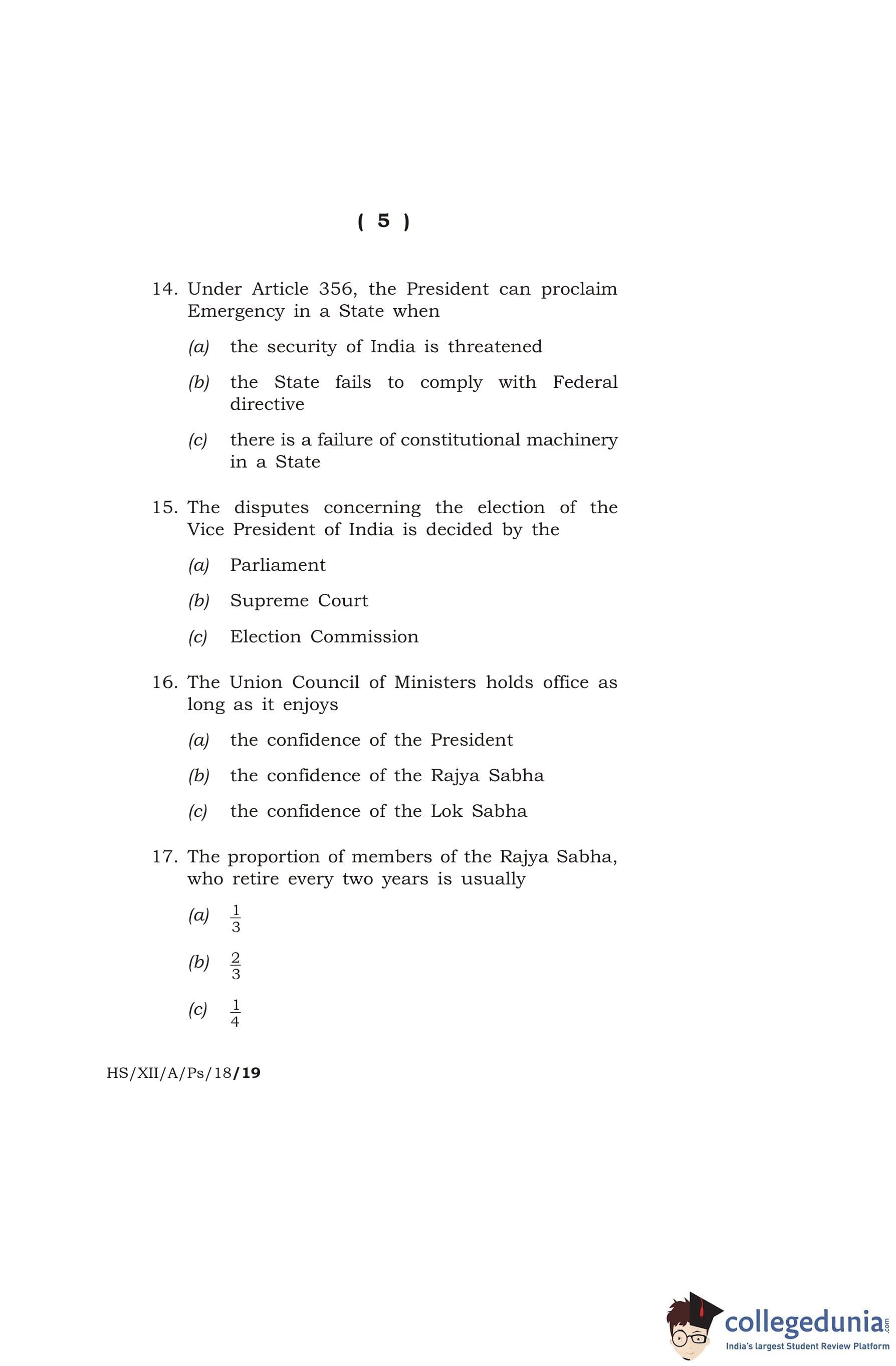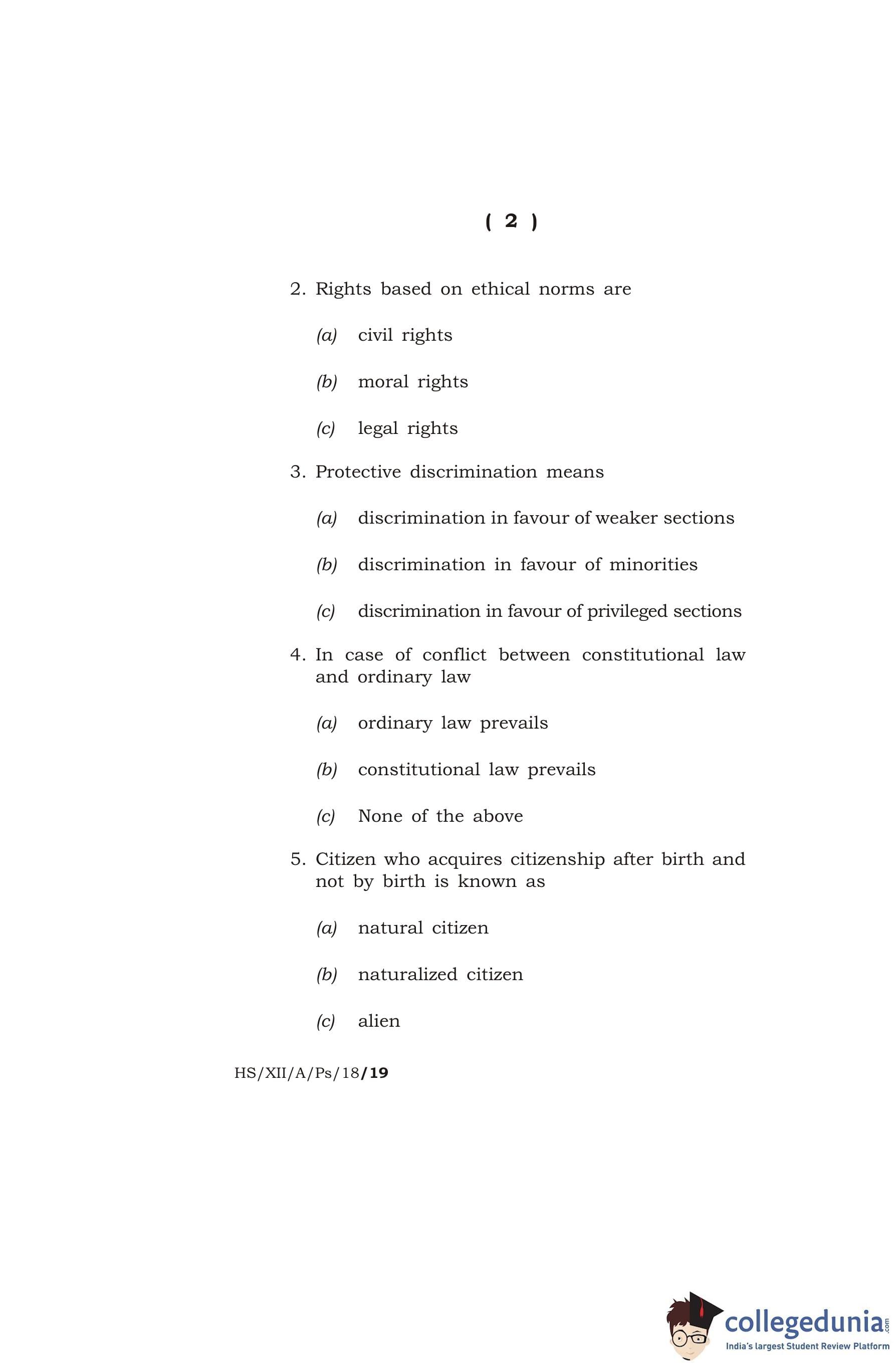 MBOSE Class 12 Political Science Question Paper 2018 with Answer Key pdf is available for download here. The exam was conducted by Meghalaya Board of School Education on March 15, 2018 in the Morning Session 10 AM to 1 PM. The question paper comprised a total of 15 questions divided among 2 sections.