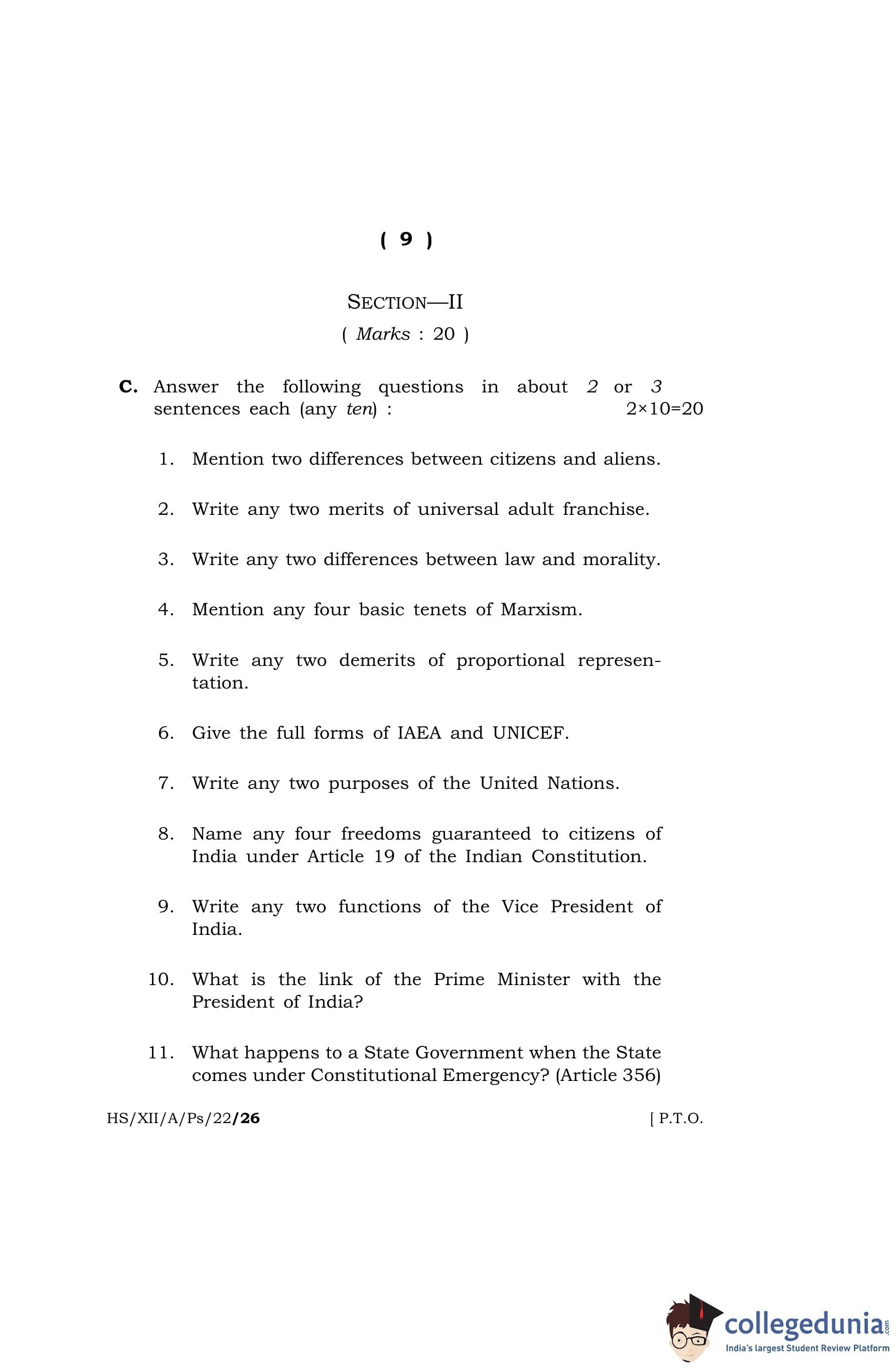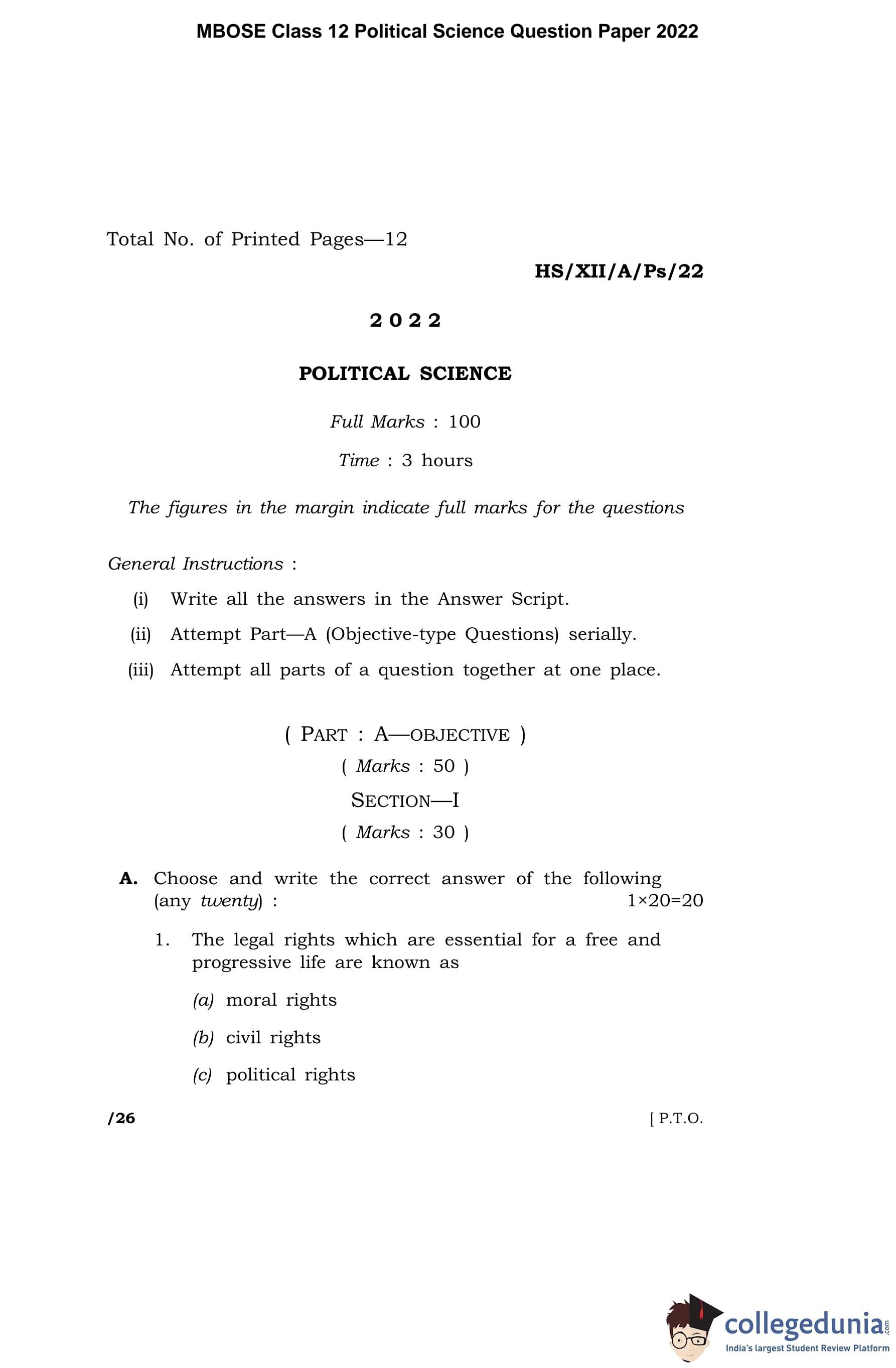 | MBOSE Class 12 Political Science Question Paper 2022 PDF | MBOSE Class 12 Political Science Answer Key 2022 PDF |