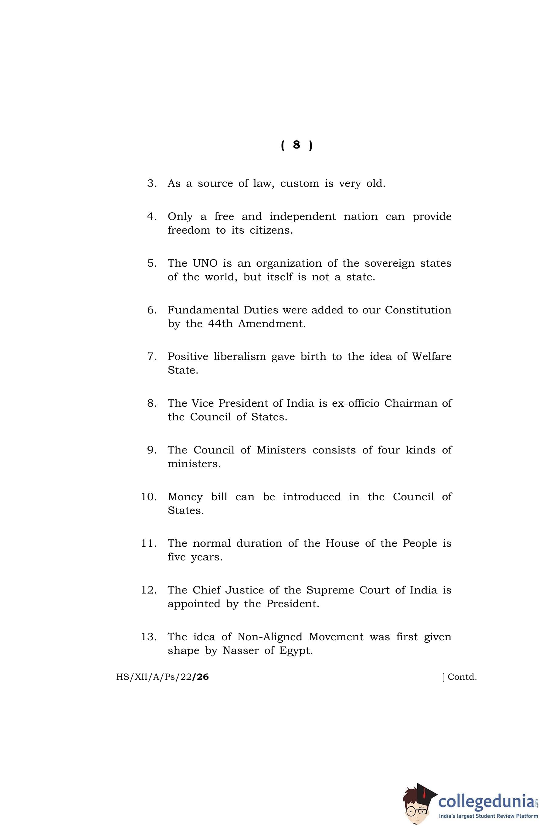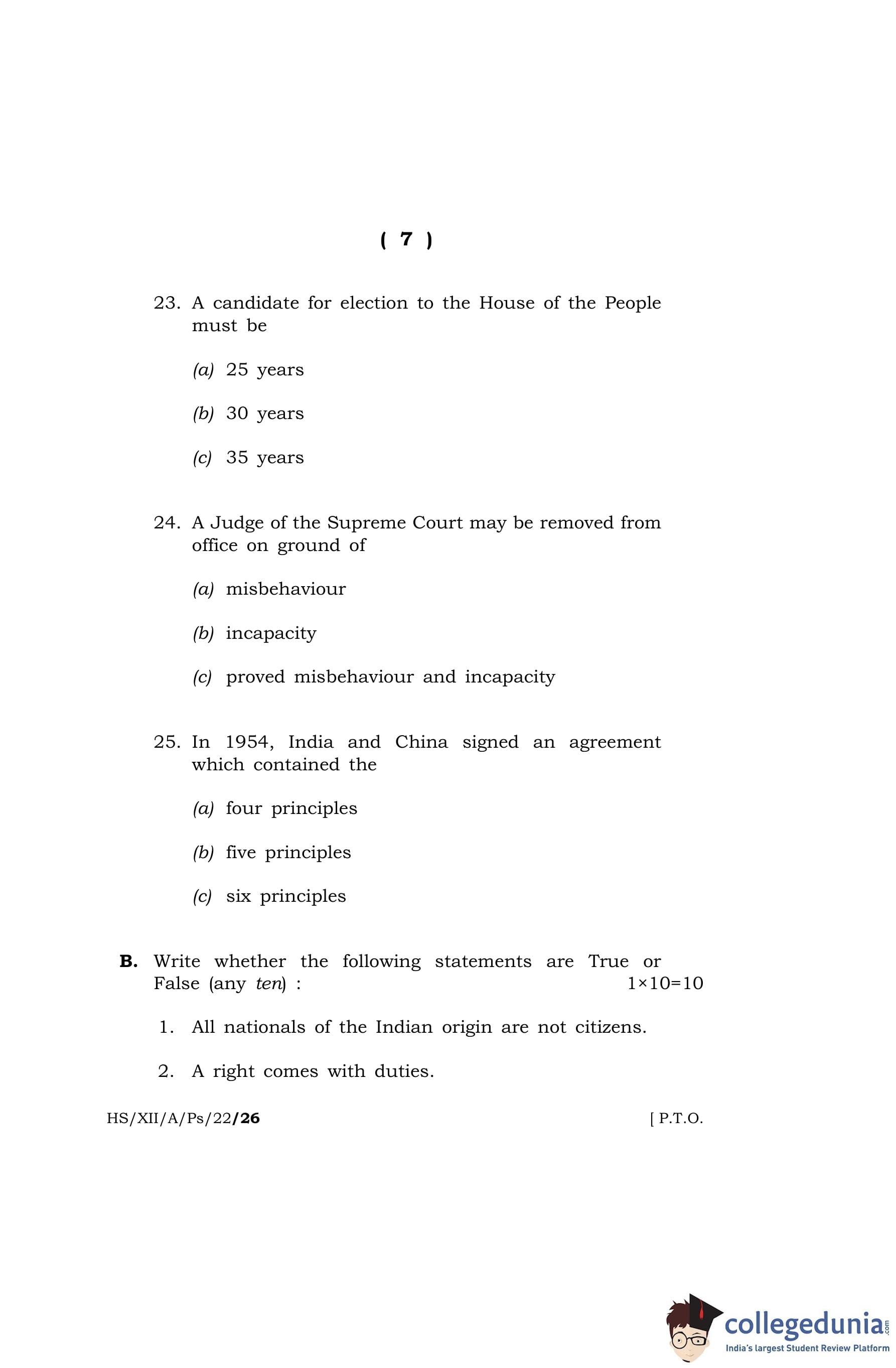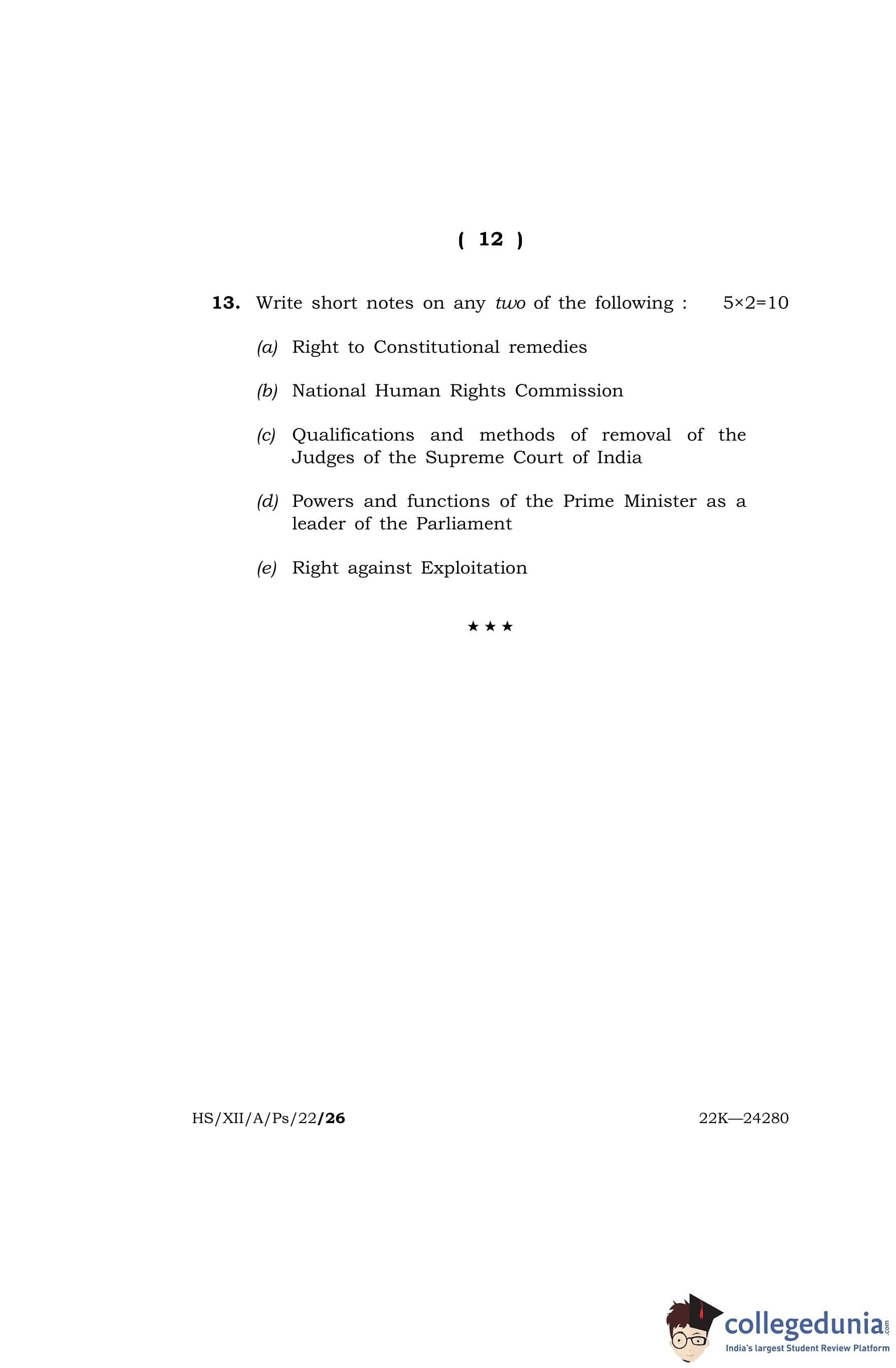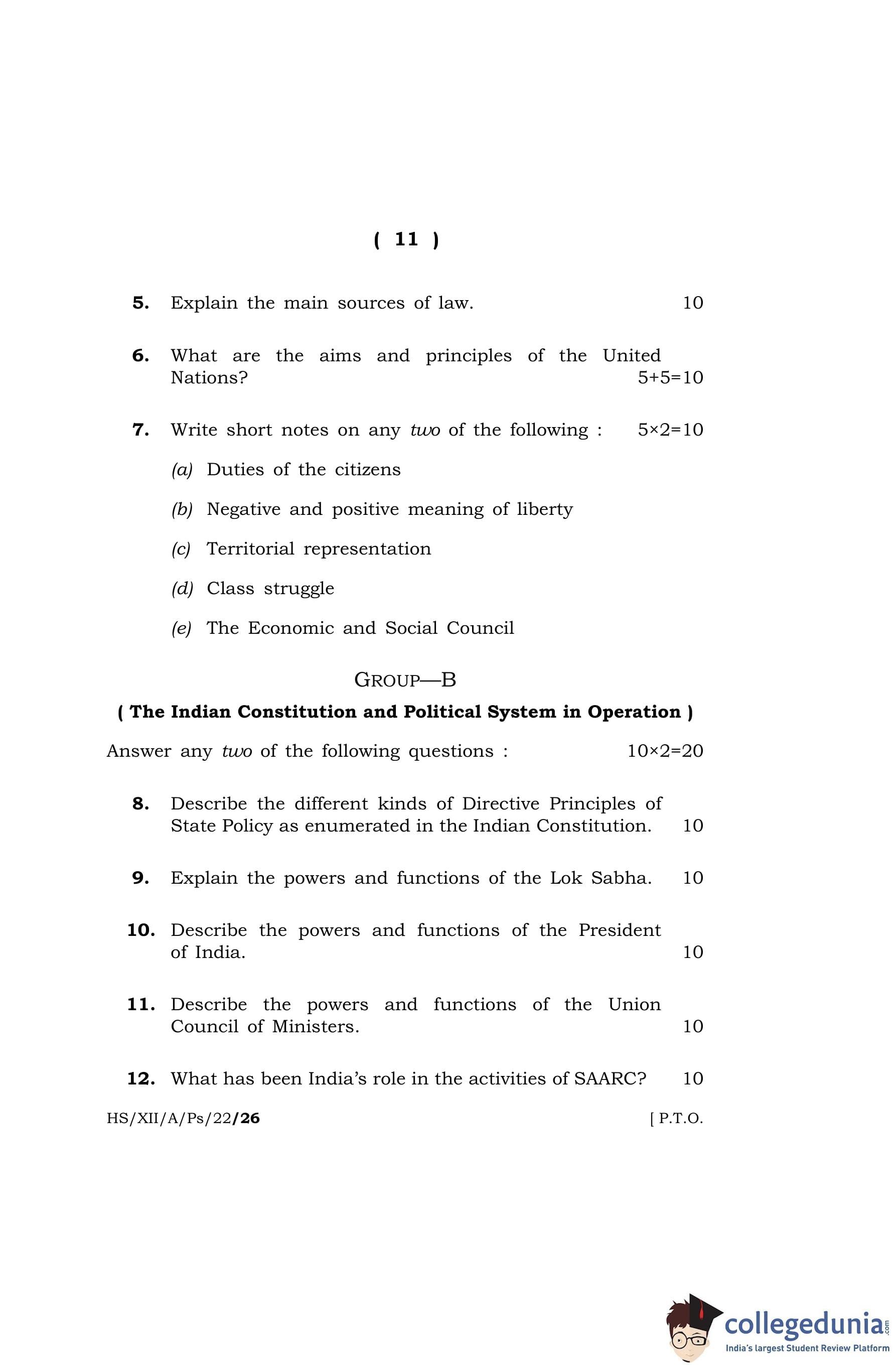 MBOSE Class 12 Political Science Question Paper 2022 with Answer Key pdf is available for download here. The exam was conducted by Meghalaya Board of School Education on April 8, 2022 in the Morning Session 10 AM to 1 PM. The question paper comprised a total of 16 questions divided among 2 sections.