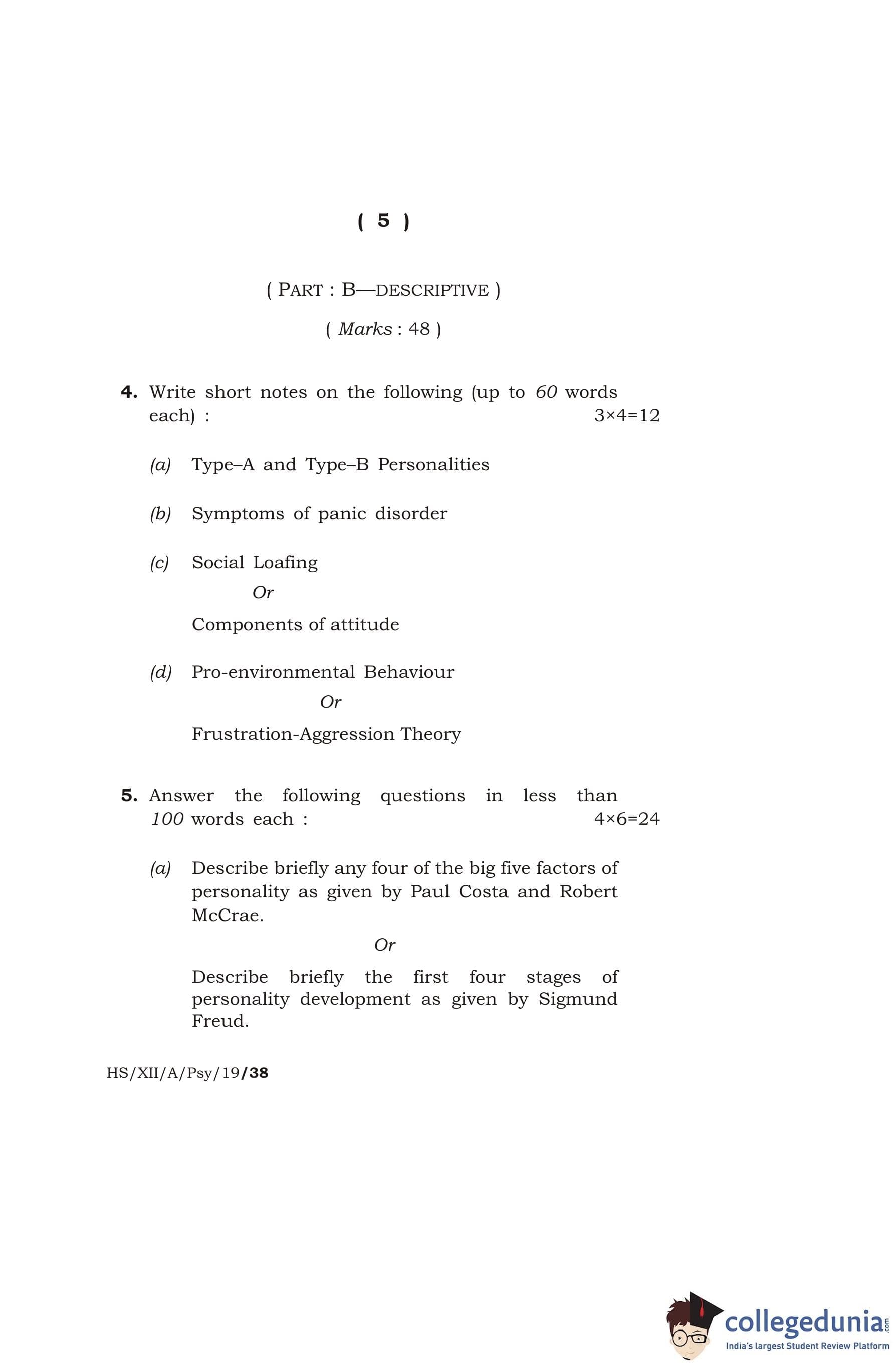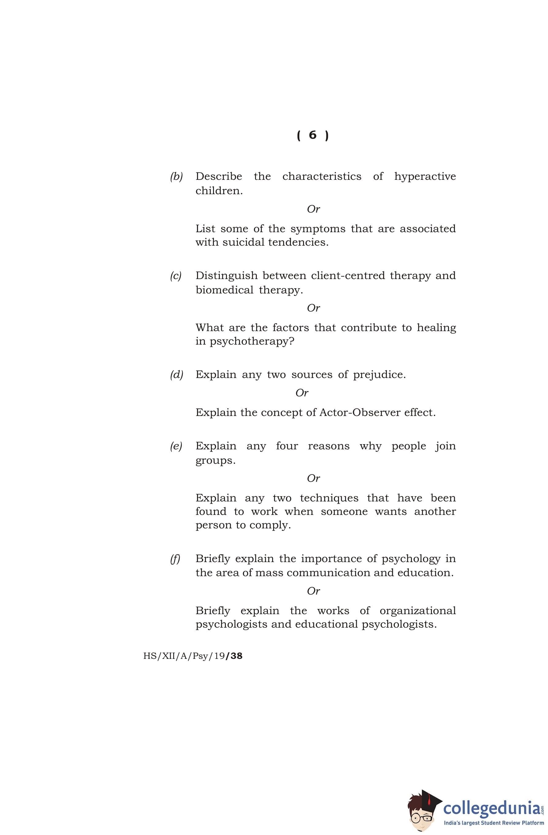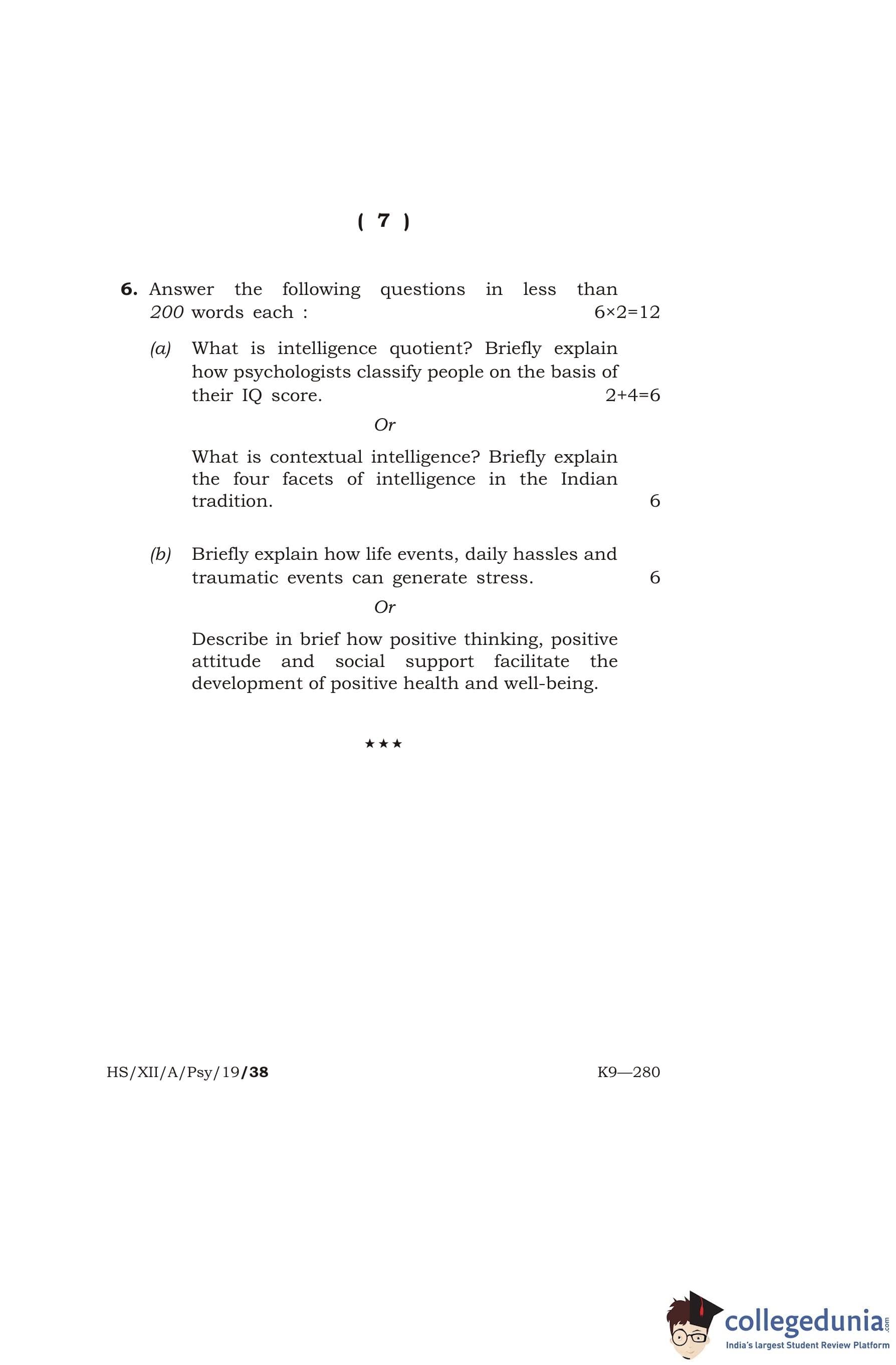 MBOSE Class 12 Psychology Question Paper 2019 with Answer Key pdf is available for download here. The exam was conducted by Meghalaya Board of School Education on March 19, 2019 in the Morning Session 10 AM to 1 PM. The question paper comprised a total of 6 questions divided among 2 sections.