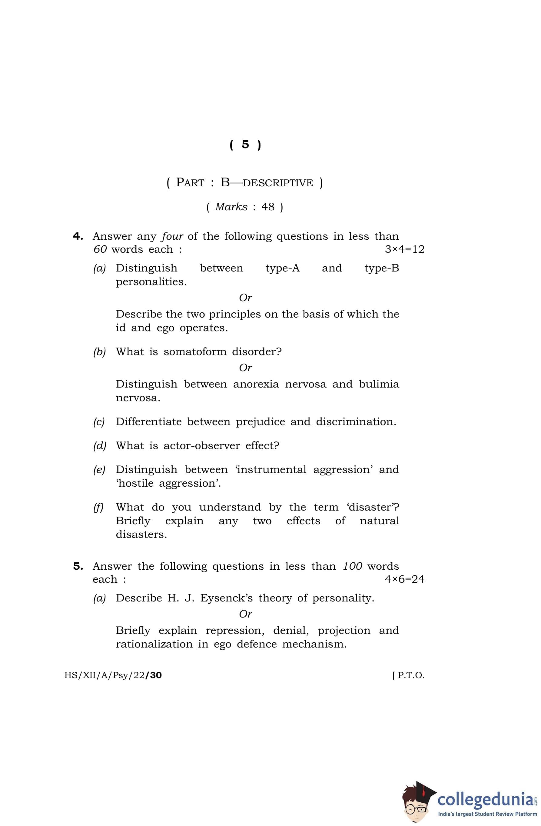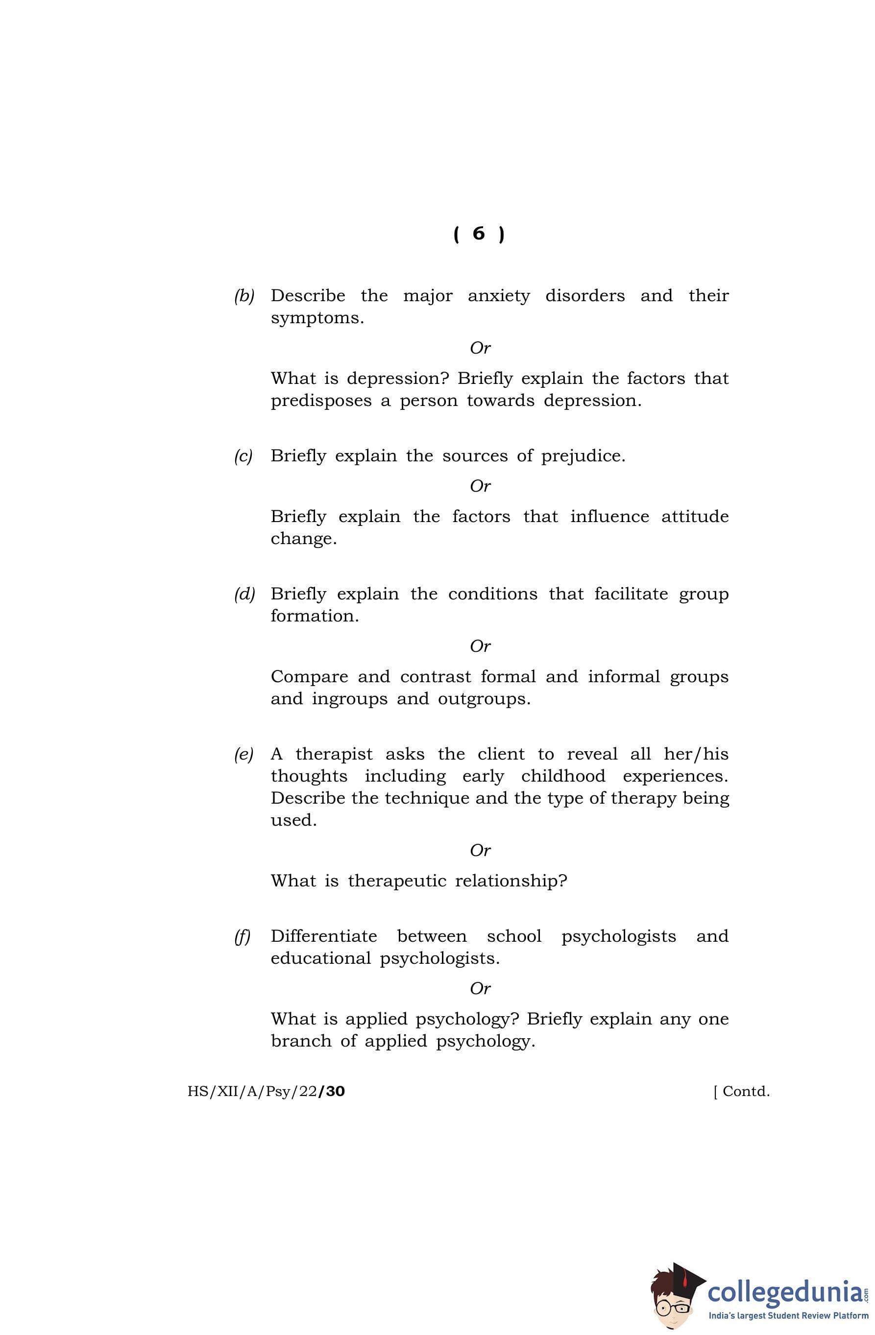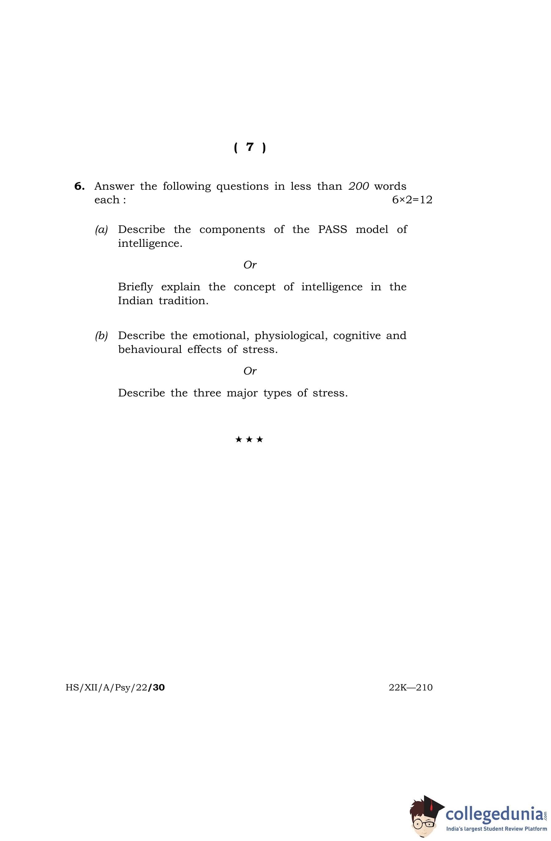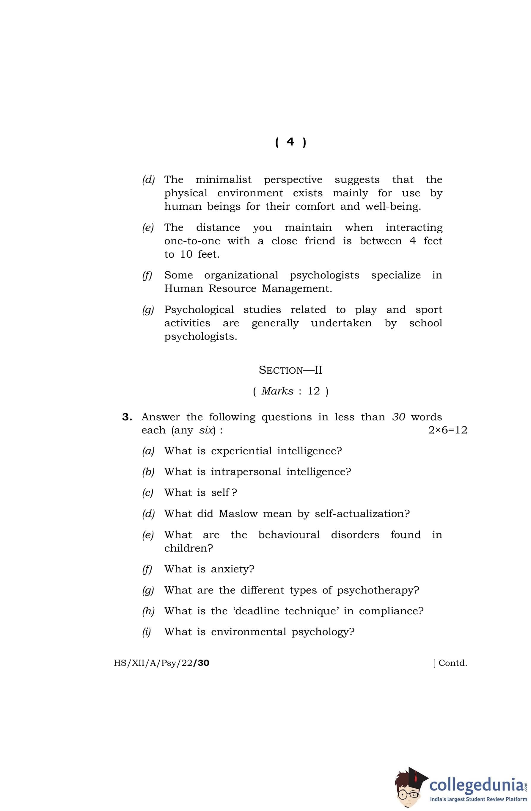 MBOSE Class 12 Psychology Question Paper 2022 with Answer Key pdf is available for download here. The exam was conducted by Meghalaya Board of School Education on March 28, 2022 in the Morning Session 10 AM to 1 PM. The question paper comprised a total of 6 questions divided among 2 sections.