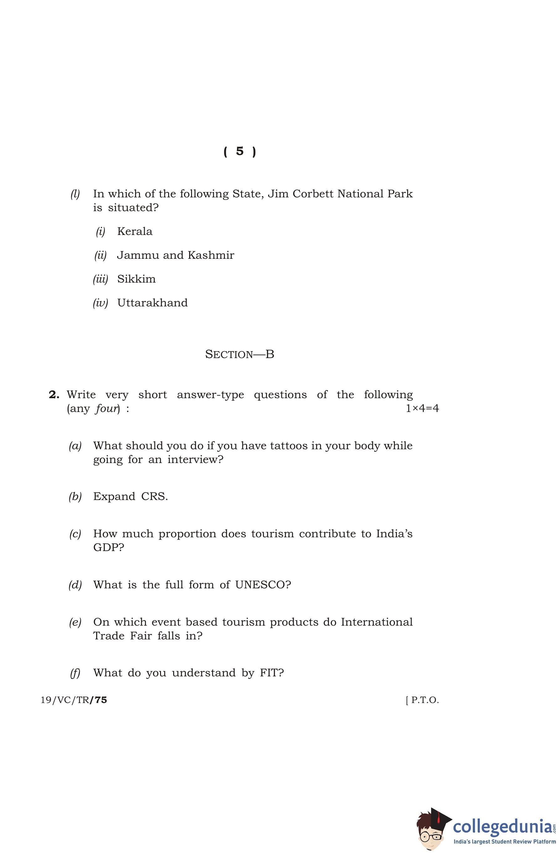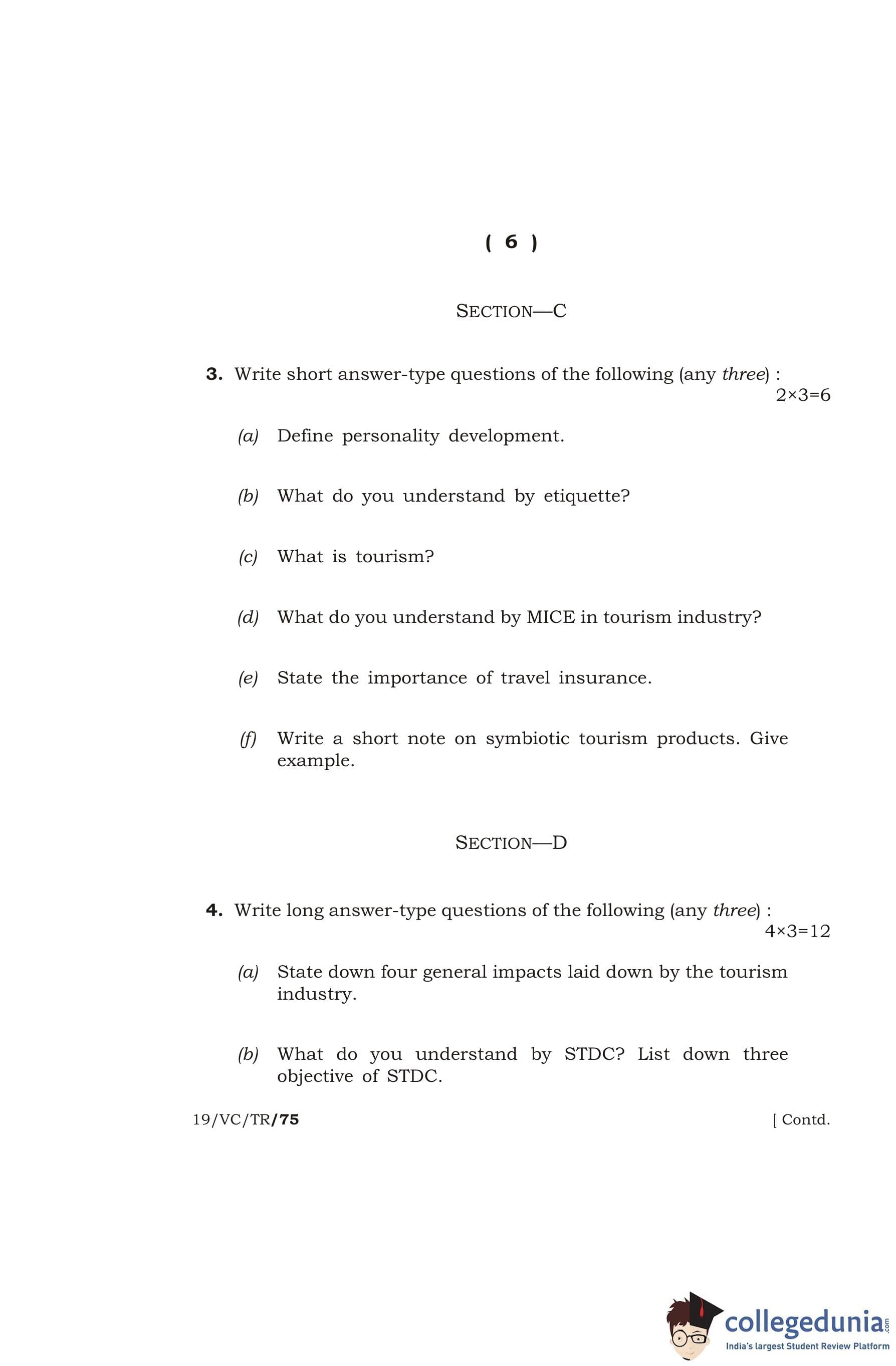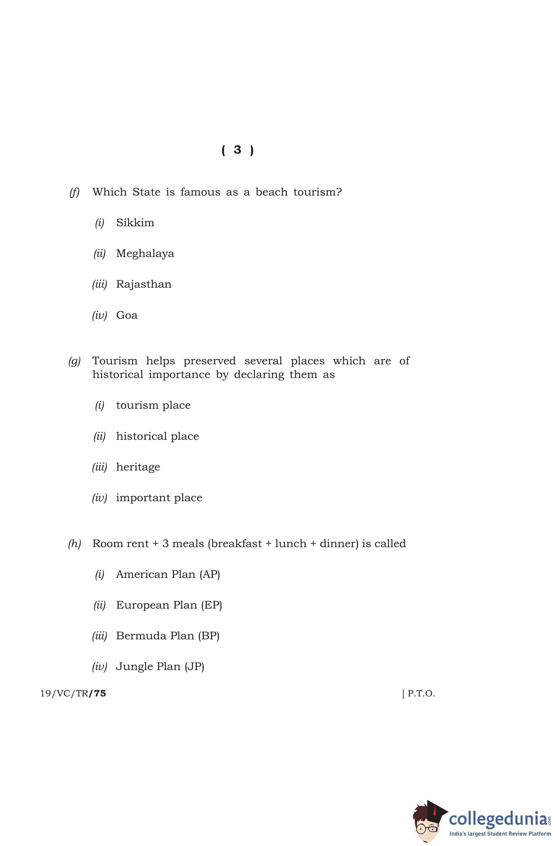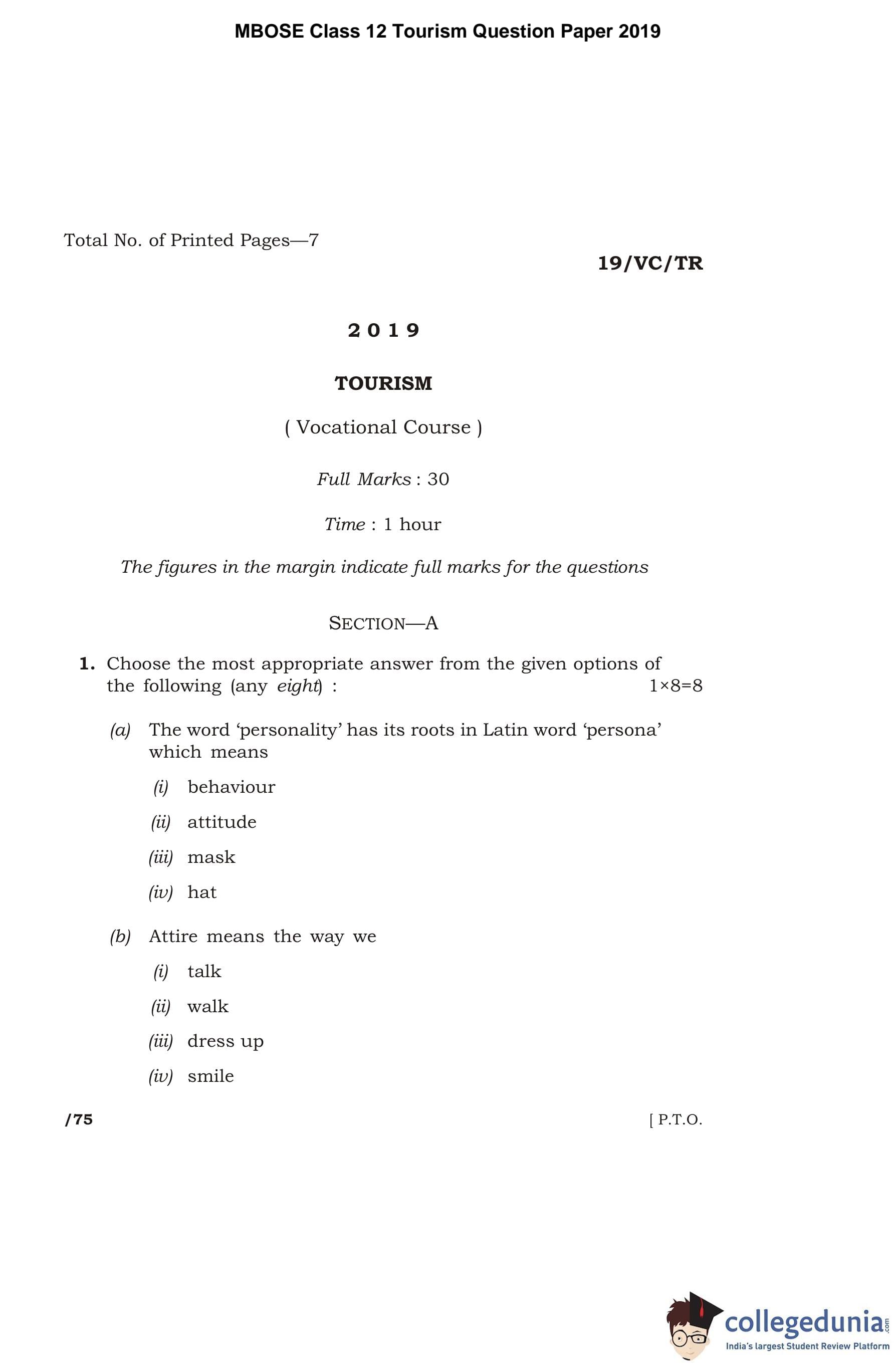 MBOSE Class 12 Tourism Question Paper 2019 with Answer Key pdf is available for download here. The exam was conducted by Meghalaya Board of School Education in the Morning Session 10 AM to 1 PM. The question paper comprised a total of 4 questions divided among 4 sections.