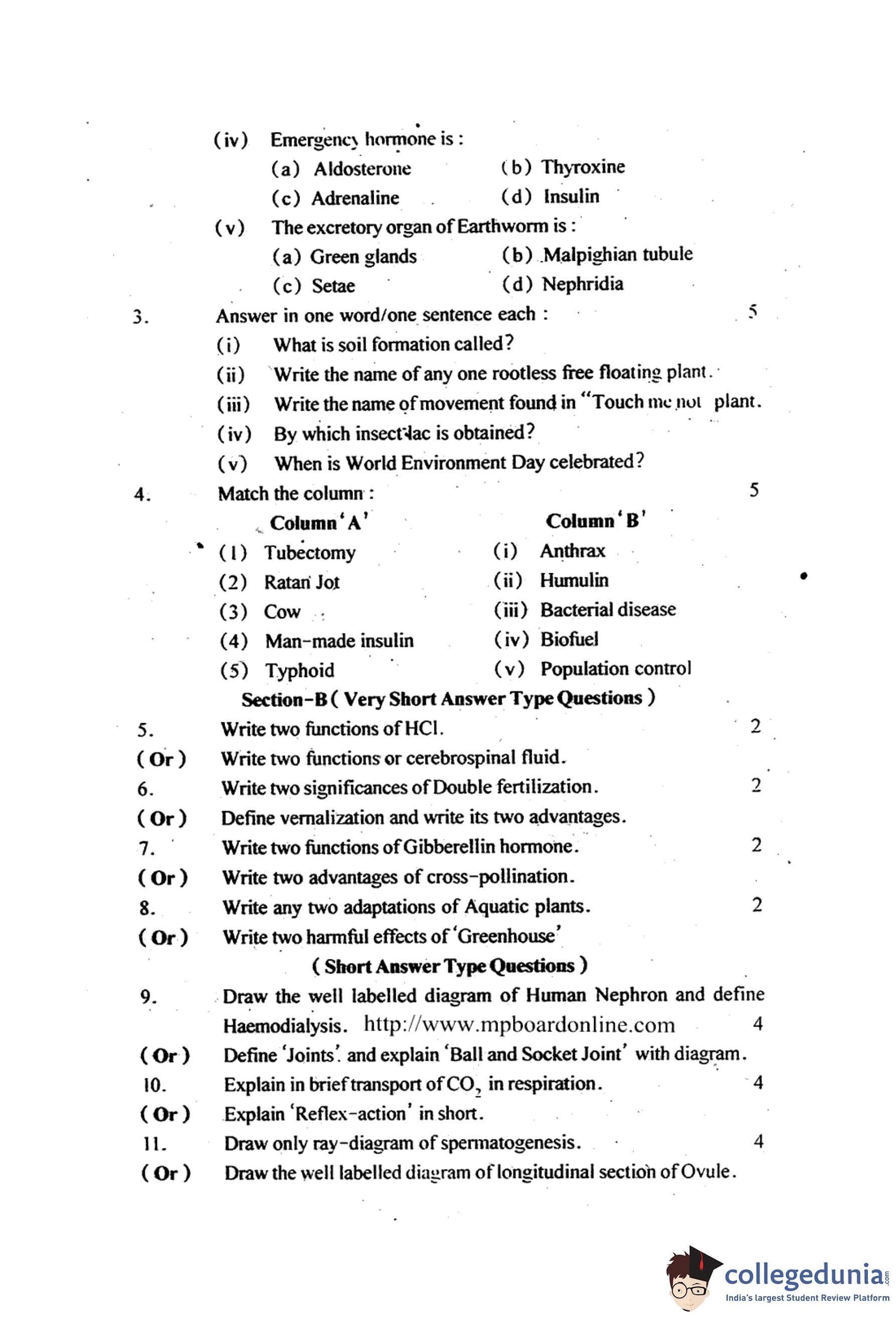 MP Board 12th Biology Question Paper 2014 with Answer Key pdf is available for download here. The exam was conducted by Madhya Pradesh Board of Secondary Education, MPBSE on March 15, 2014 in the Morning Session 8.30 AM to 11.30AM. The question paper comprised a total of 18 questions divided among 2 sections.