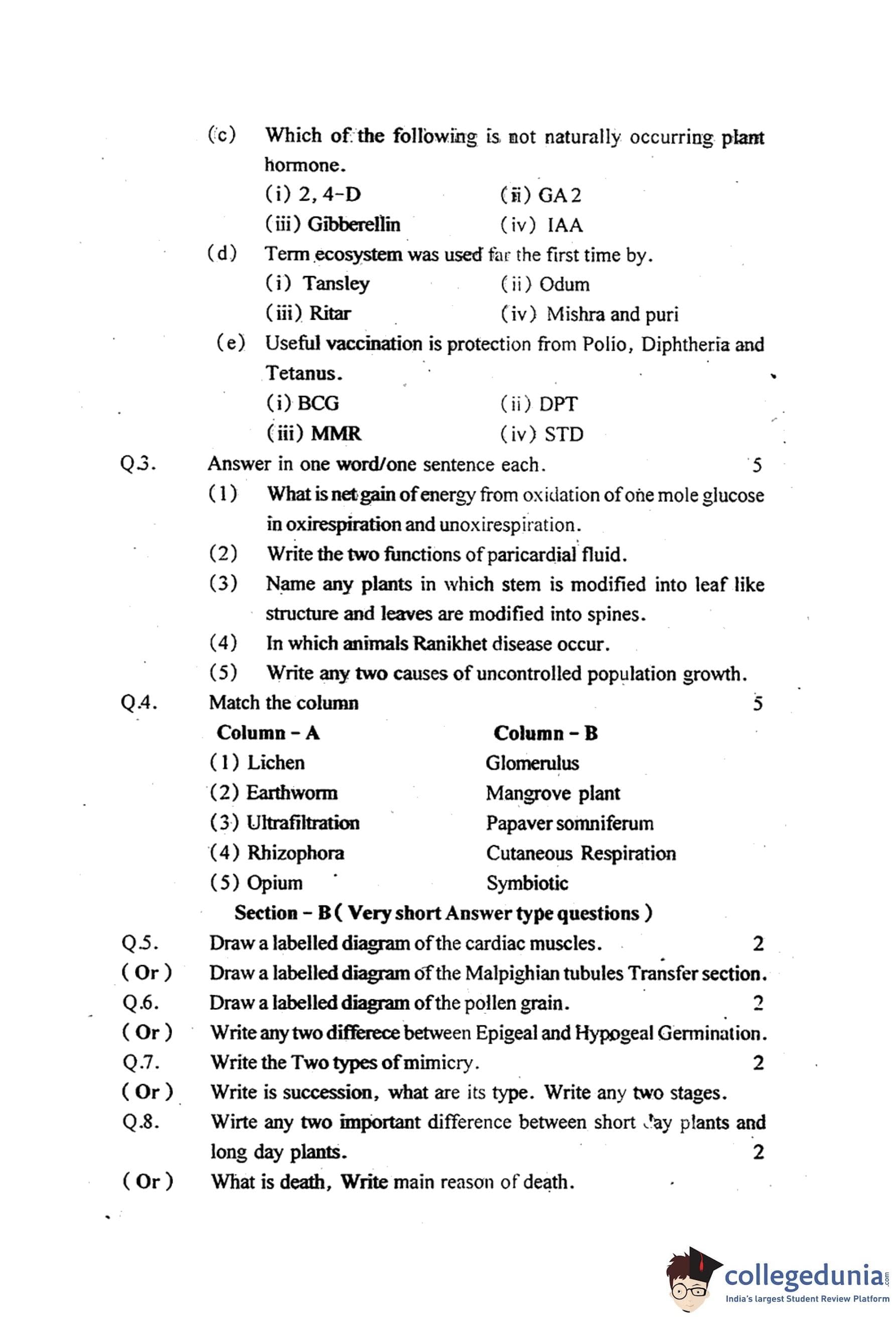 MP Board 12th Biology Question Paper 2015 with Answer Key pdf is available for download here. The exam was conducted by Madhya Pradesh Board of Secondary Education, MPBSE on March 19, 2015 in the Morning Session 8.30 AM to 11.30AM. The question paper comprised a total of 18 questions.