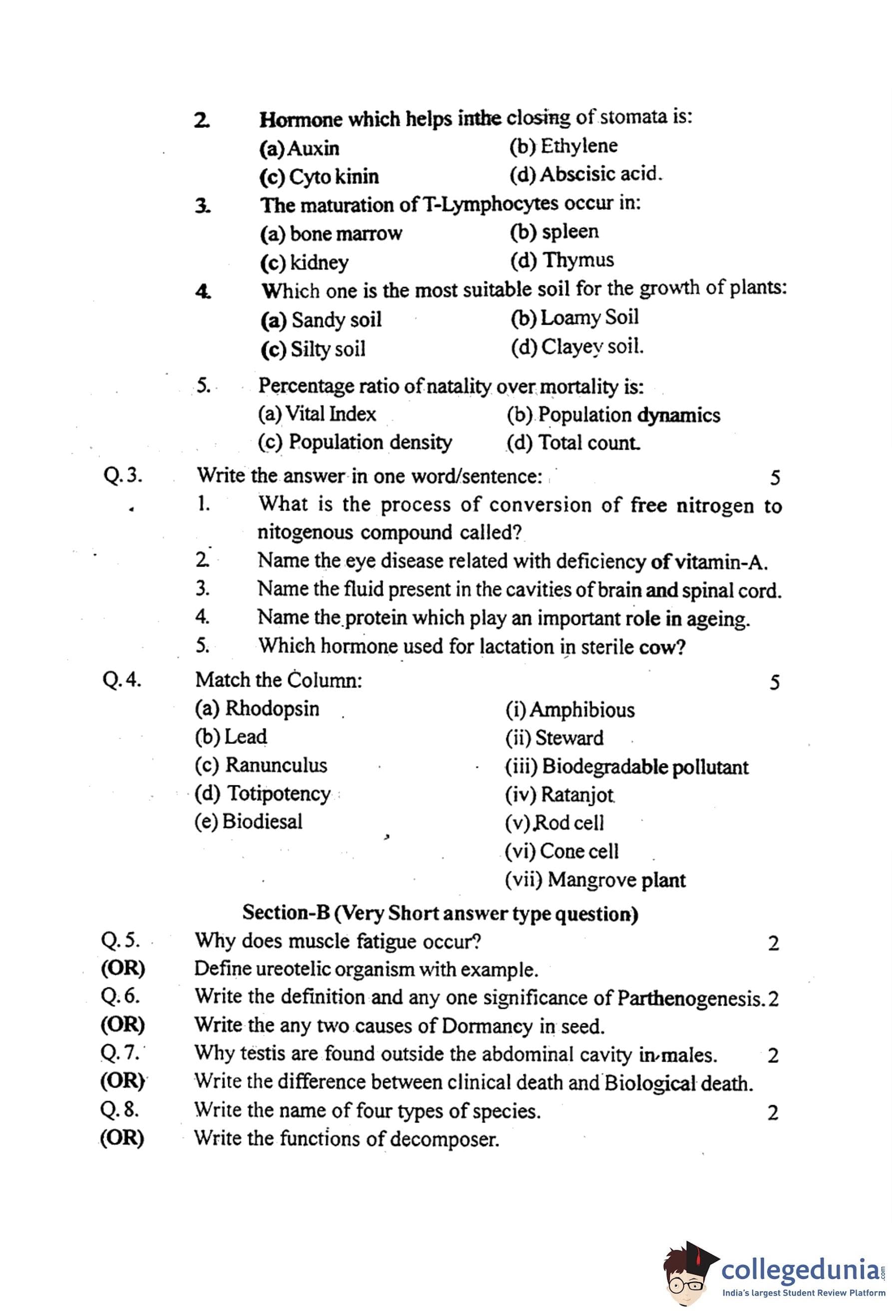 MP Board 12th Biology Question Paper 2016 with Answer Key pdf is available for download here. The exam was conducted by Madhya Pradesh Board of Secondary Education, MPBSE on March 11, 2016 in the Morning Session 8.30 AM to 11.30AM. The question paper comprised a total of 18 questions divided among 2 sections.