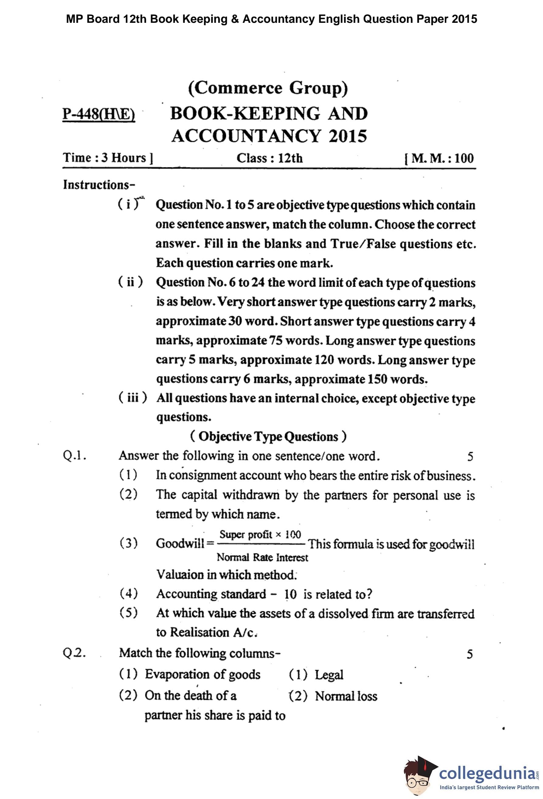 | MP Board 12th Book Keeping & Accountancy Question Paper 2015 PDF | MP Board 12th Book Keeping & Accountancy Answer Key 2015 PDF |
