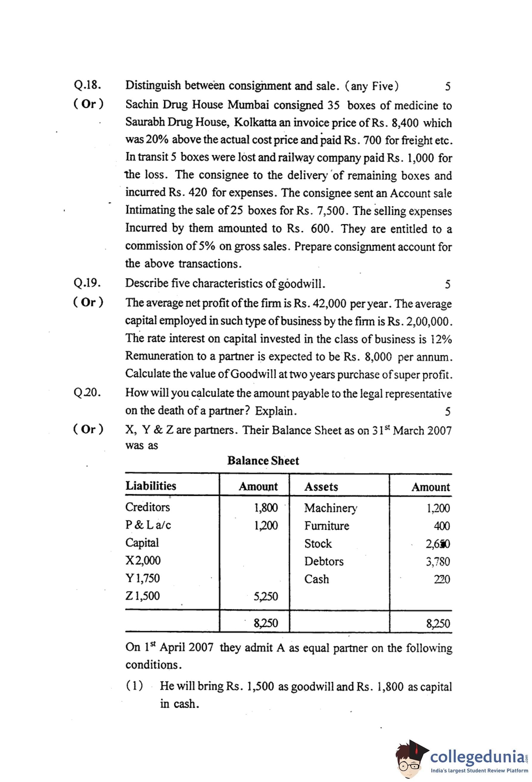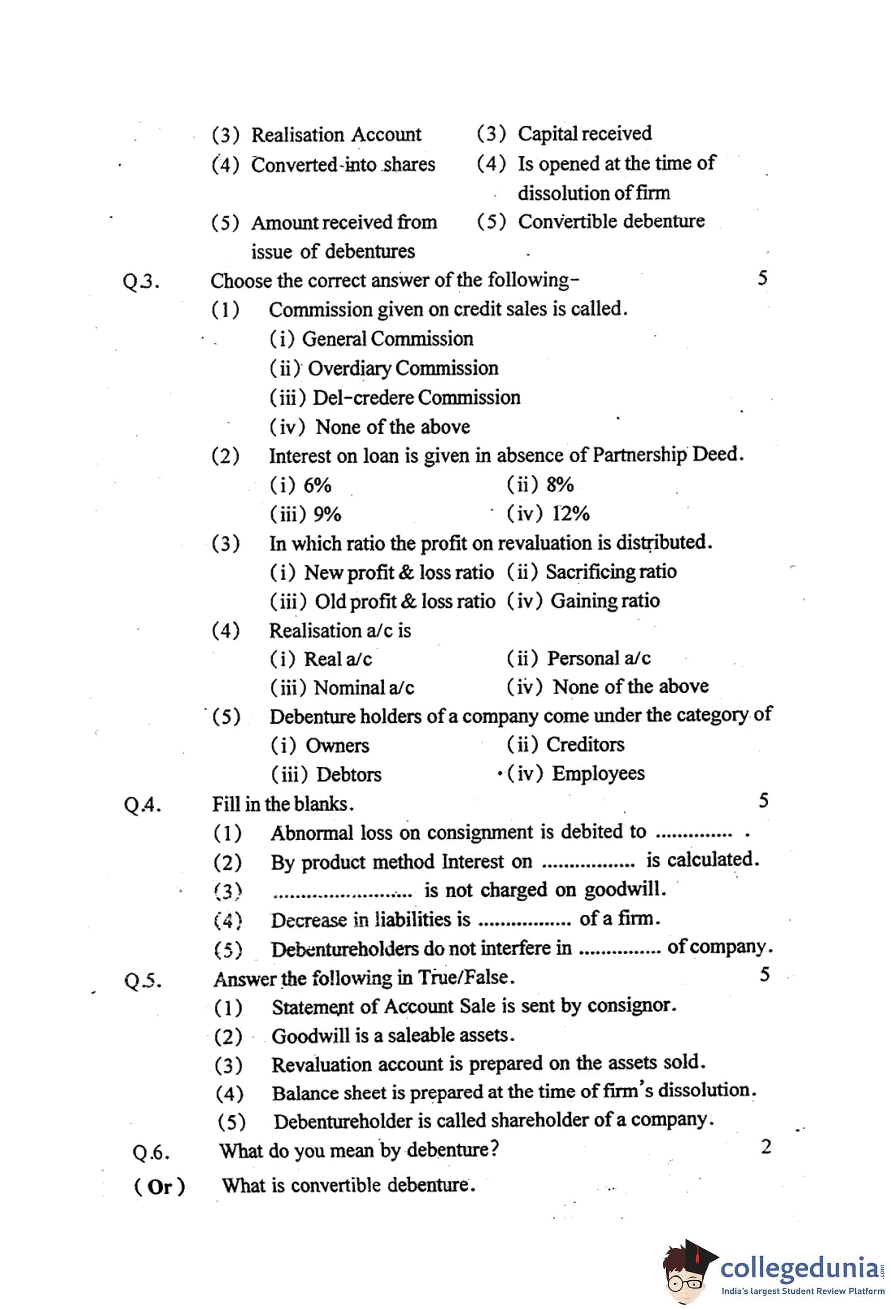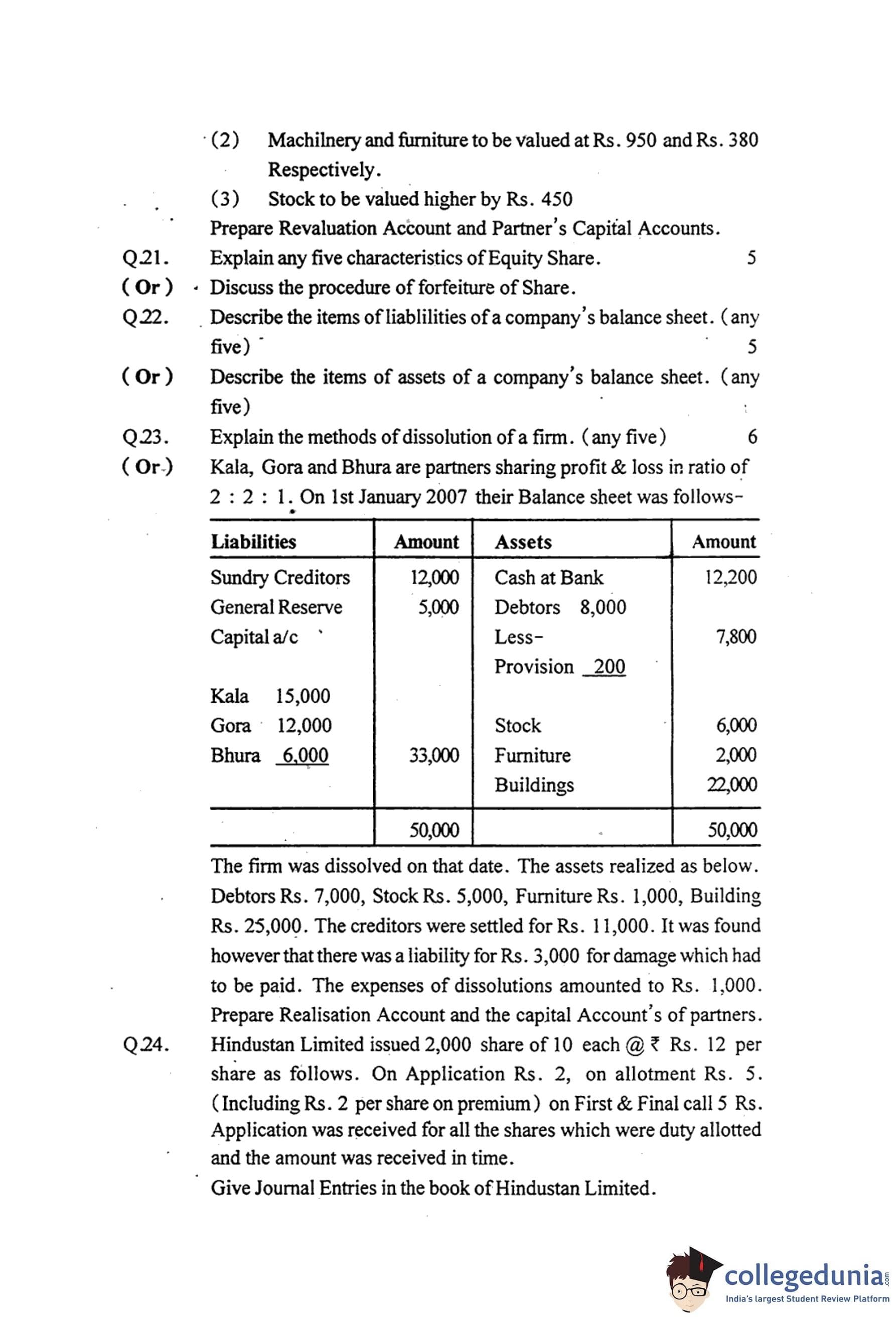 MP Board 12th Book Keeping & Accountancy Question Paper 2015 with Answer Key