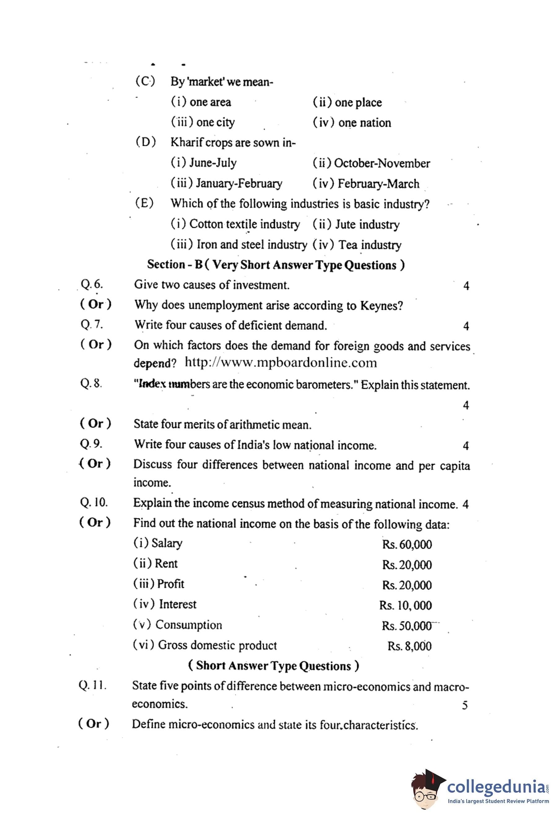 MP Board 12th Business Economics Question Paper 2012 with Answer Key pdf is available for download here. The exam was conducted by Madhya Pradesh Board of Secondary Education, MPBSE on March 22, 2012 in the Morning Session 8.30 AM to 11.30AM. The question paper comprised a total of 20 questions divided among 2 sections.