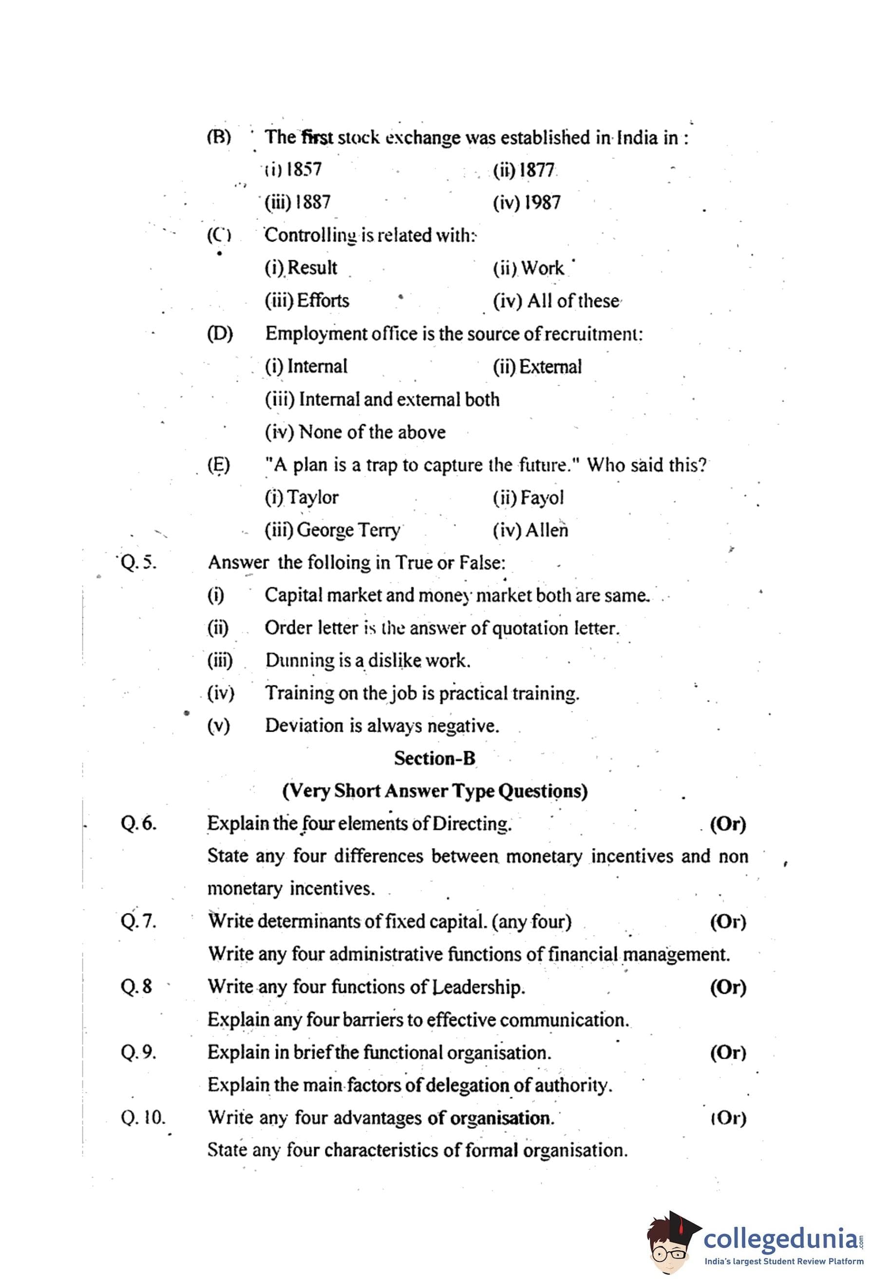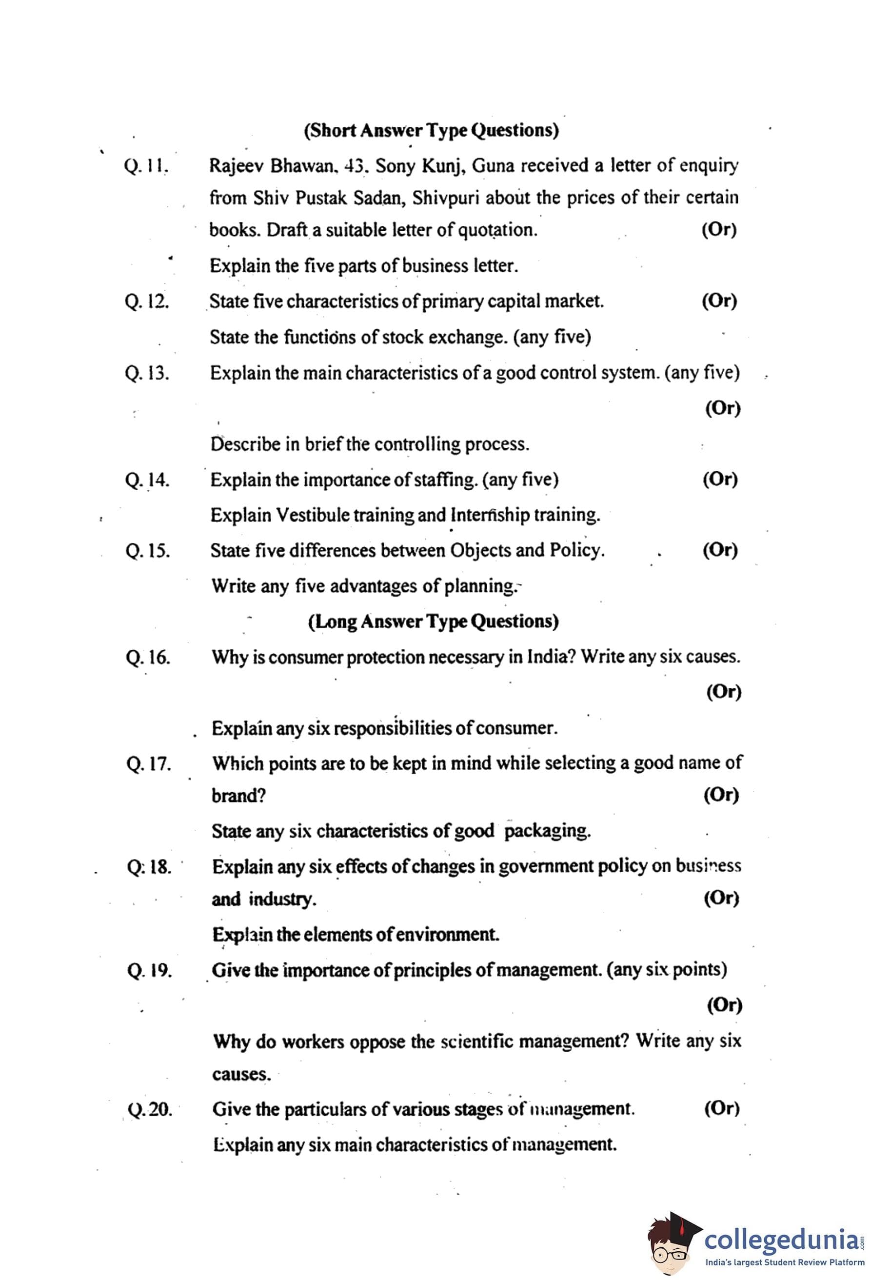 MP Board 12th Business Studies Question Paper 2013 with Answer Key
