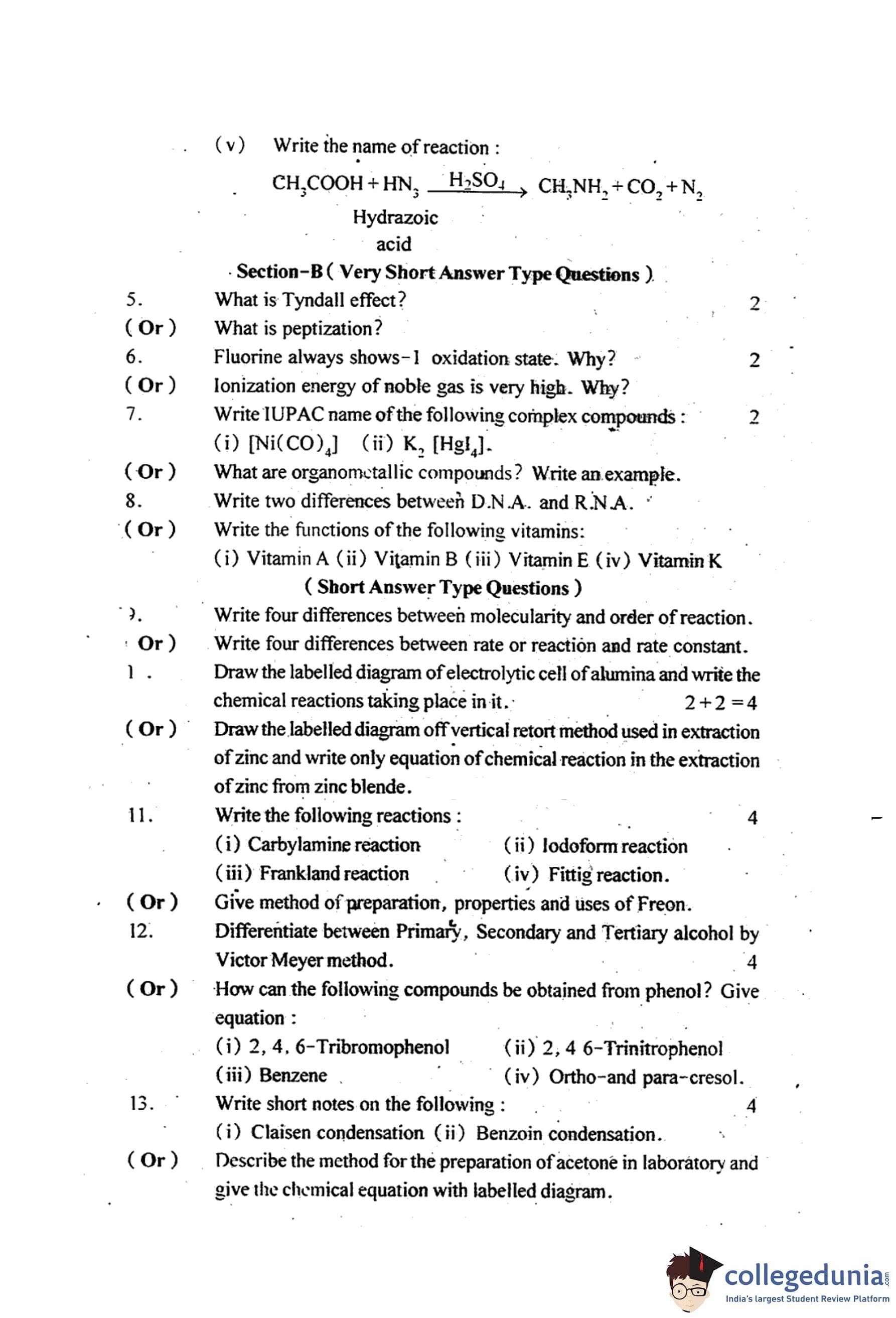 MP Board 12th Chemistry Question Paper 2014 with Answer Key pdf is available for download here. The exam was conducted by Madhya Pradesh Board of Secondary Education, MPBSE on March 19, 2014 in the Morning Session 8.30 AM to 11.30AM. The question paper comprised a total of 18 questions.
