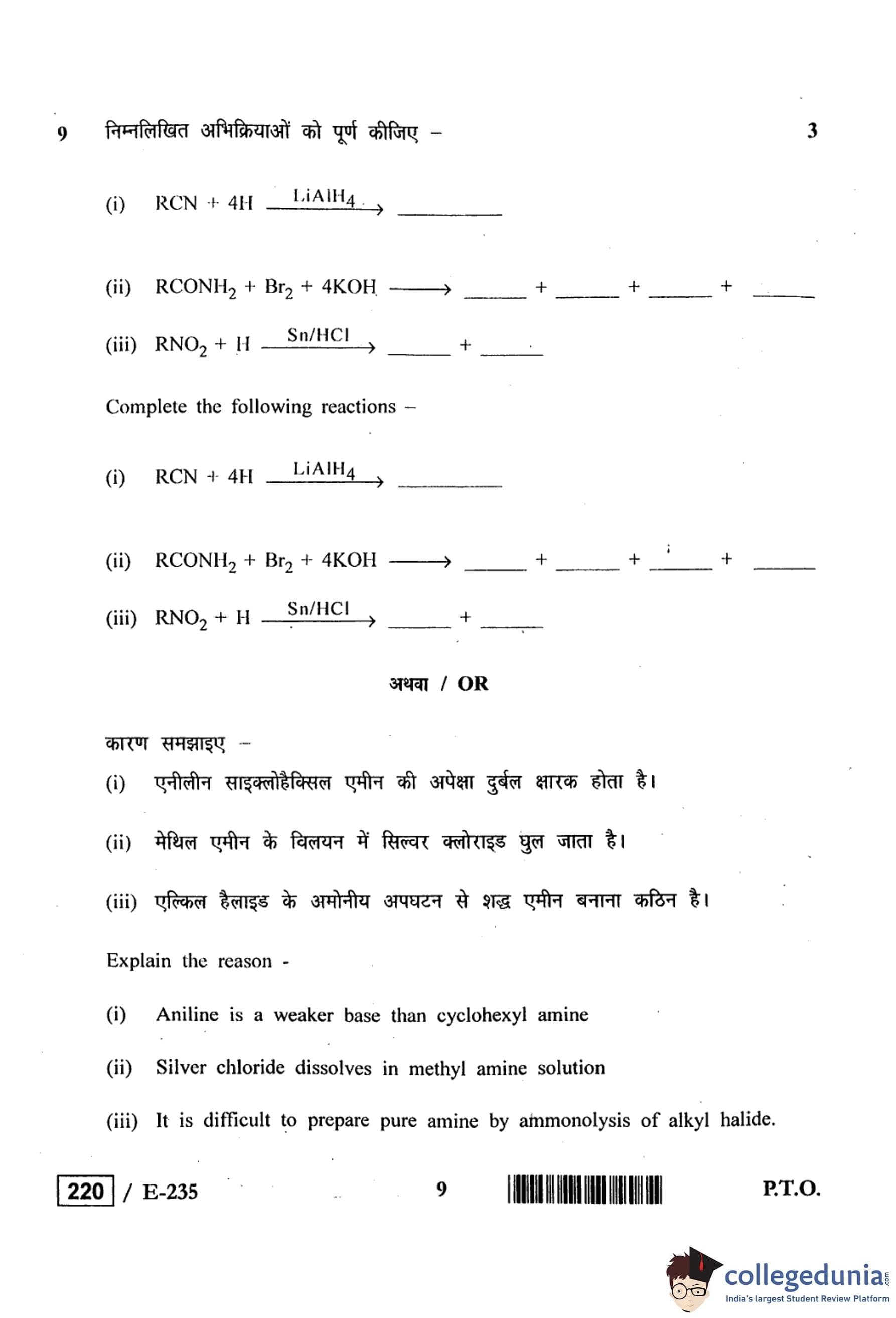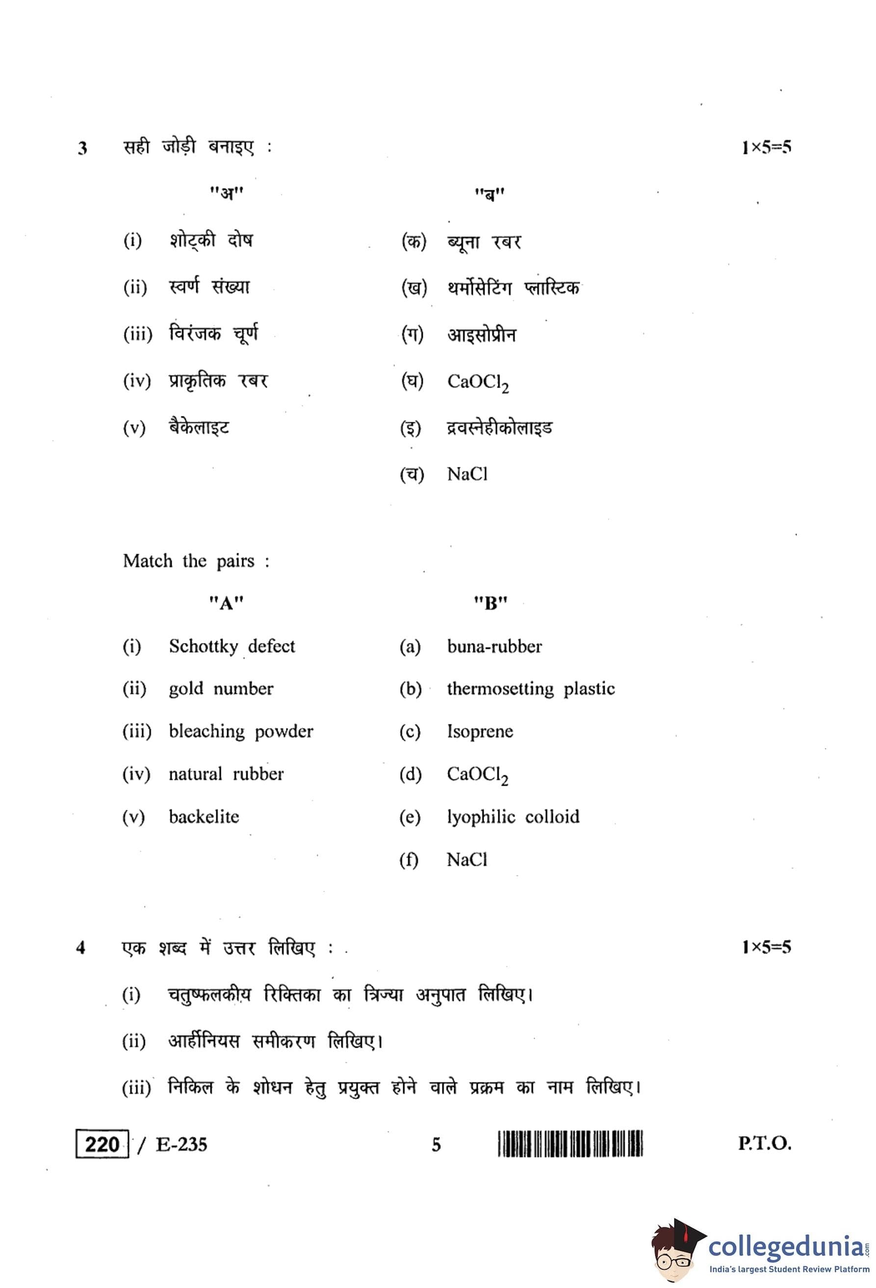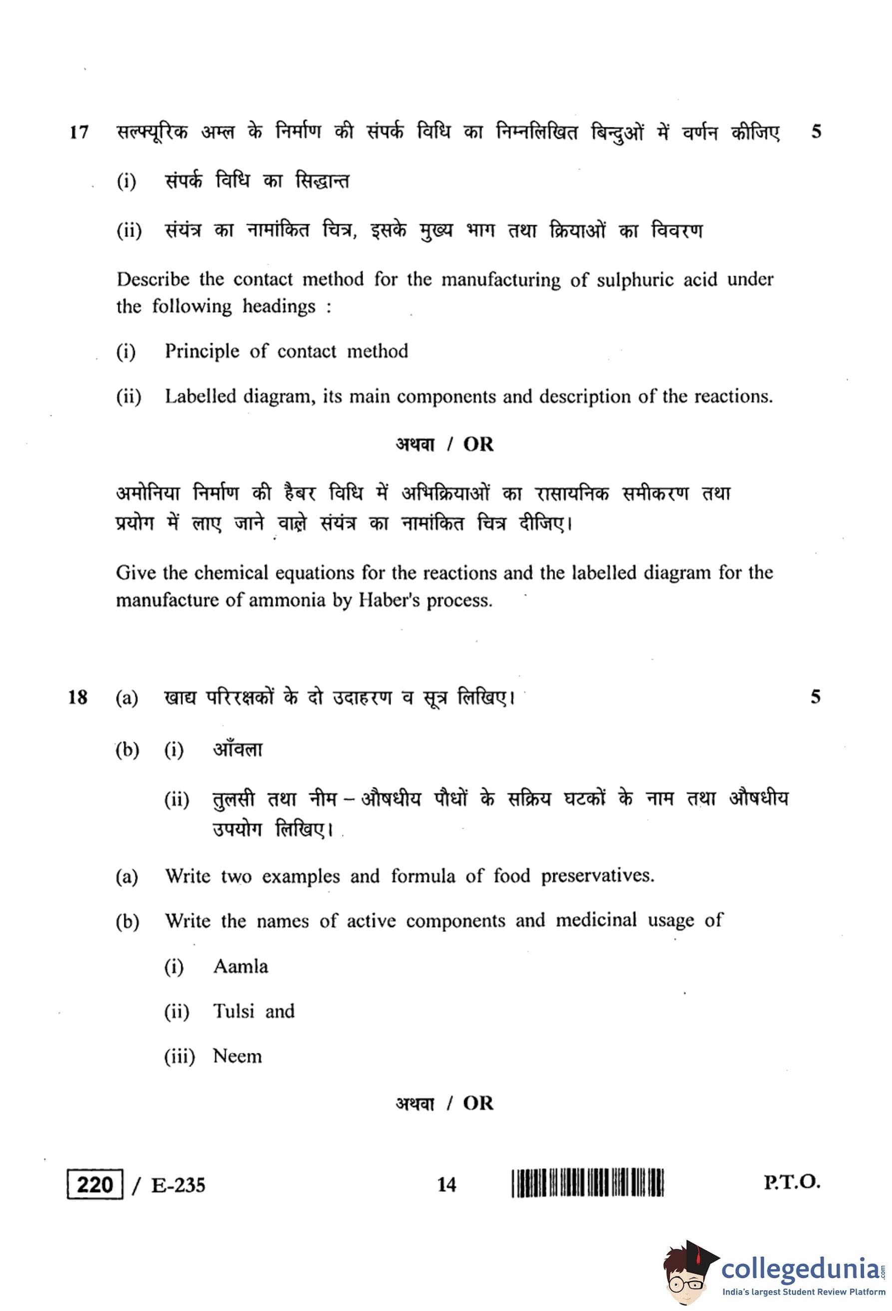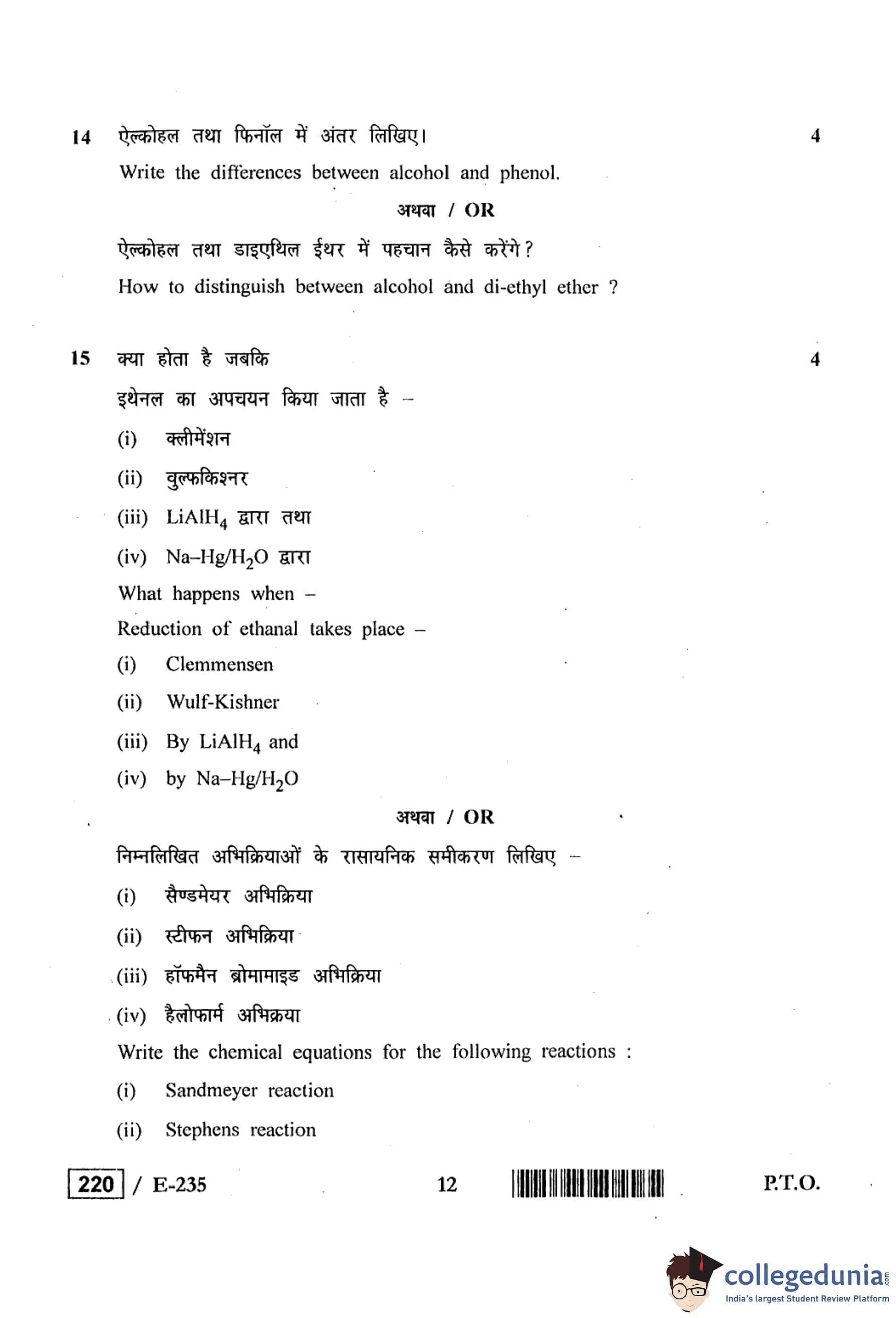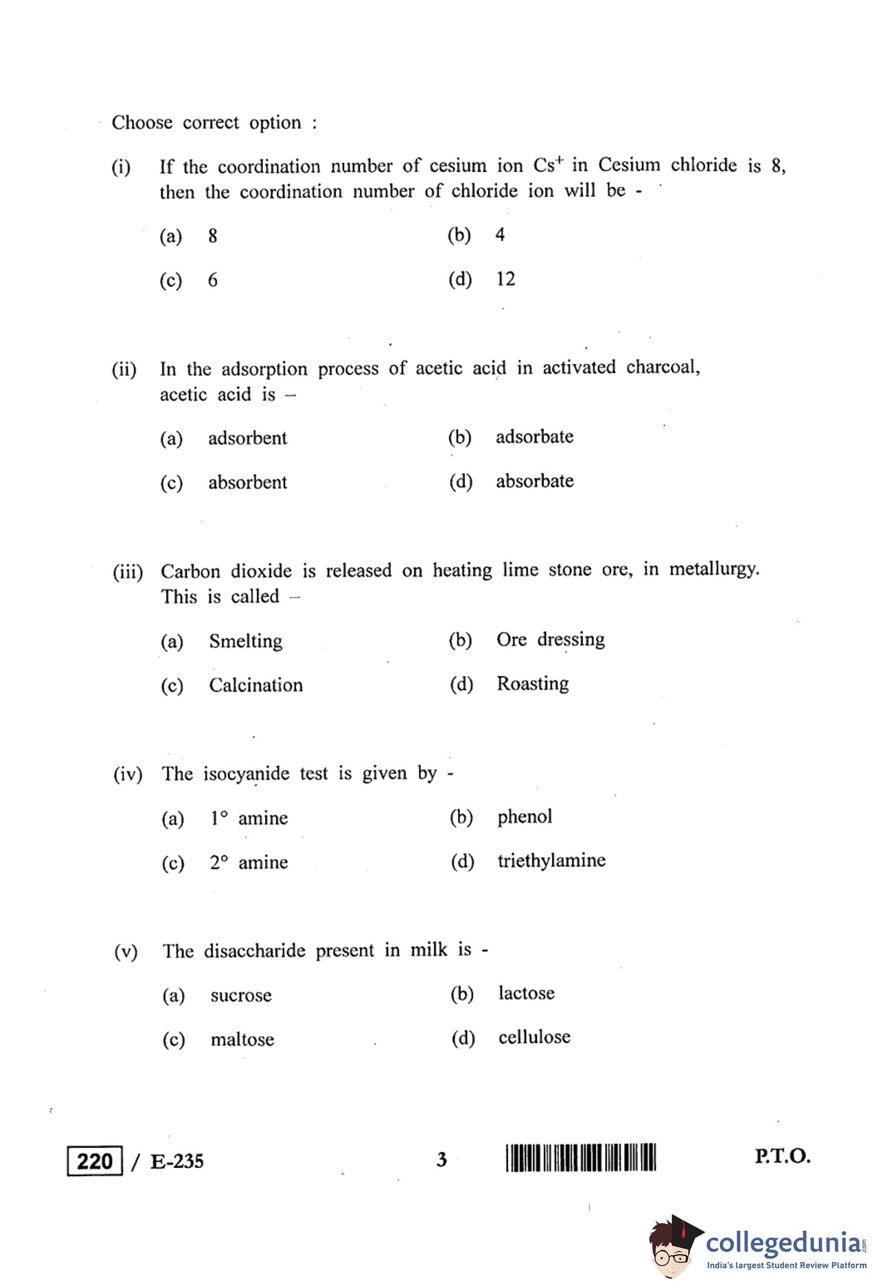MP Board 12th Chemistry Question Paper 2019 with Answer Key