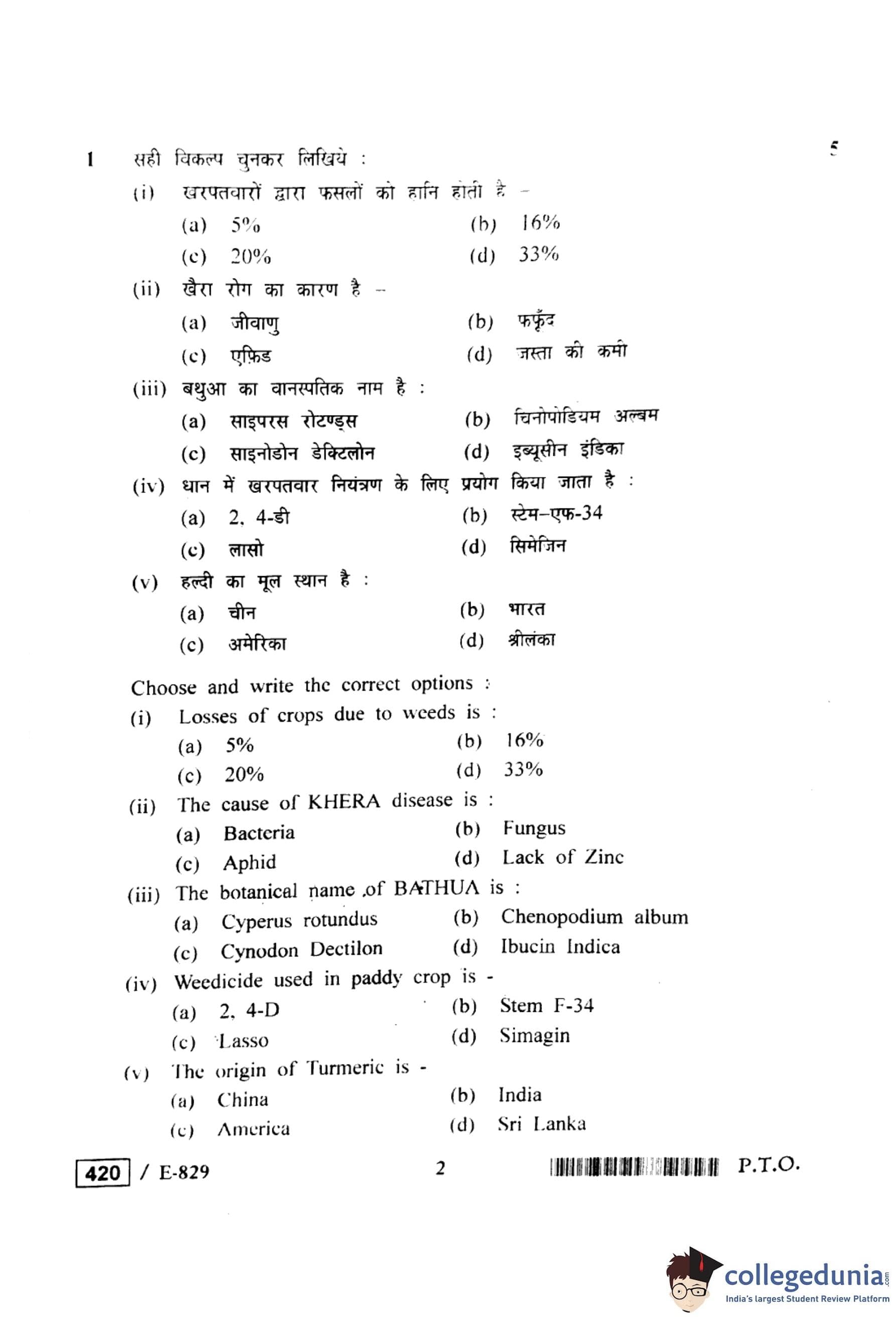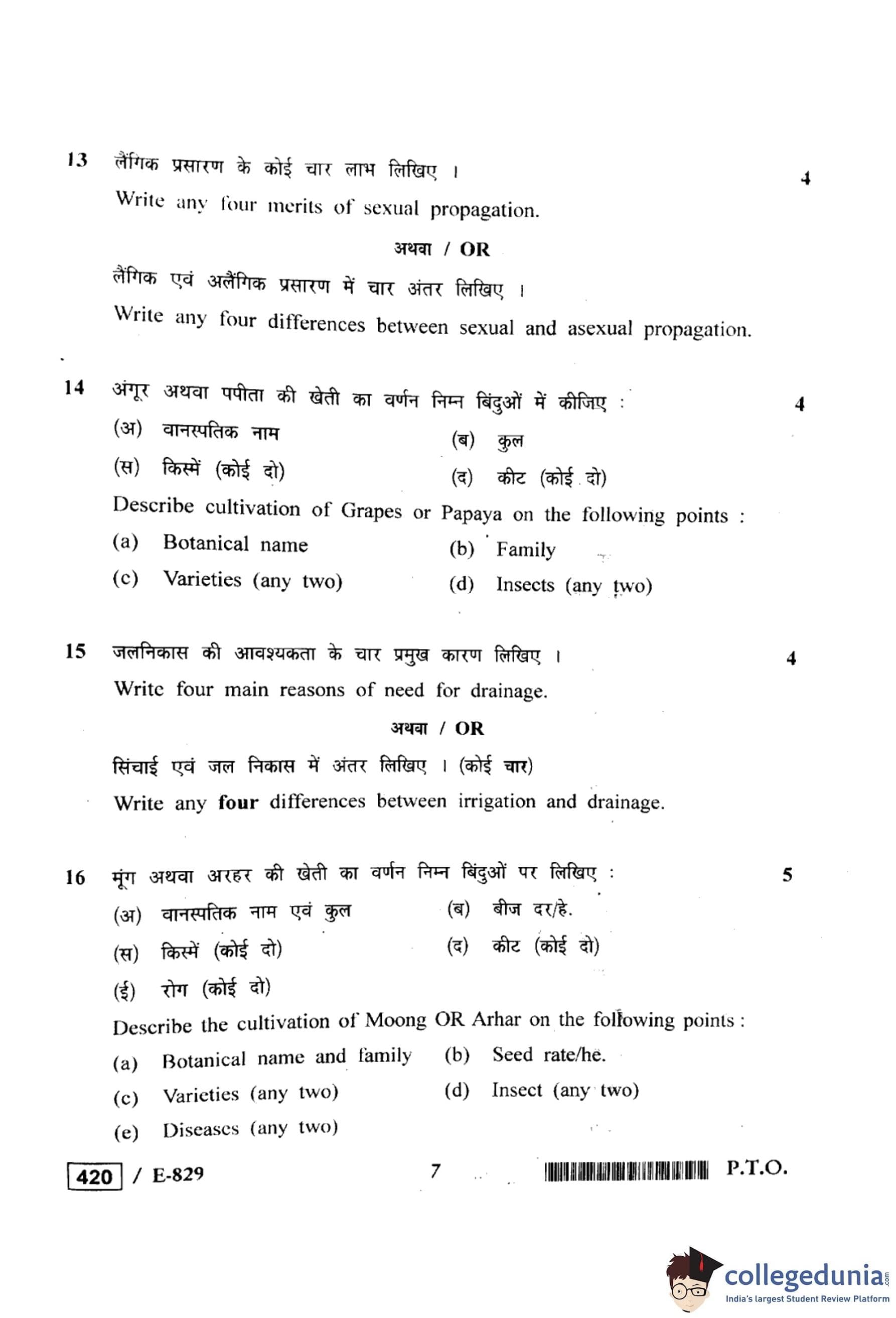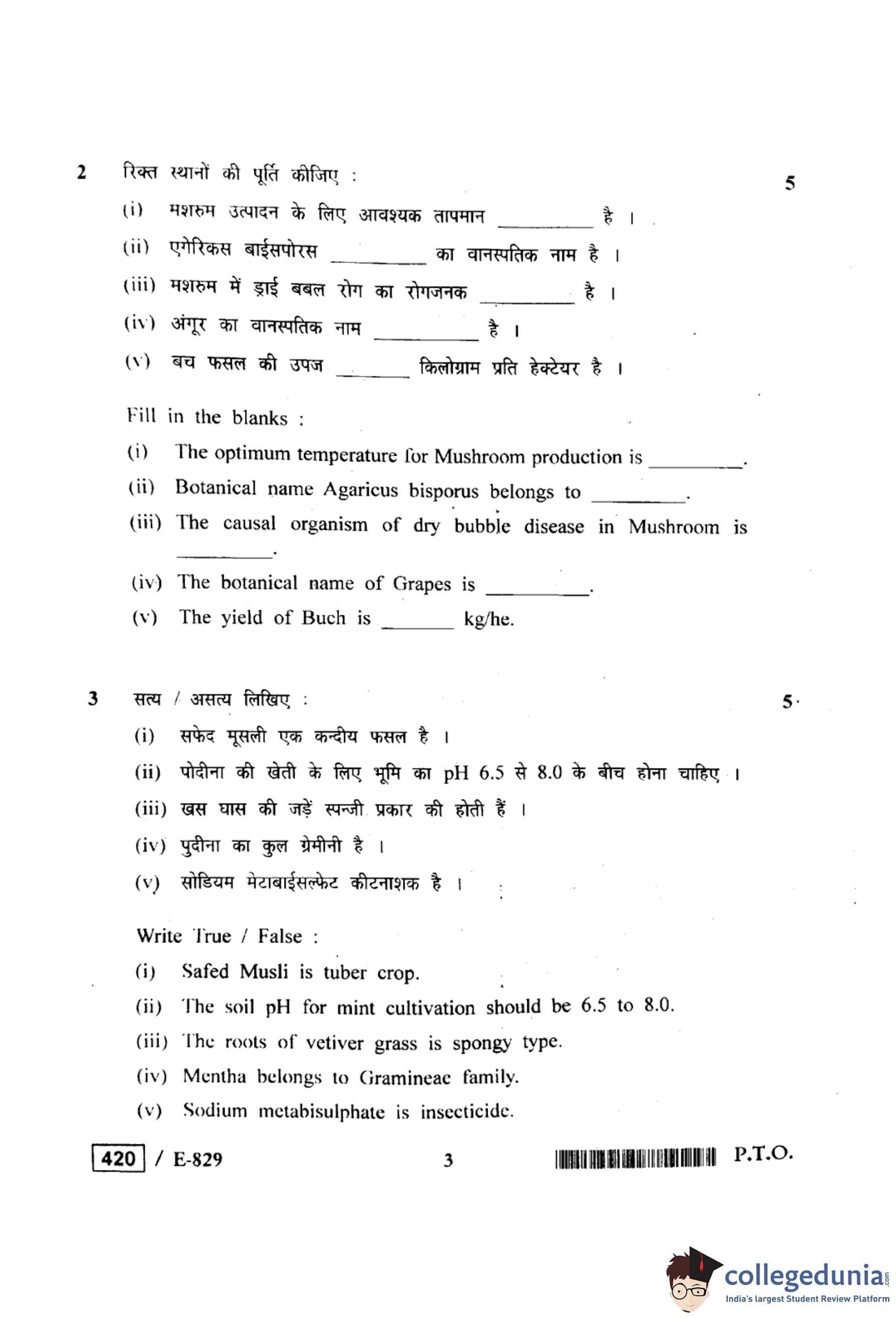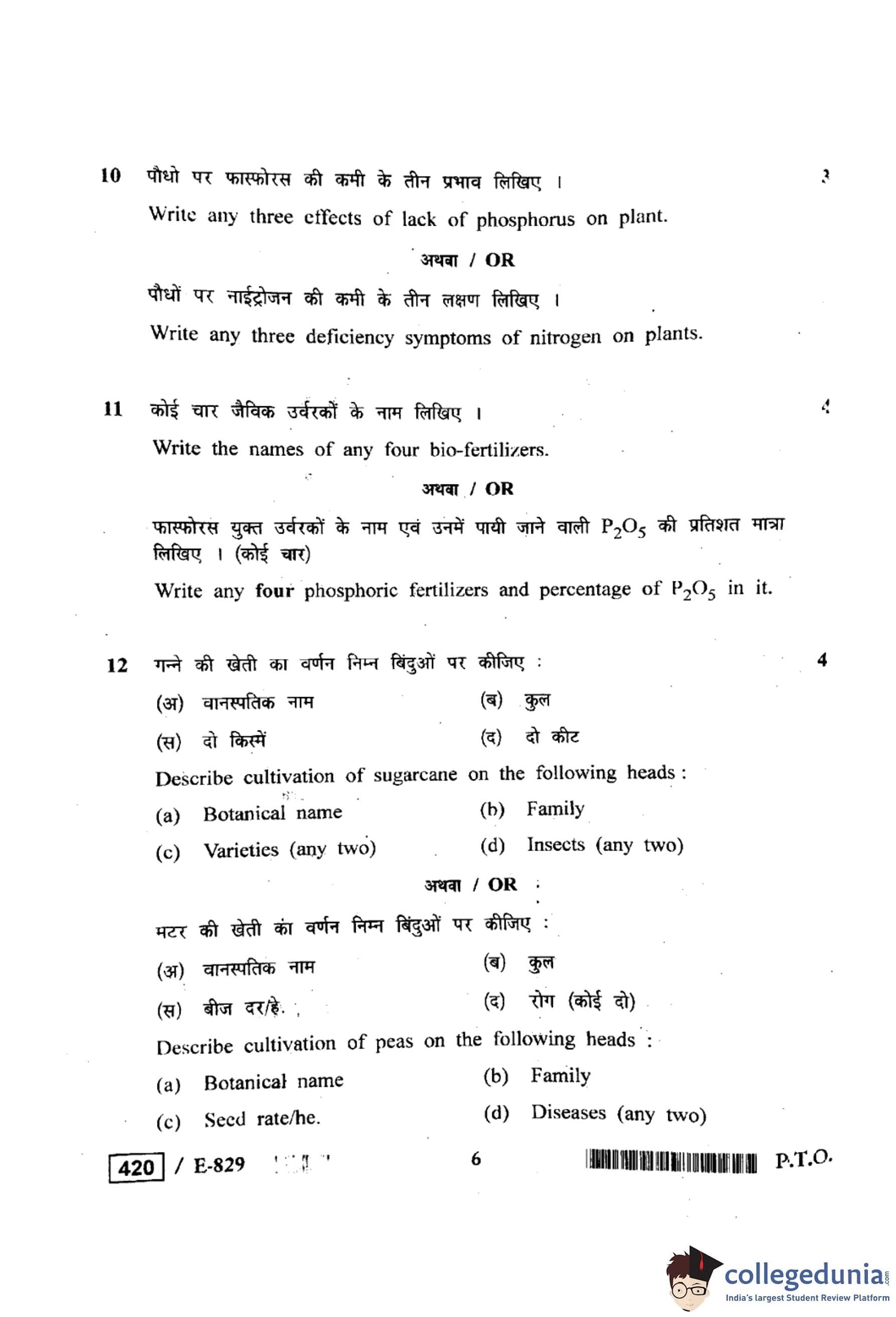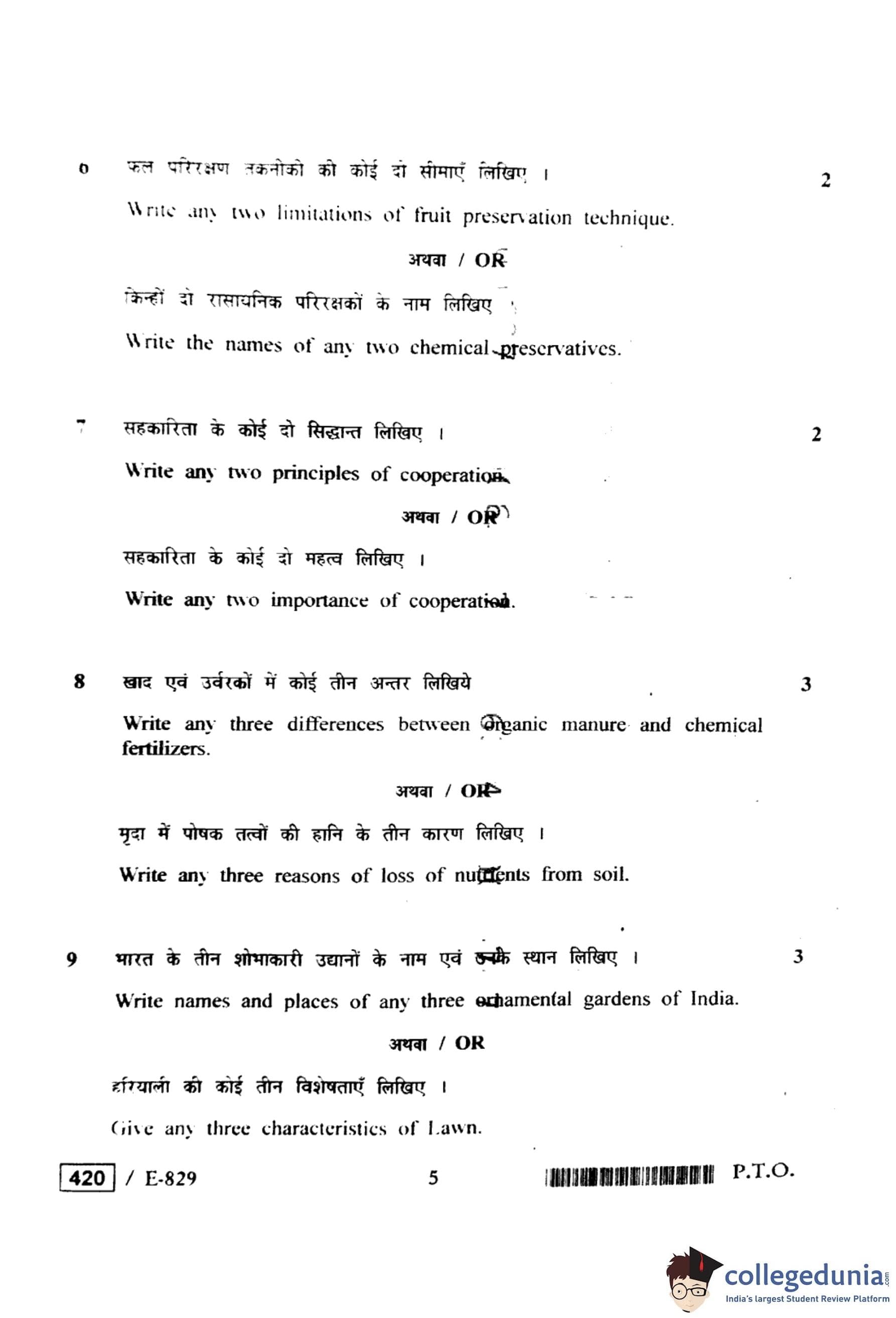 MP Board 12th Crop Production Horticulture Question Paper 2020 with Answer Key