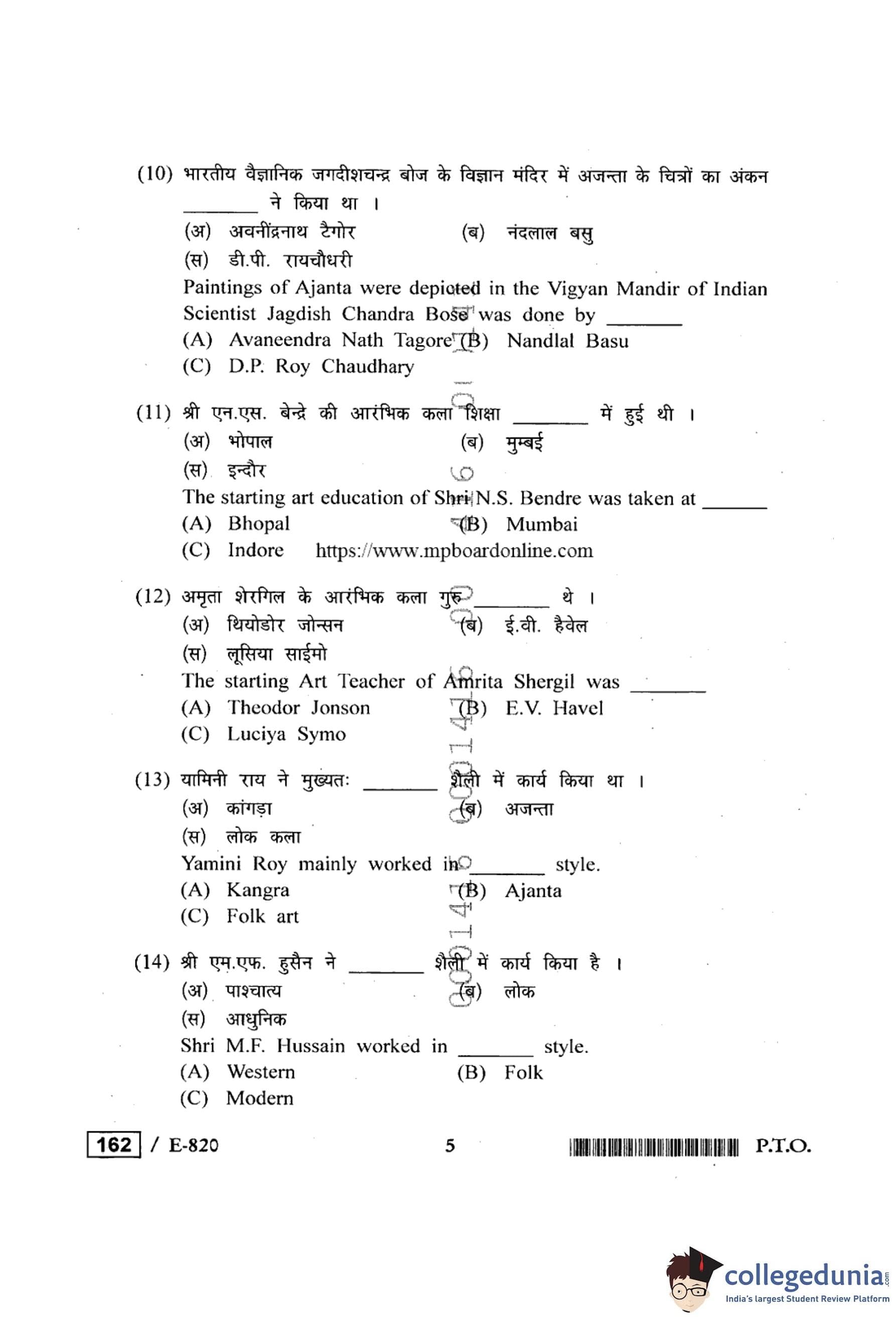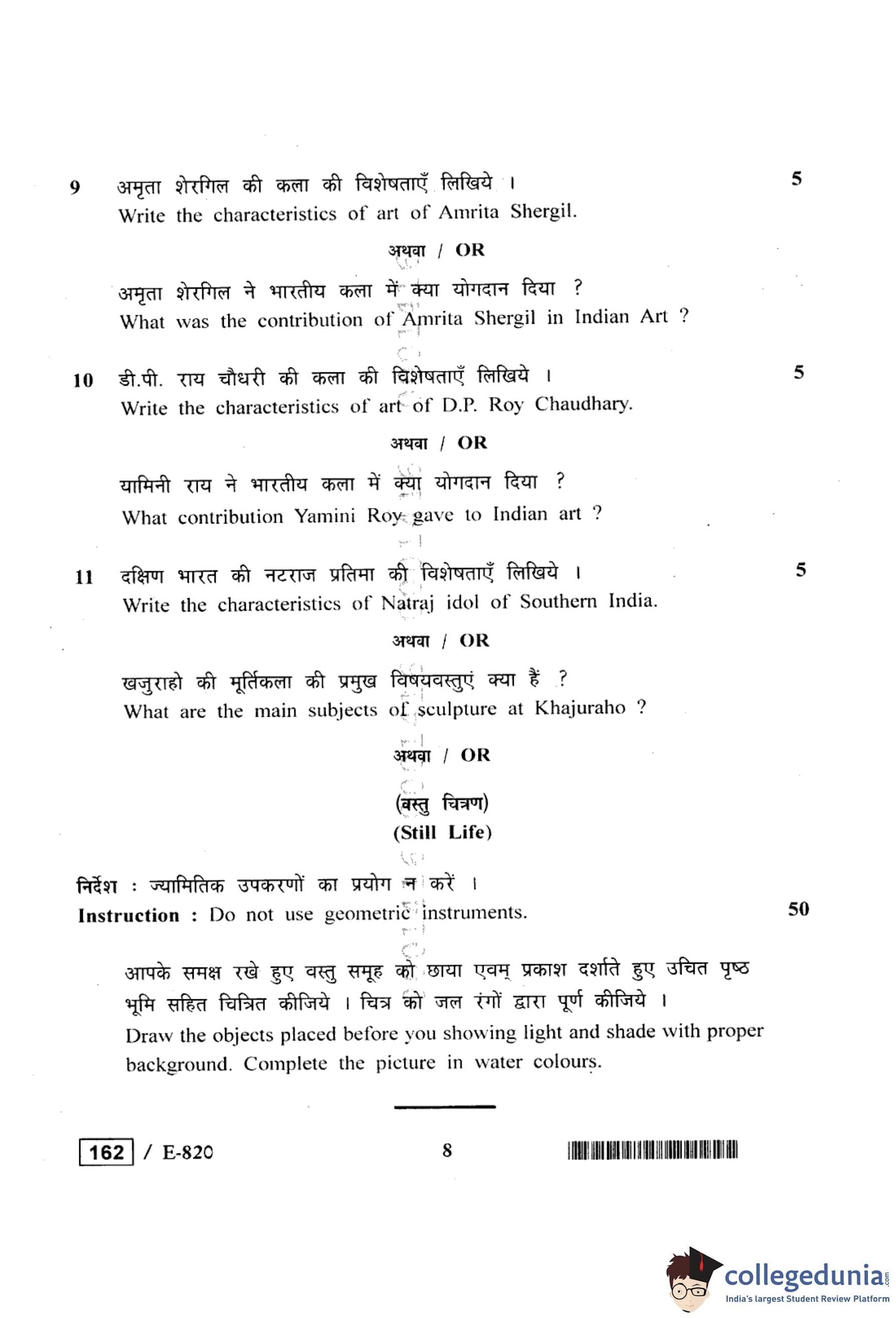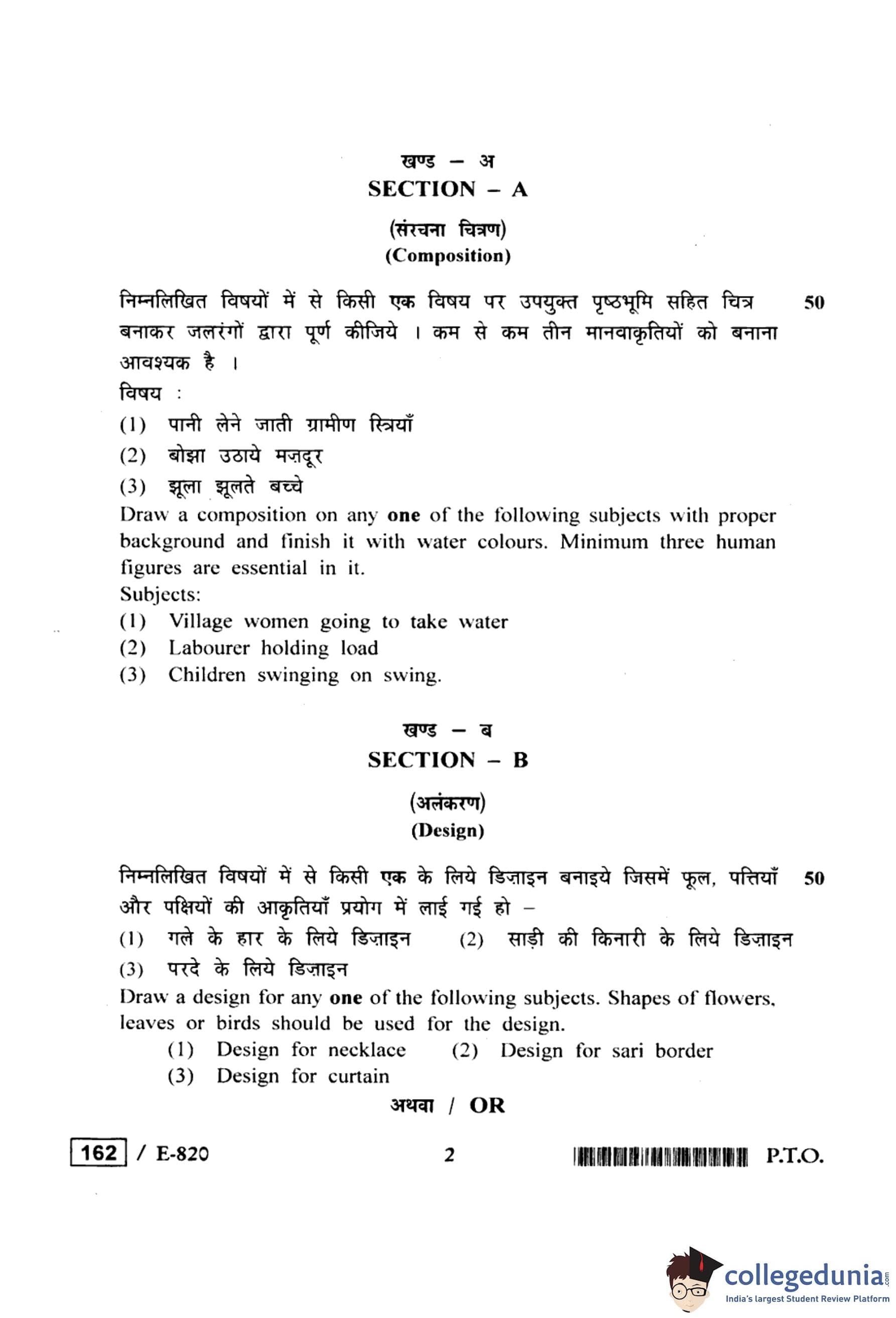 MP Board 12th Drawing & Designing Question Paper 2020 with Answer Key