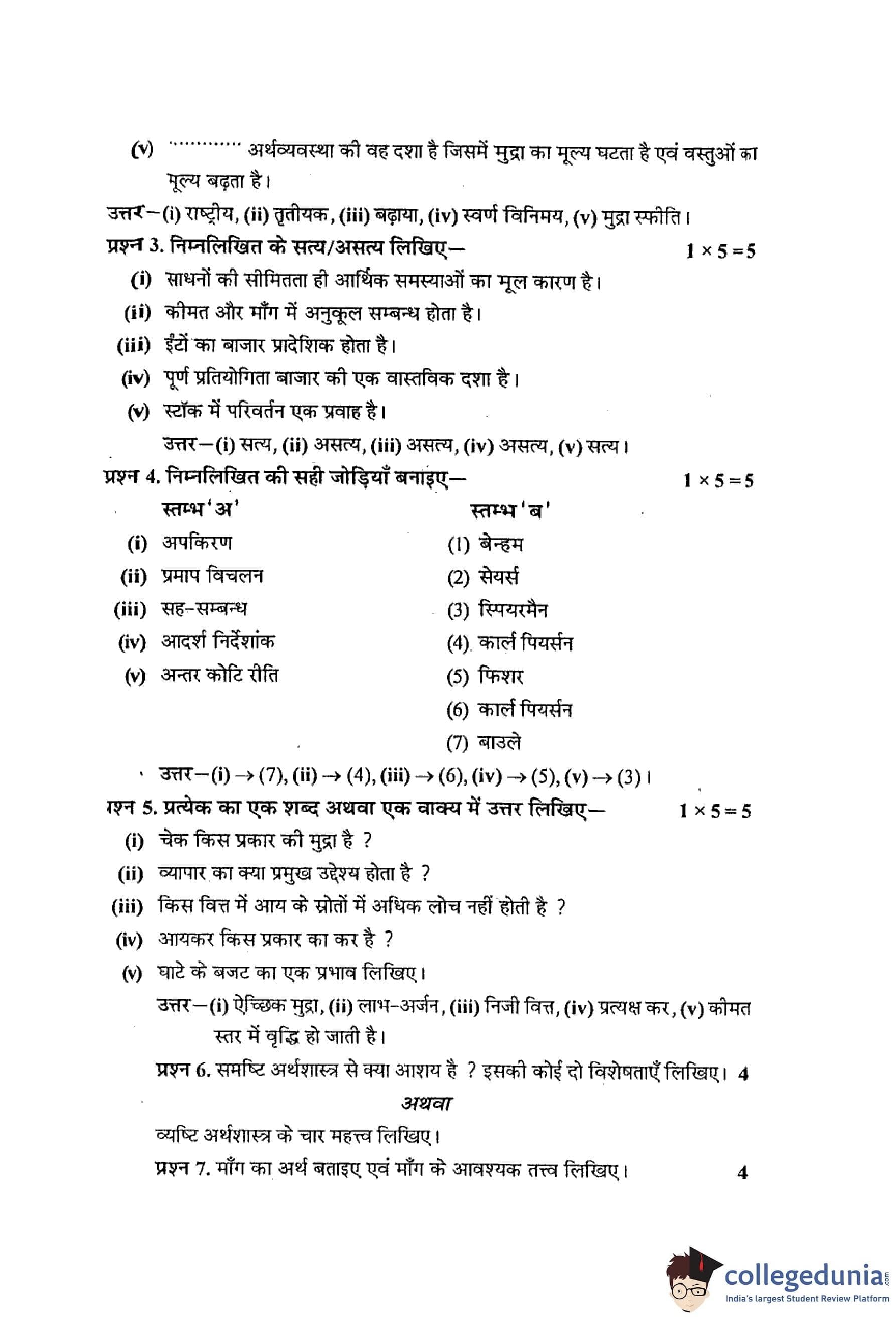 MP Board 12th Economics Hindi Question Paper 2013 with Answer Key