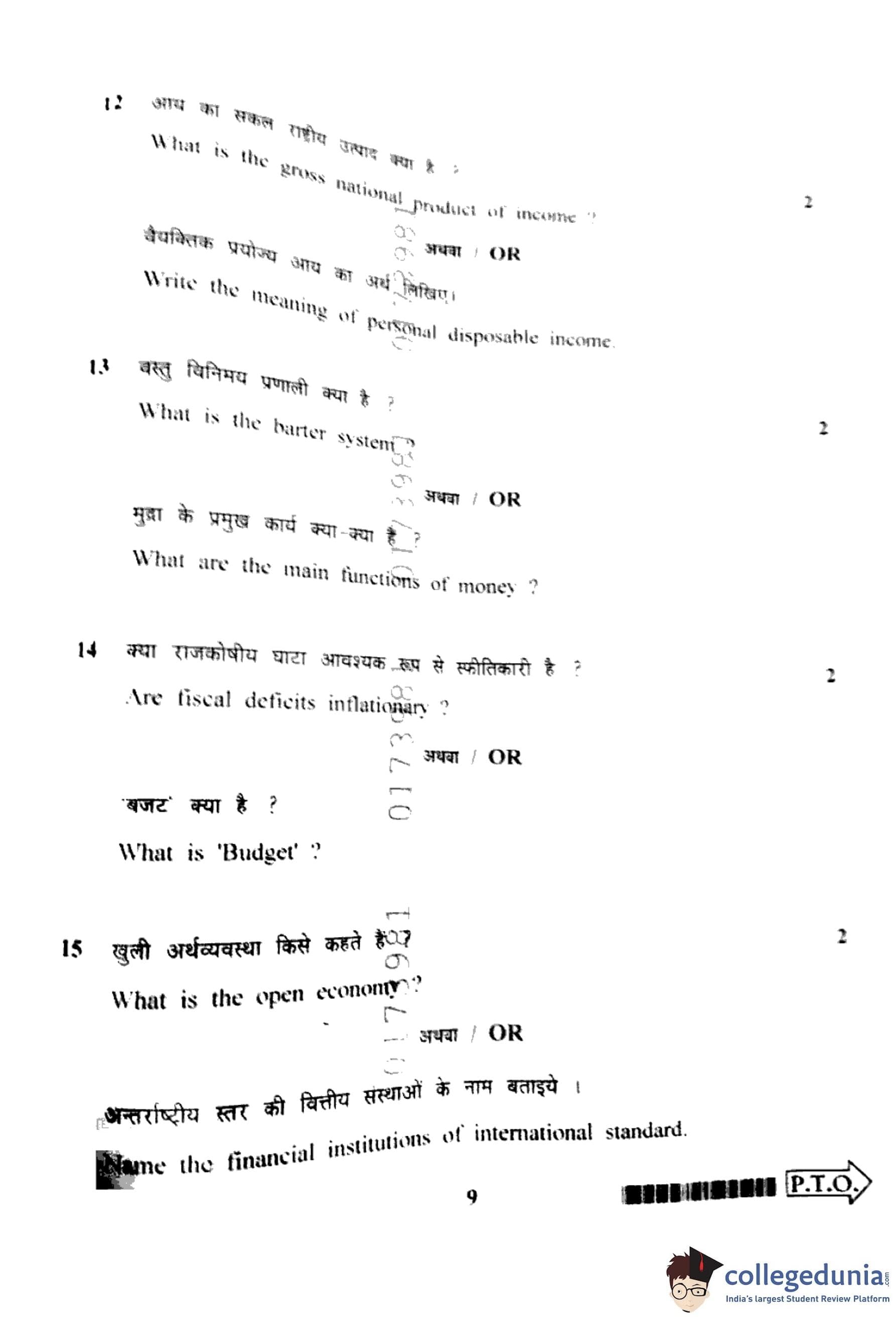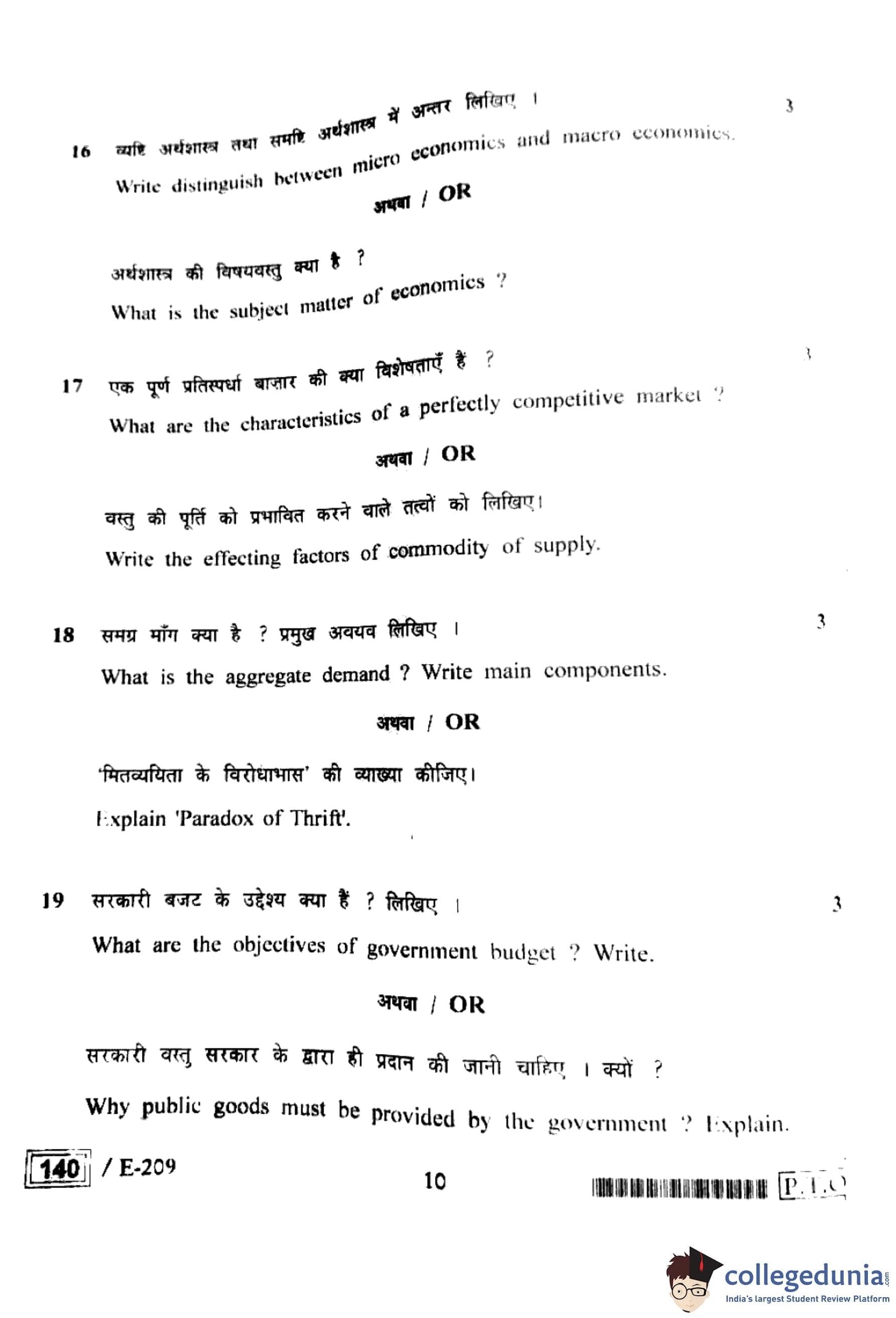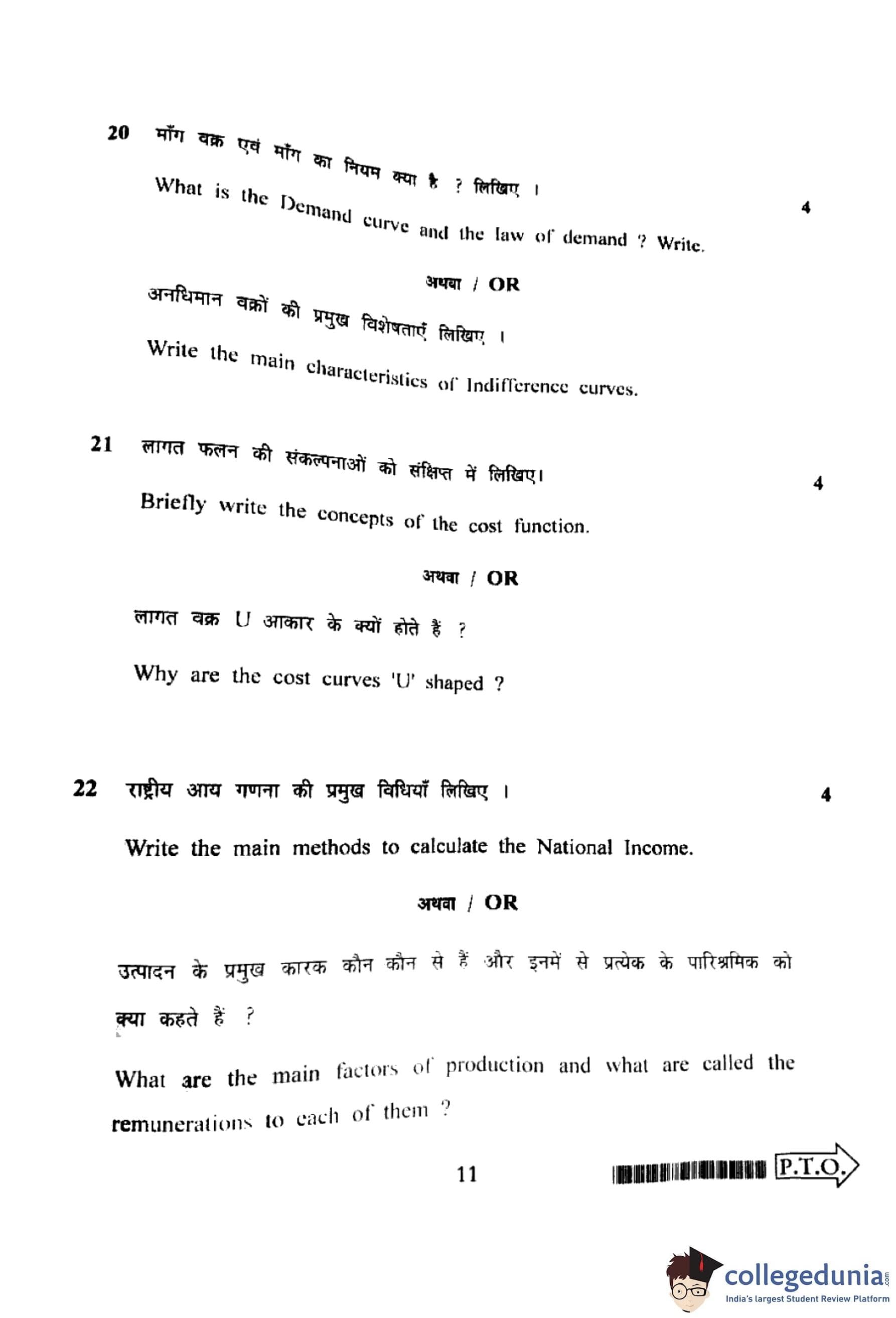 MP Board 12th Economics Question Paper 2022 with Answer Key