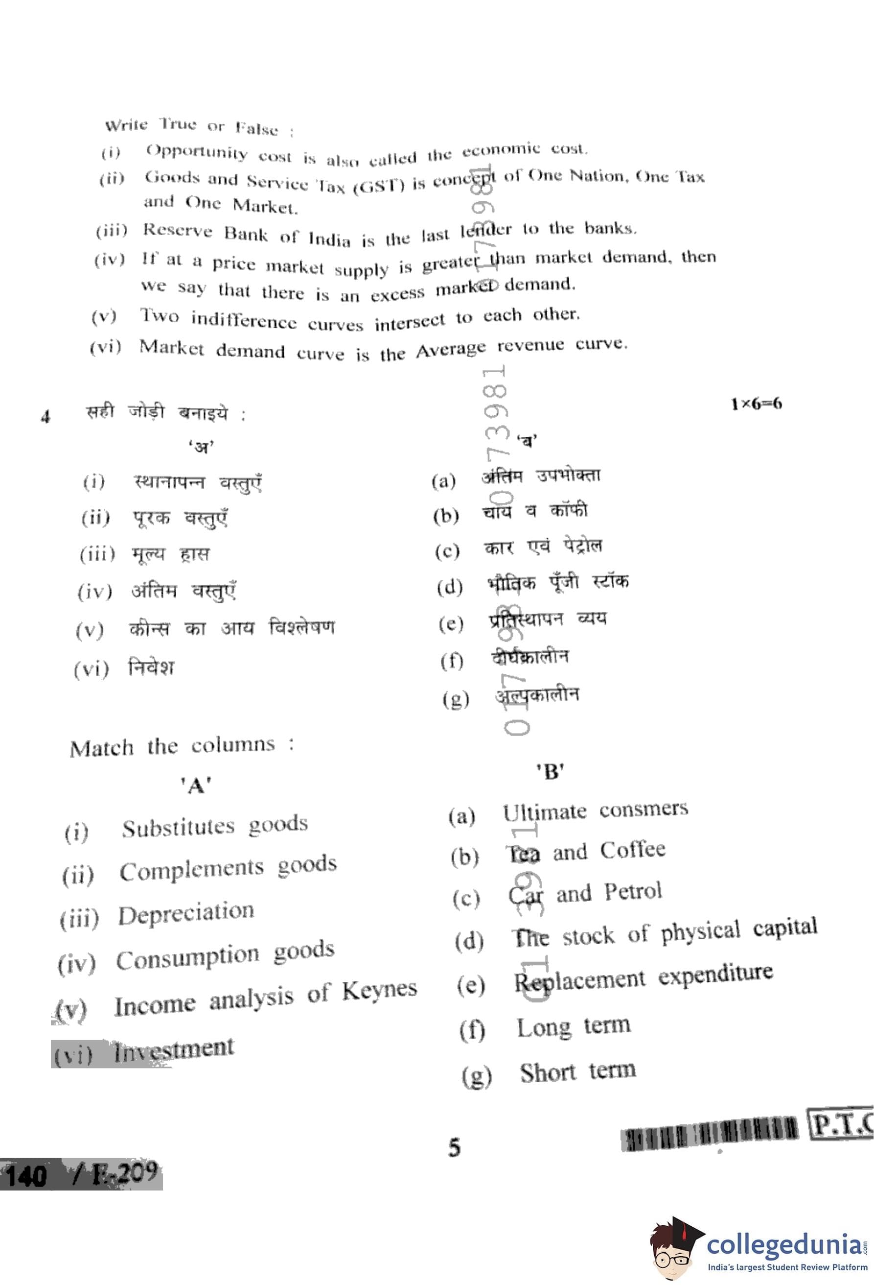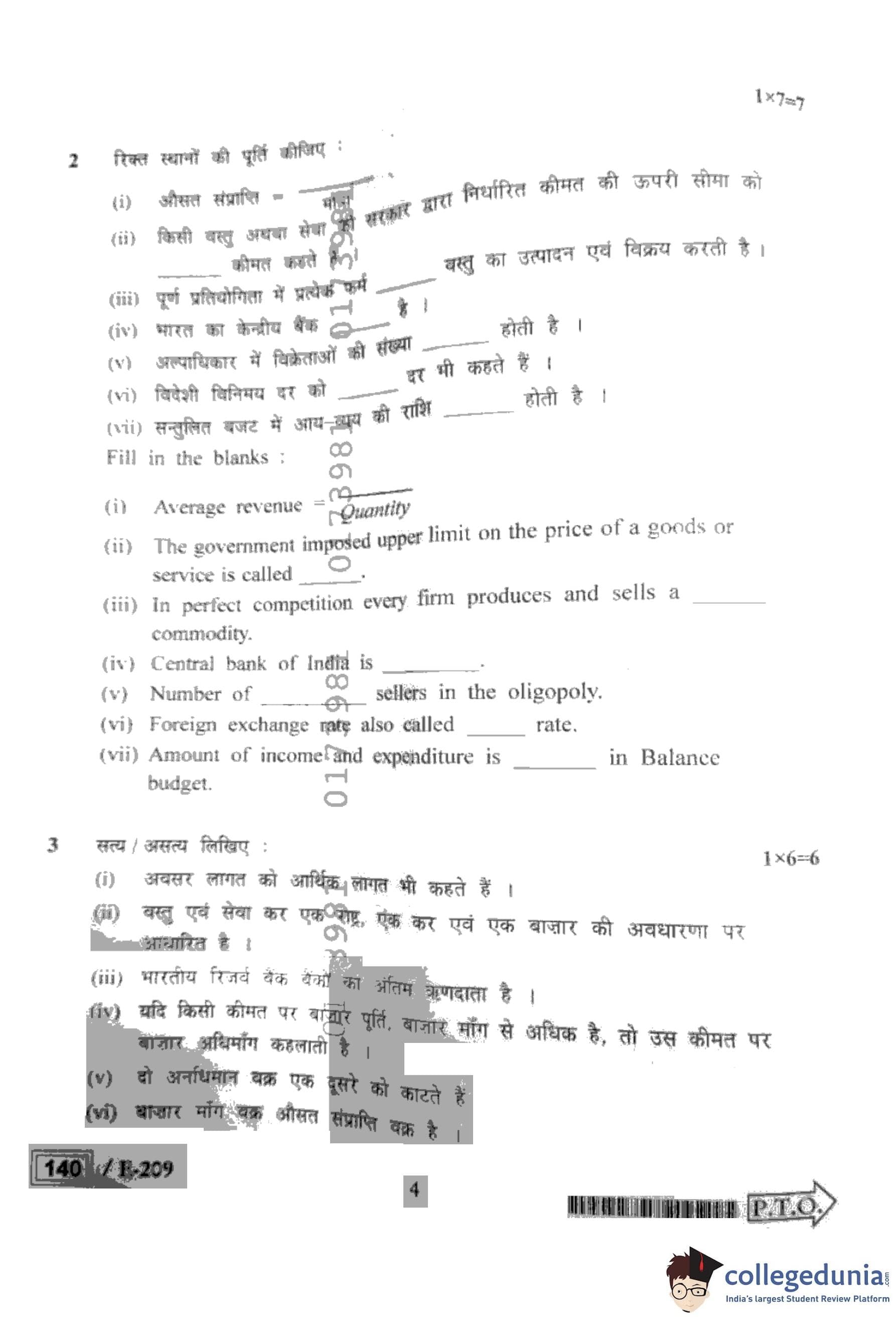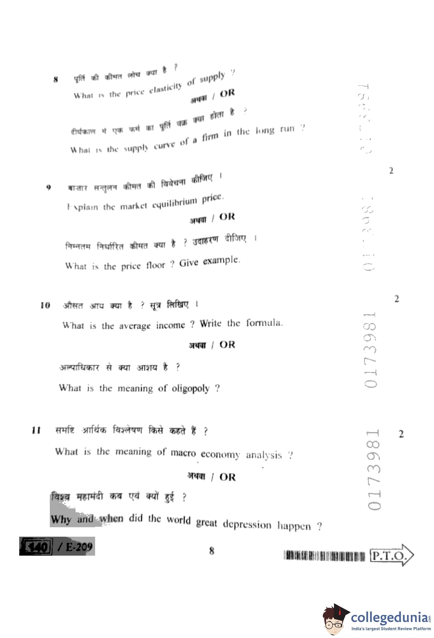 MP Board 12th Economics Question Paper 2022 with Answer Key
