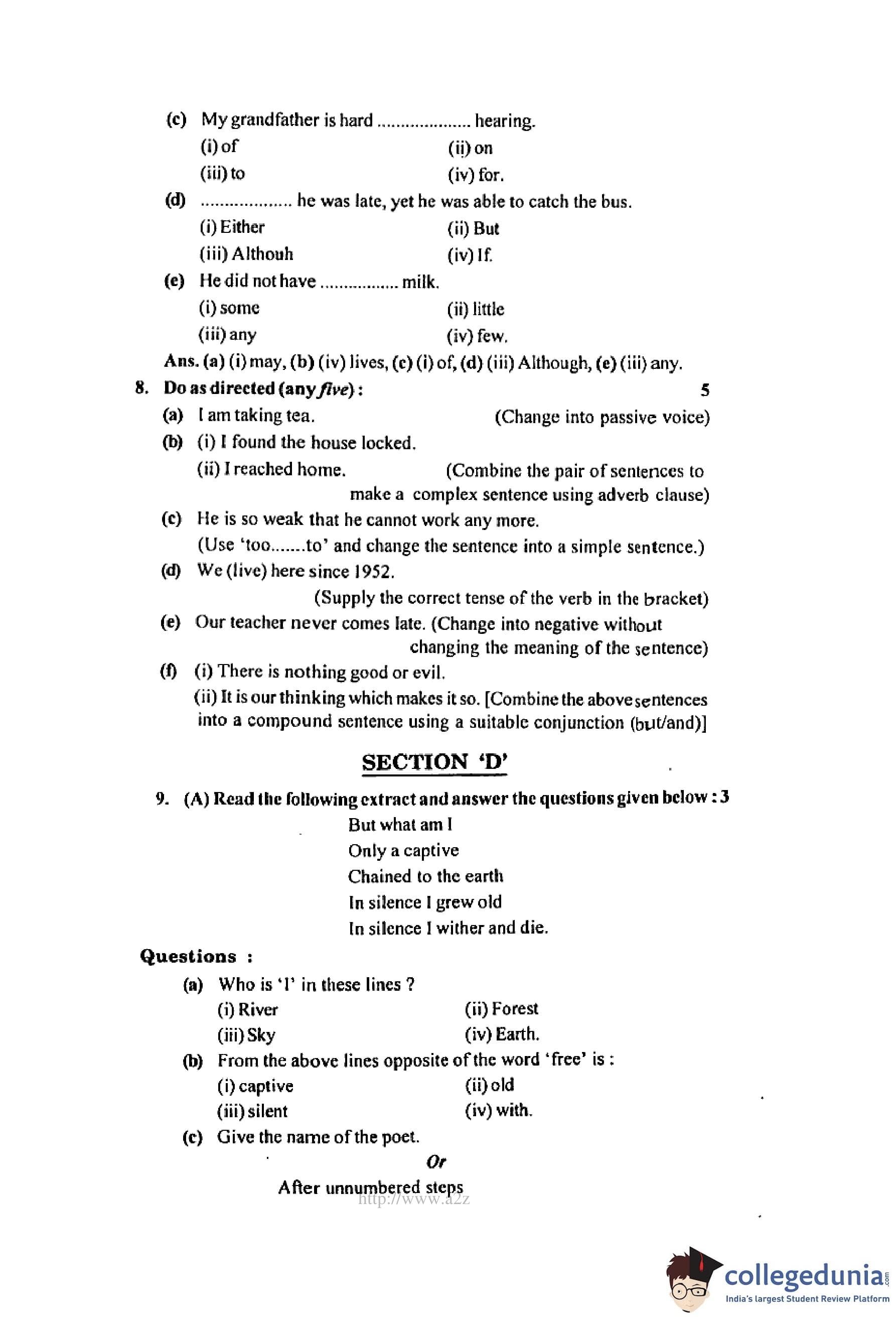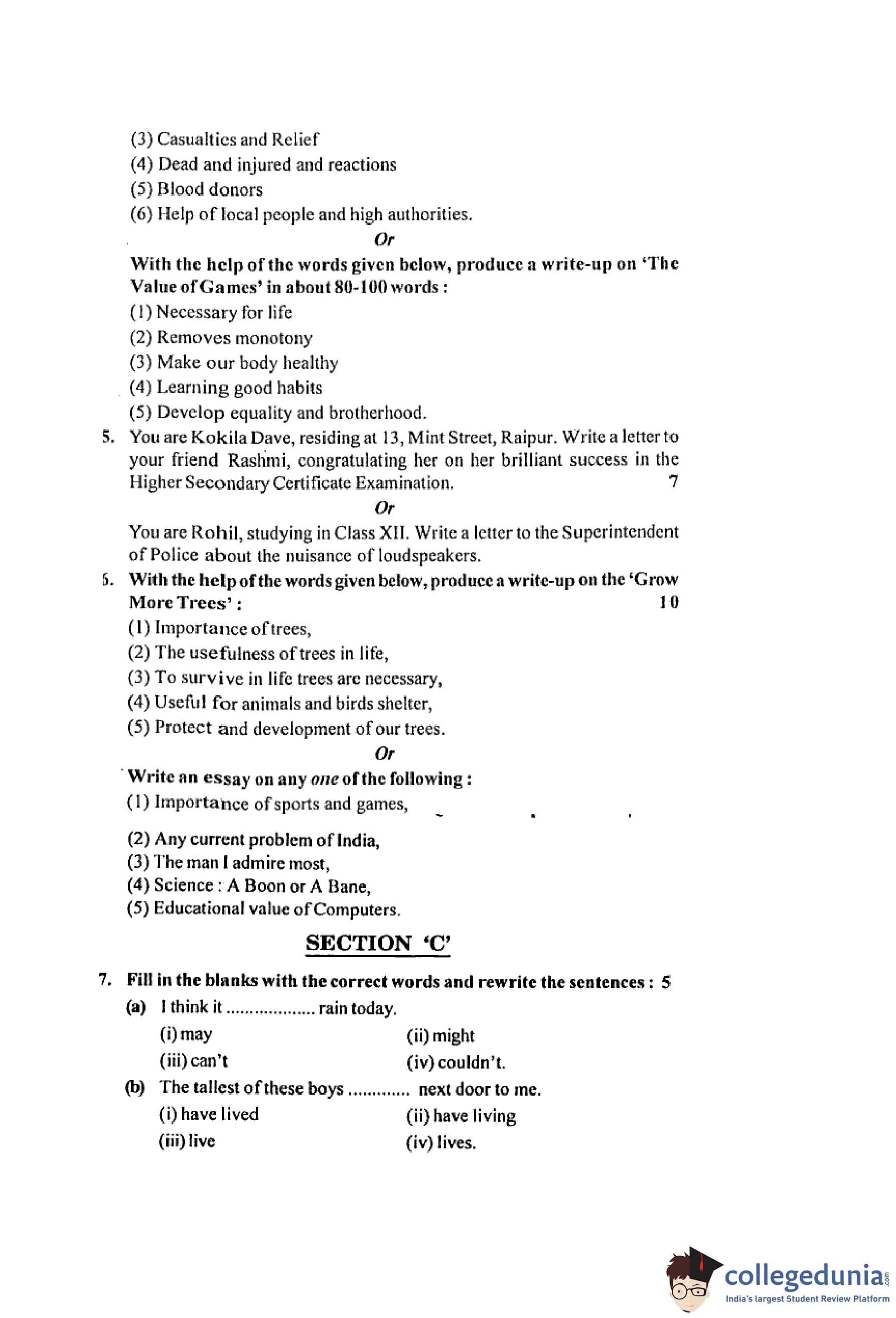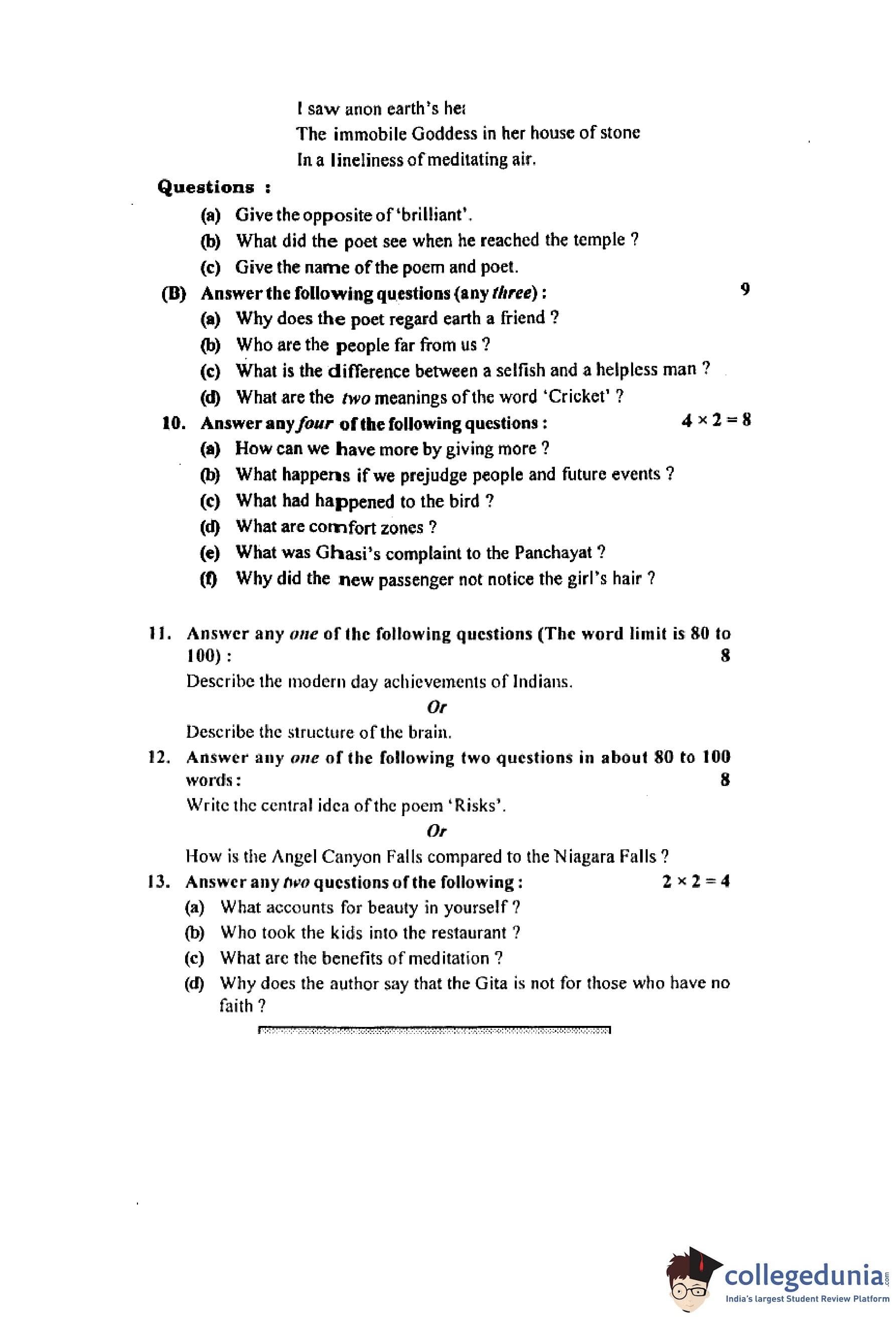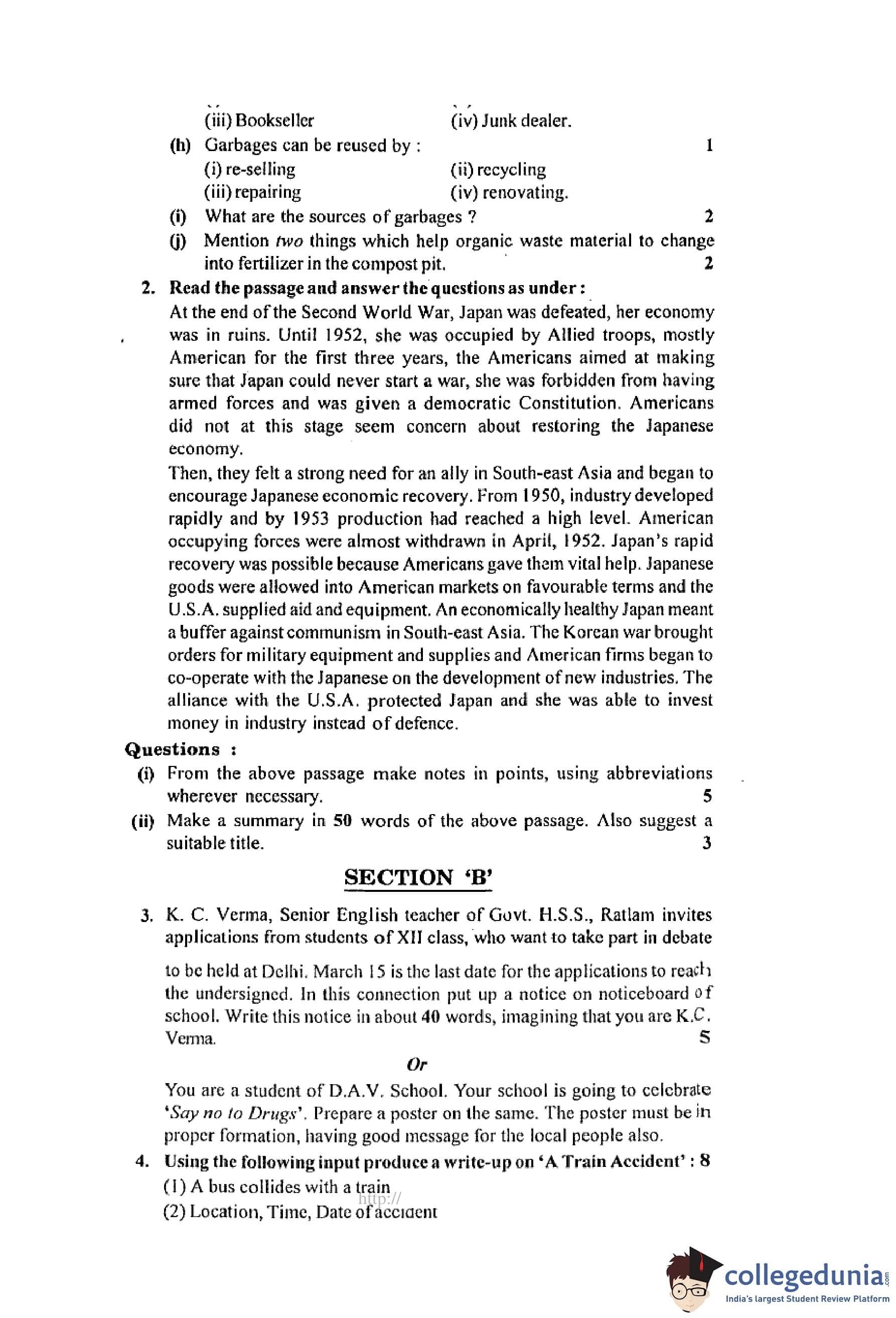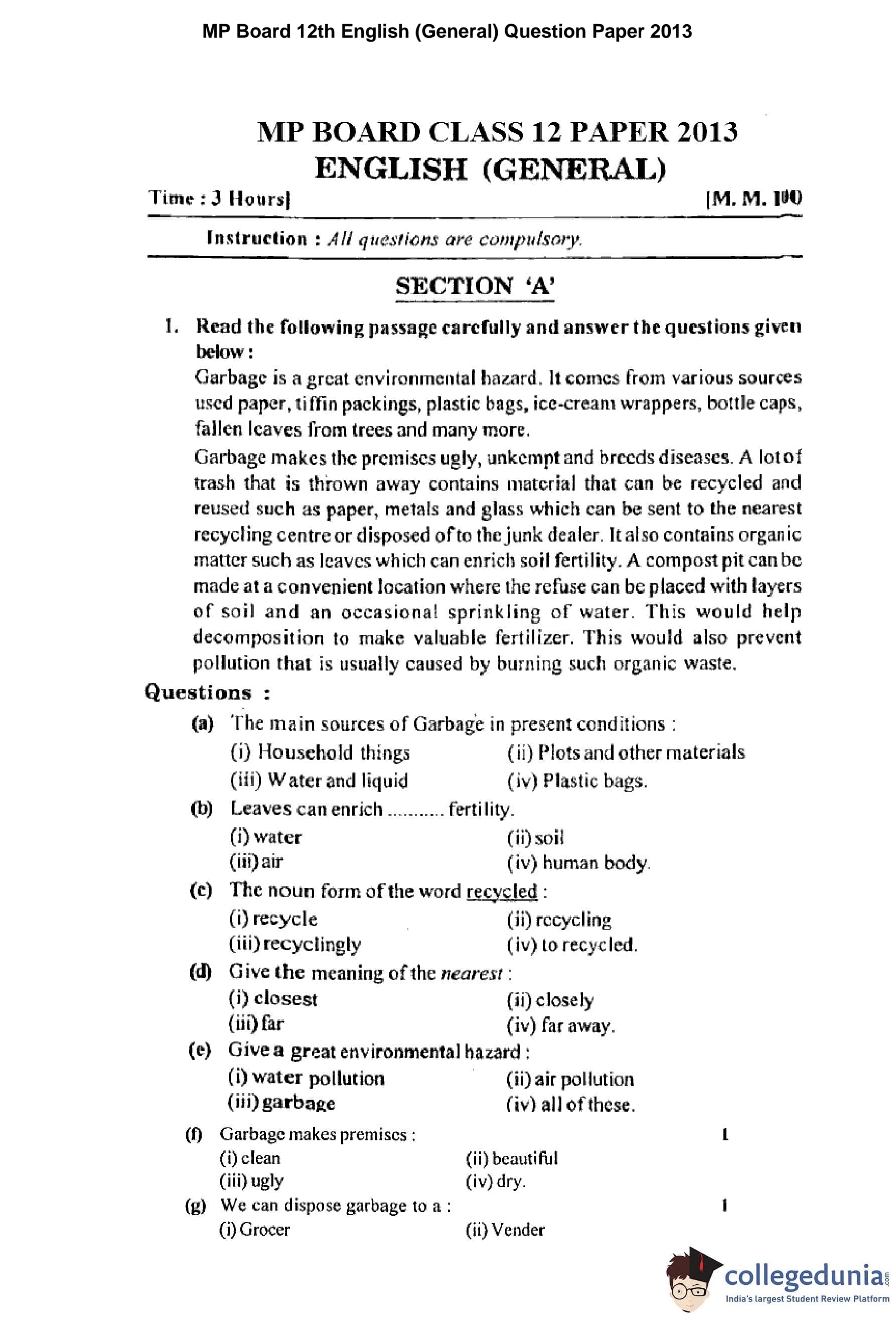MP Board 12th English (General) Question Paper 2013 with Answer Key