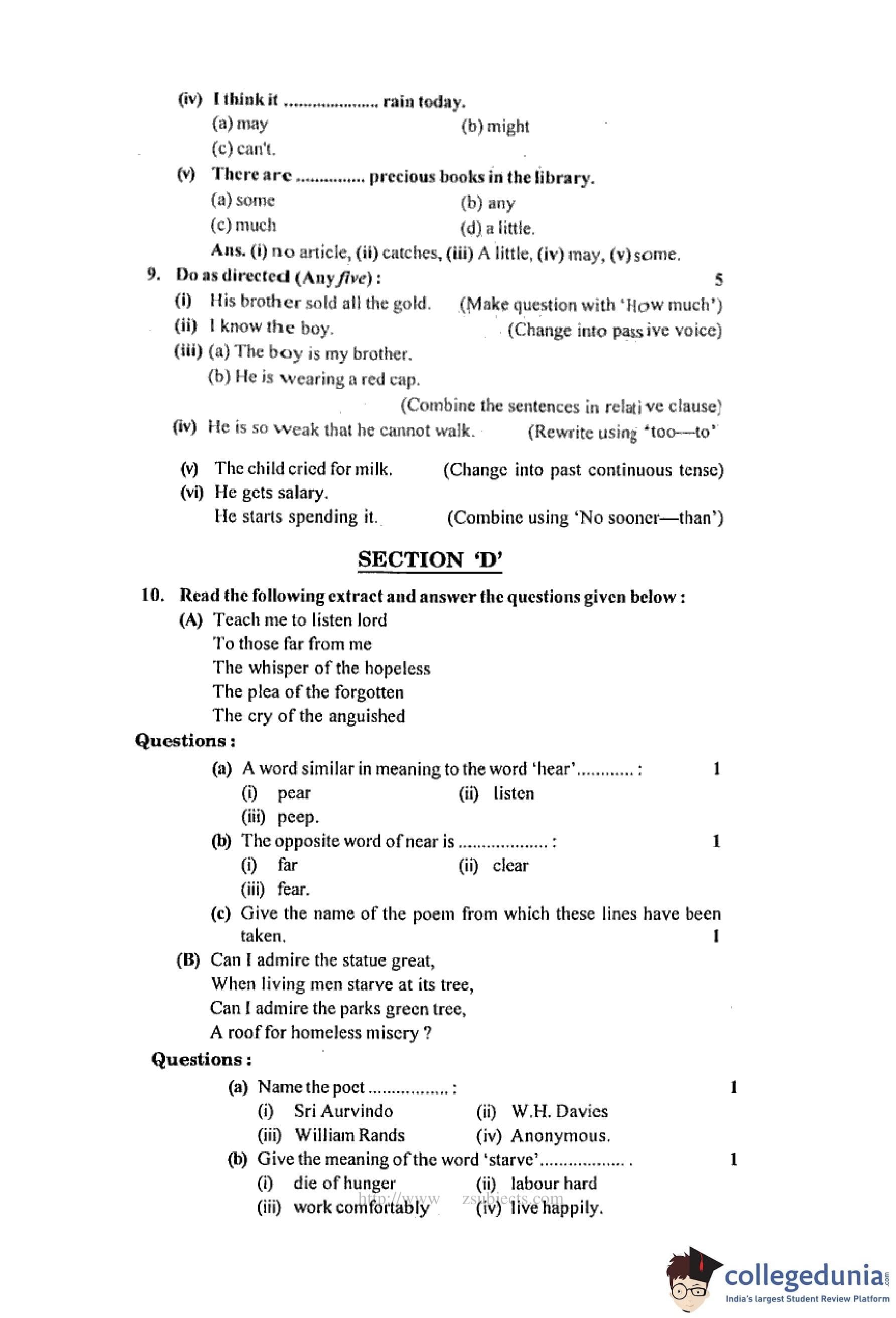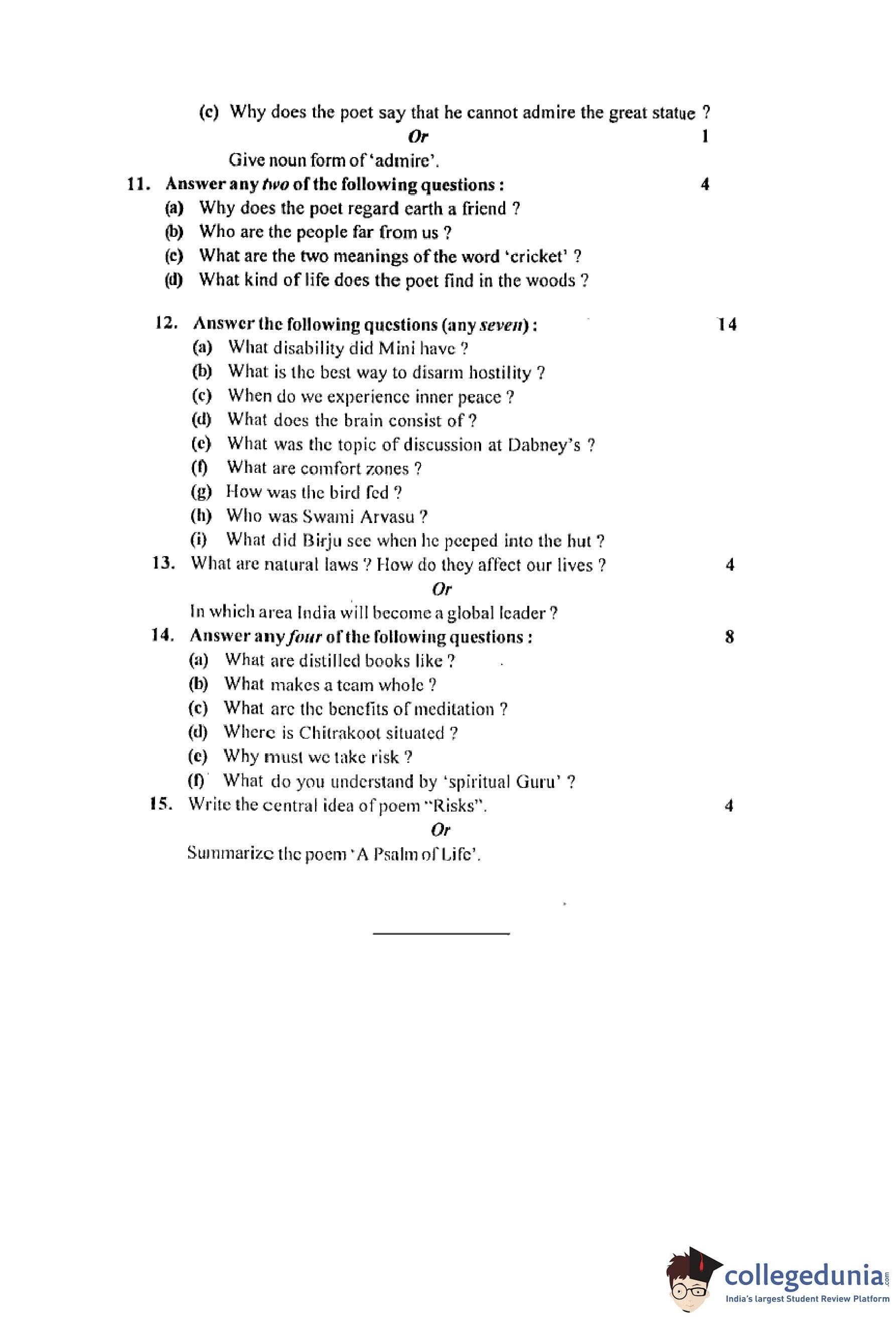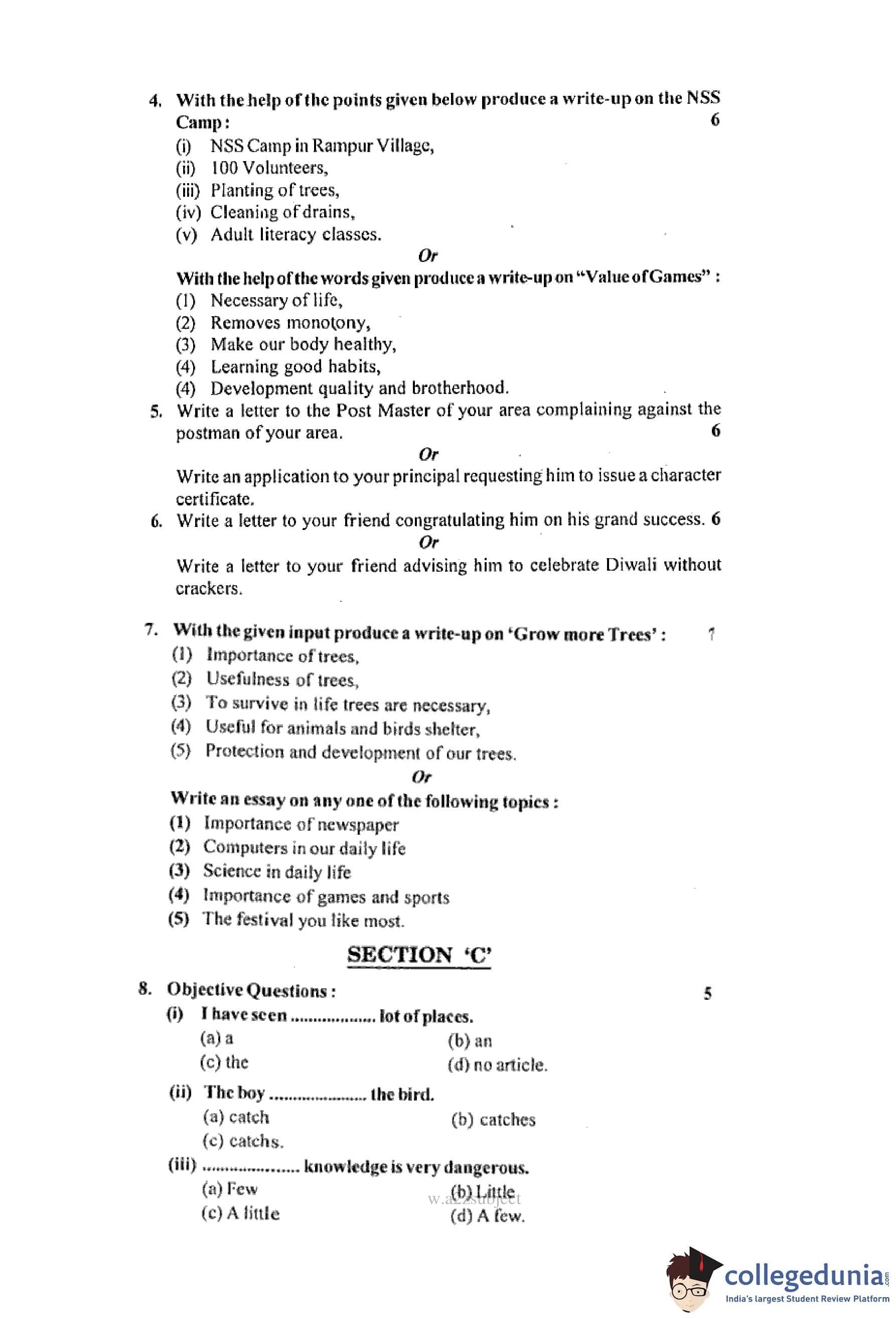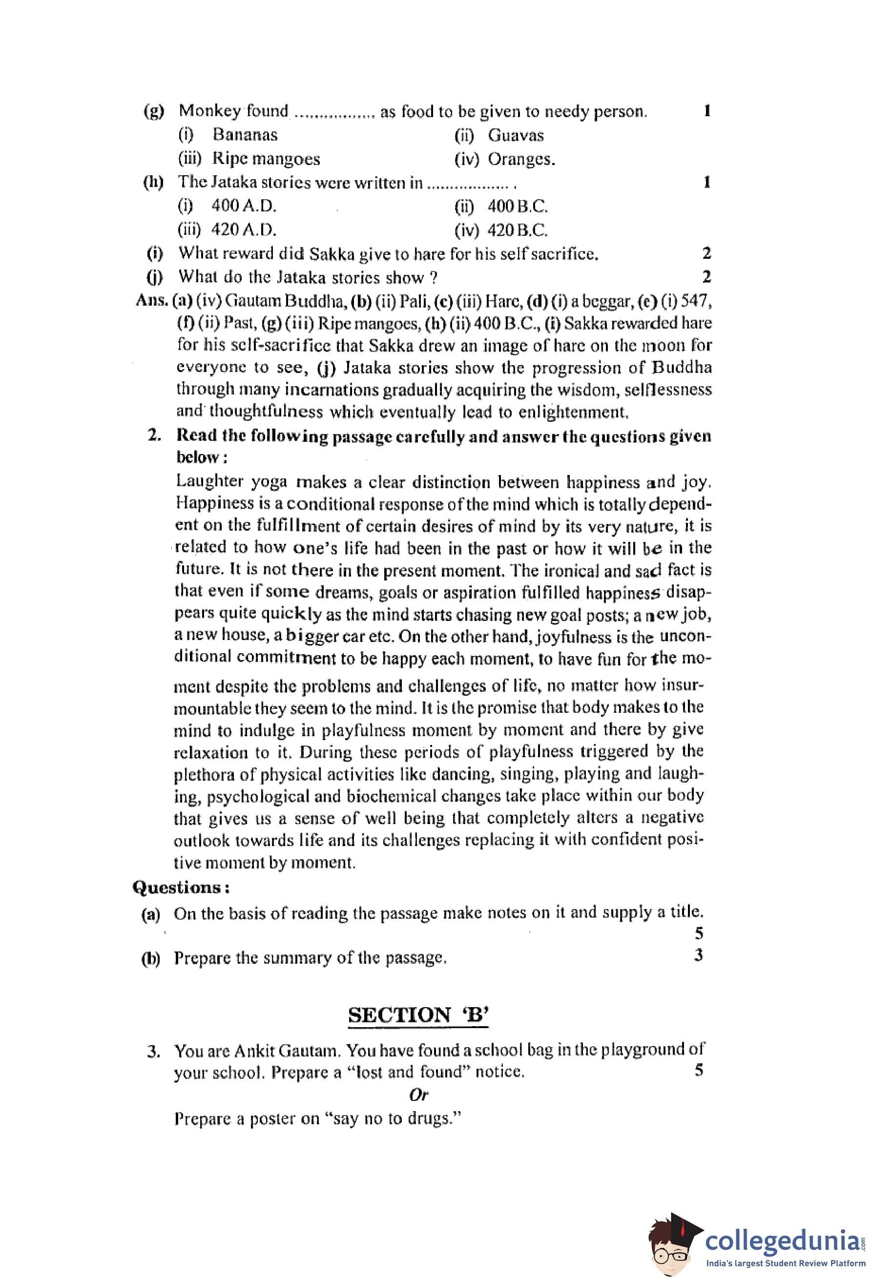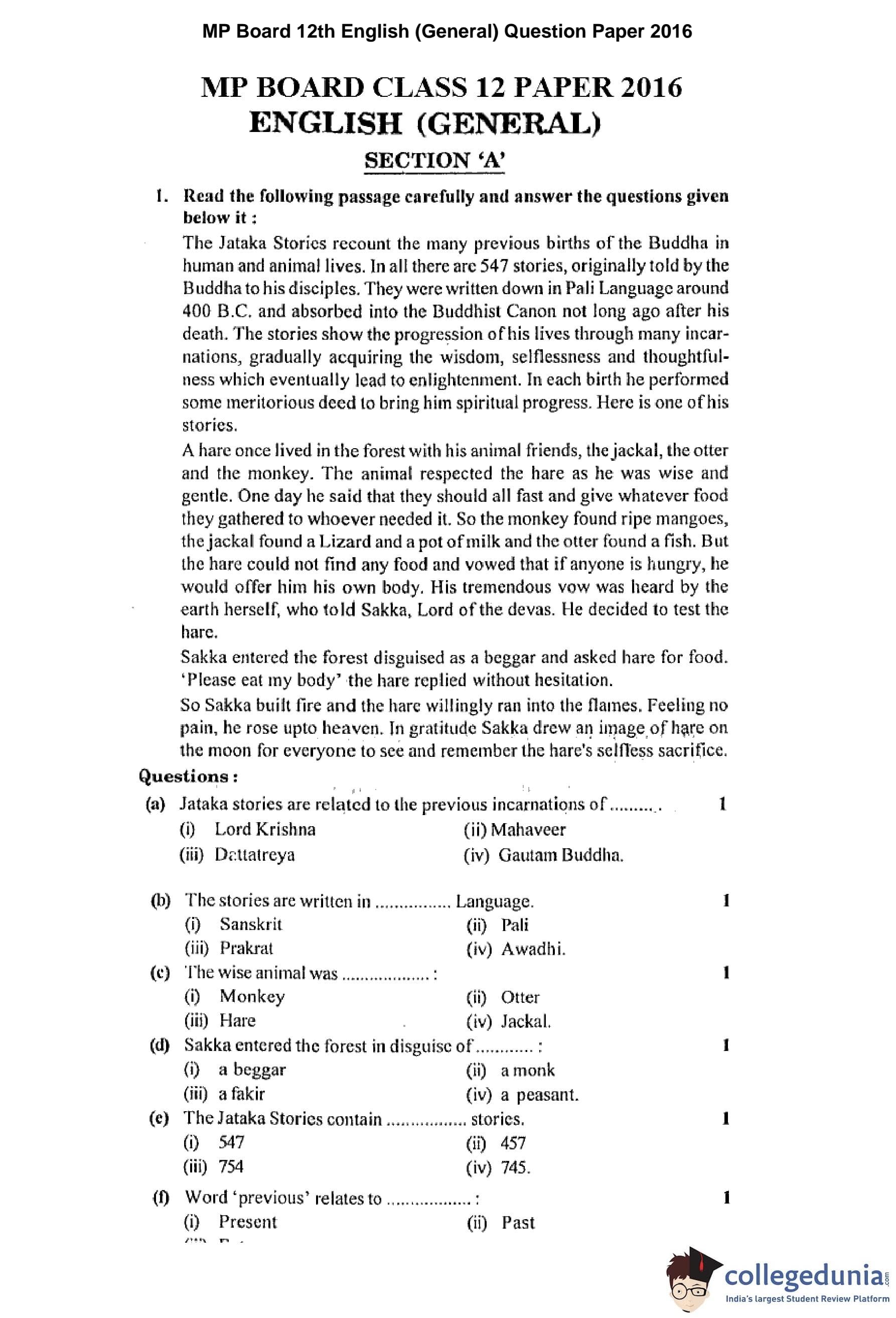 MP Board 12th English (General) Question Paper 2016 with Answer Key