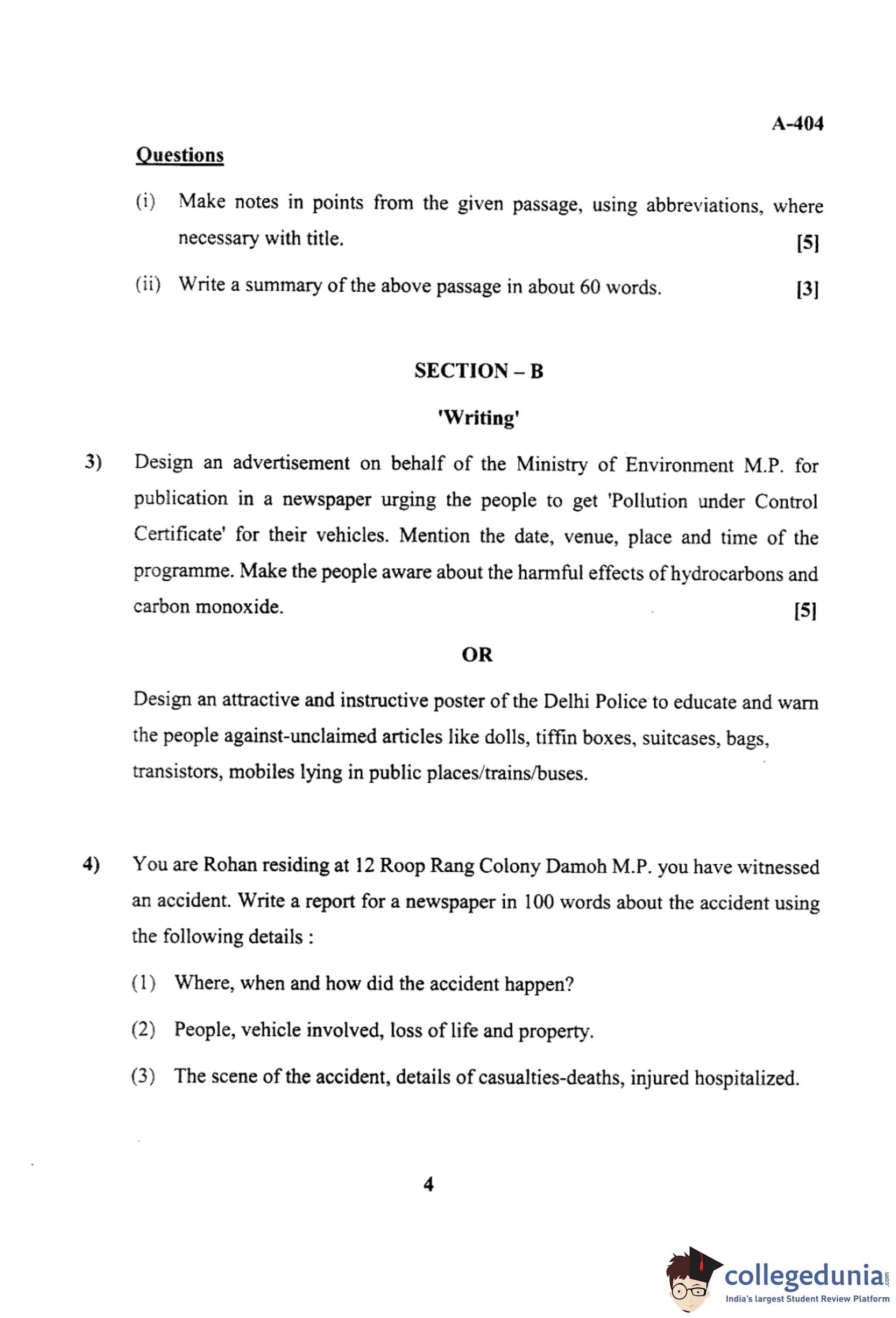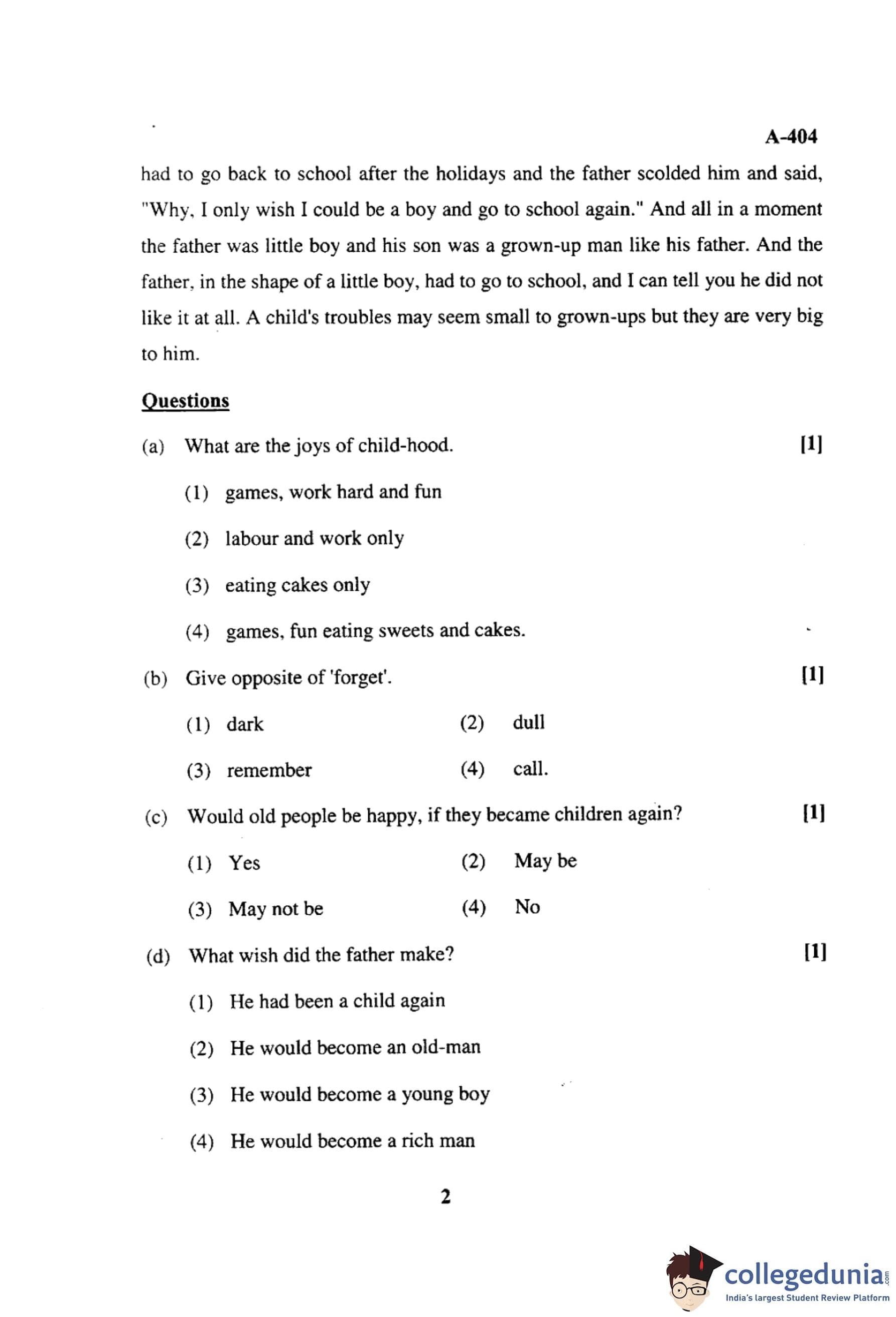MP Board 12th English General (Second Language) Question Paper 2017 with Answer Key