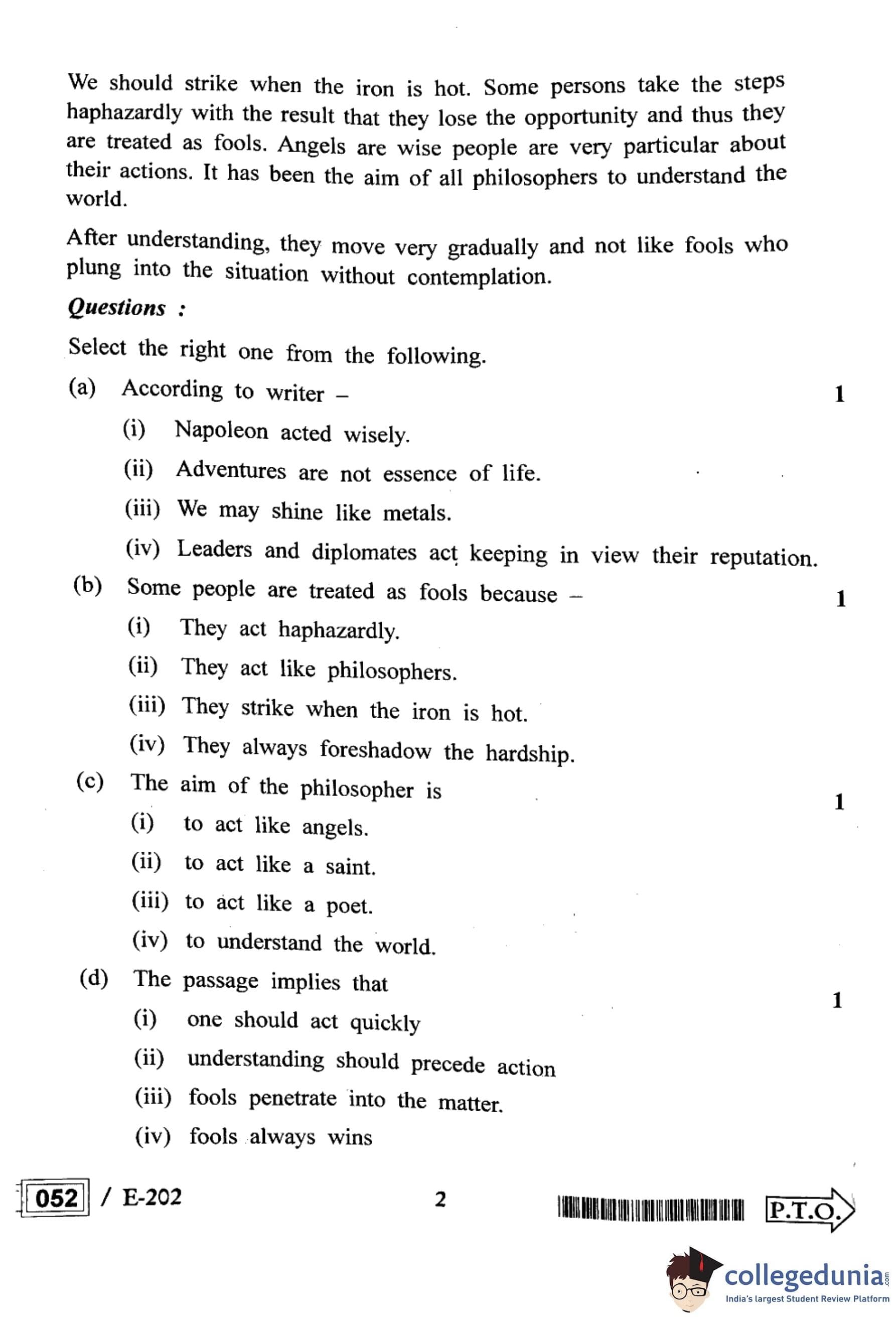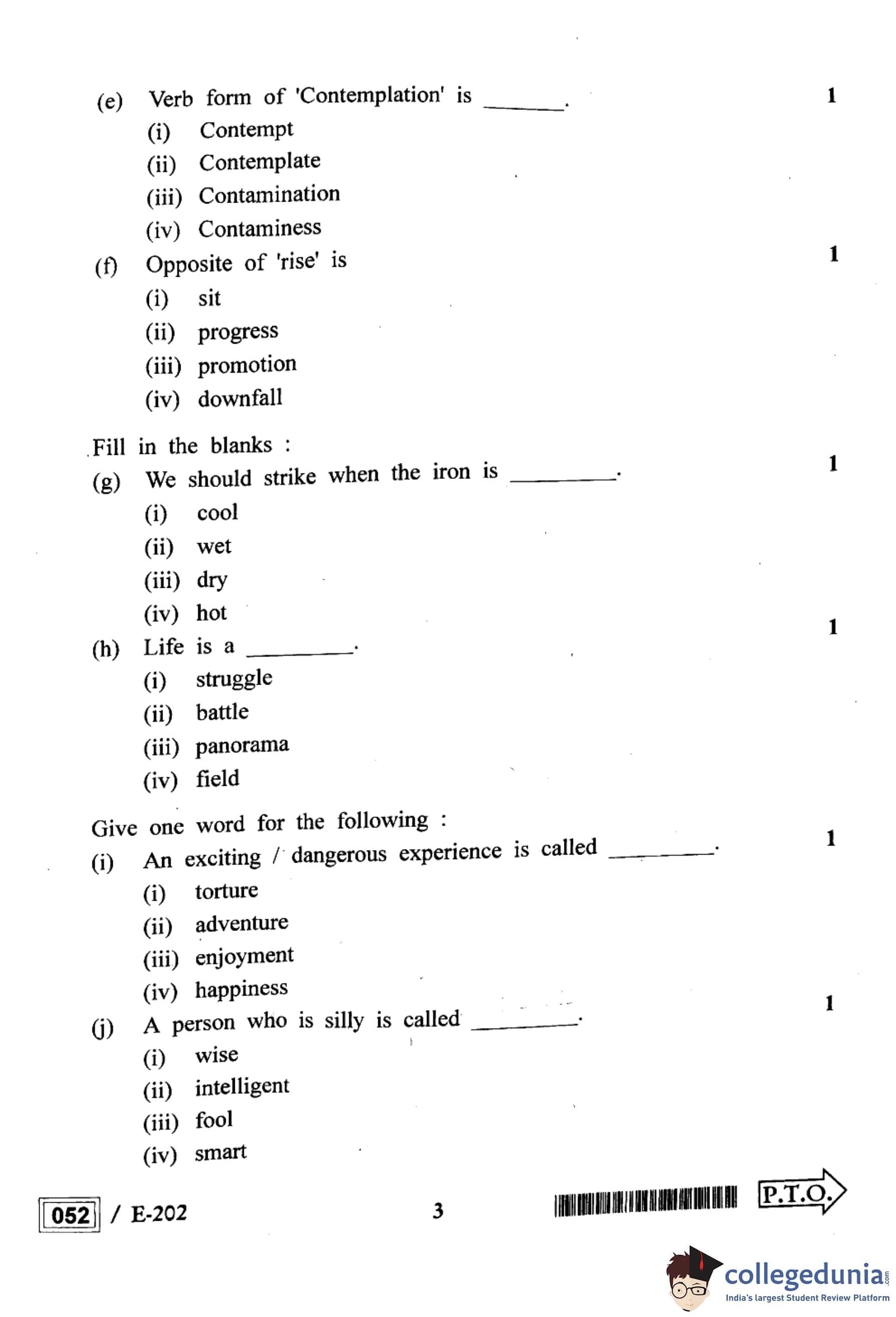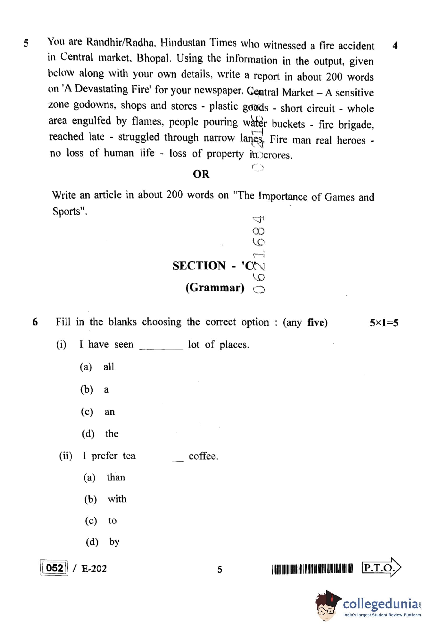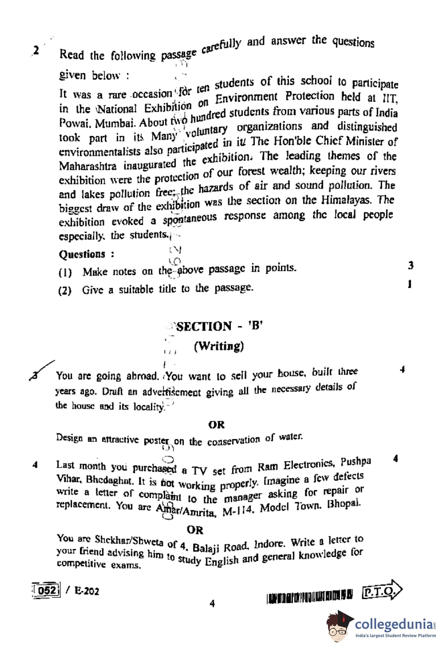 MP Board 12th English Question Paper 2022 with Answer Key