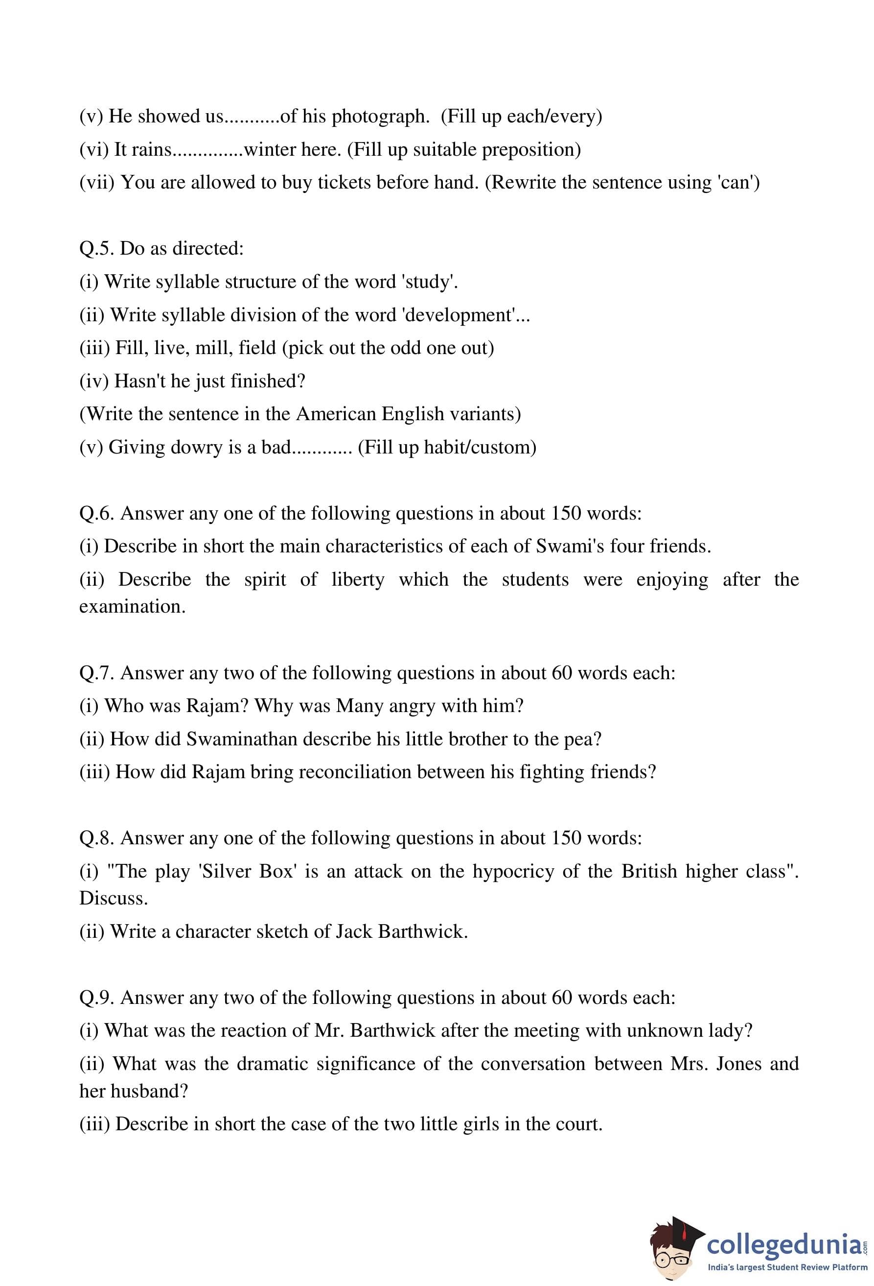 MP Board 12th English Special Question Paper 2012 with Answer Key pdf is available for download here. The exam was conducted by Madhya Pradesh Board of Secondary Education, MPBSE on March 2, 2012 in the Morning Session 8.30 AM to 11.30 AM. The question paper comprised a total of 13 questions.