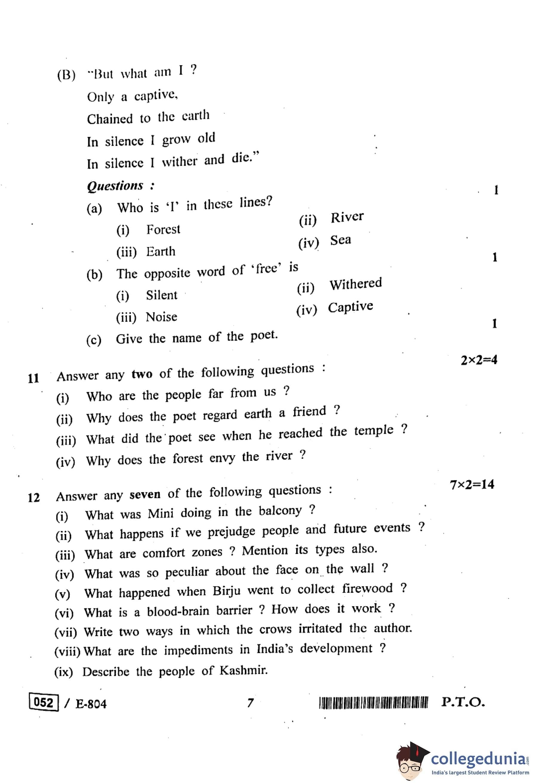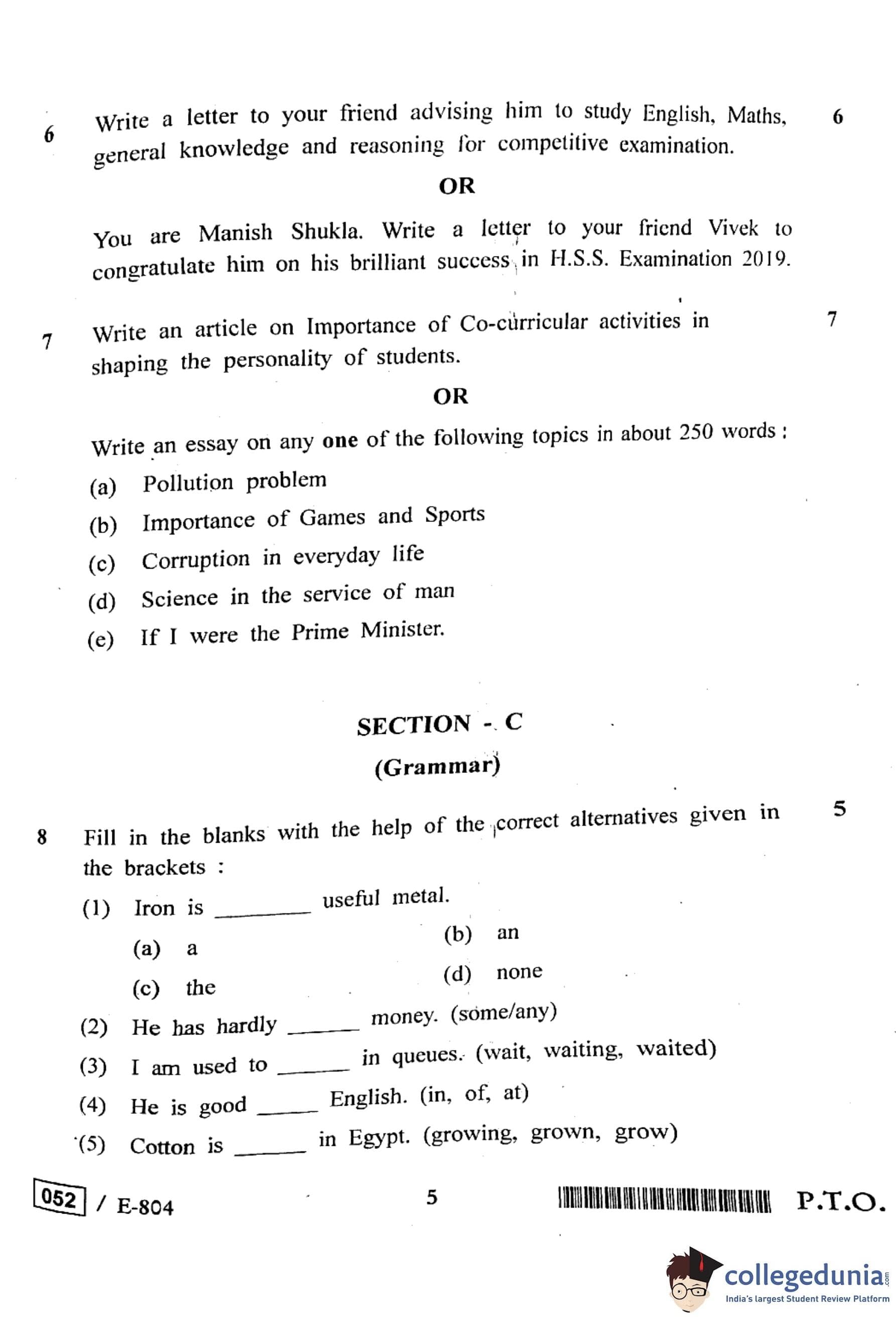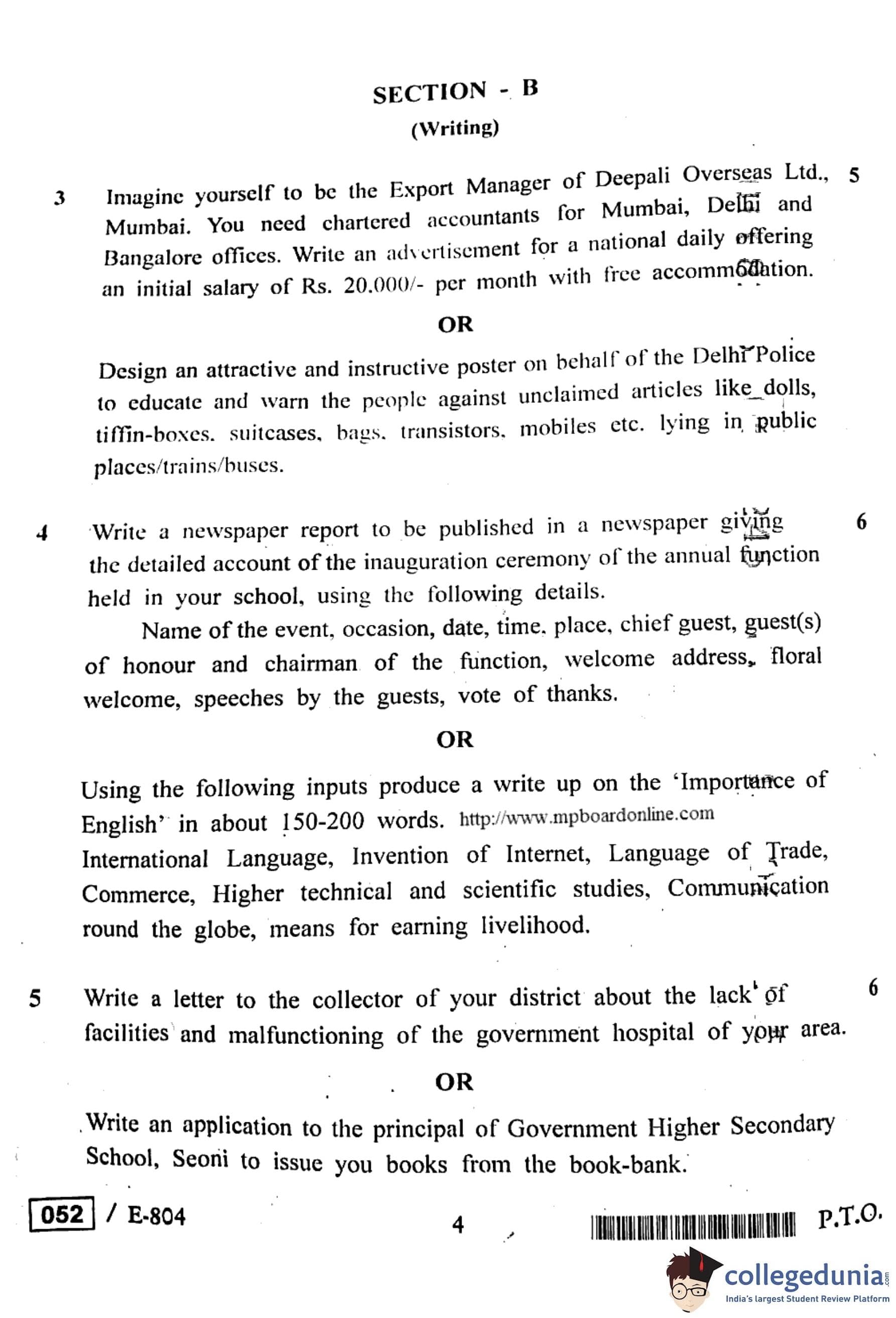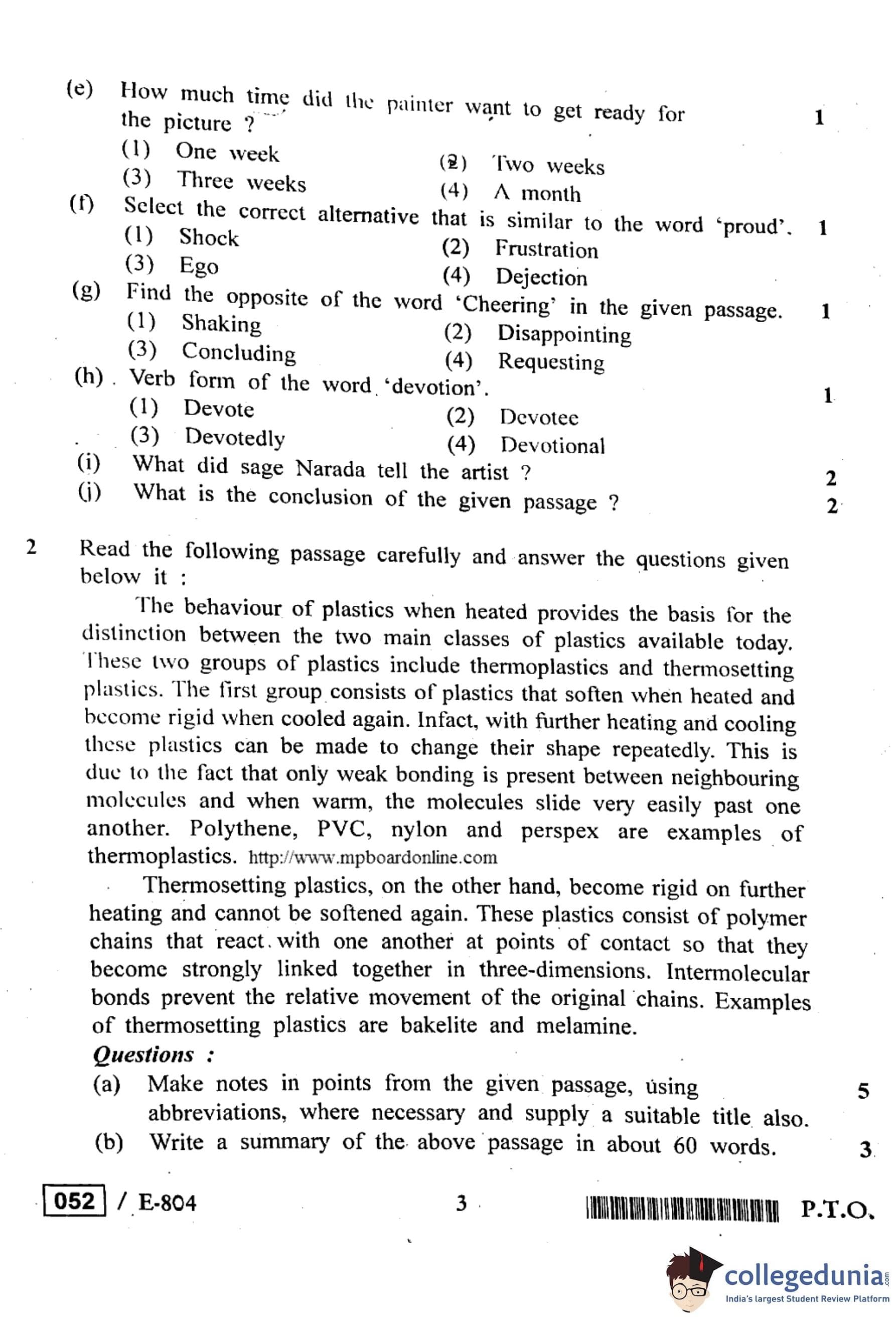 MP Board 12th General English Question Paper 2020 with Answer Key