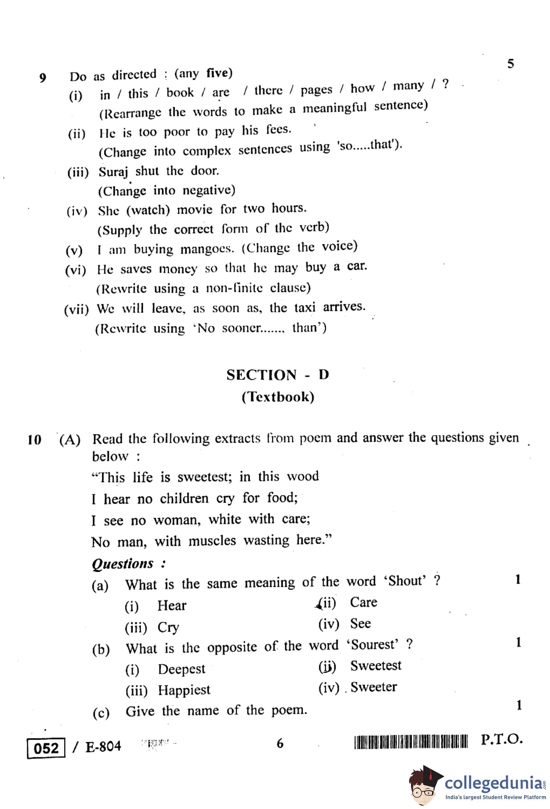 MP Board 12th General English Question Paper 2020 with Answer Key pdf is available for download here. The exam was conducted by Madhya Pradesh Board of Secondary Education, MPBSE on March 9, 2020 in the Morning Session 8 AM to 11 AM. The question paper comprised a total of 15 questions divided among 4 sections.