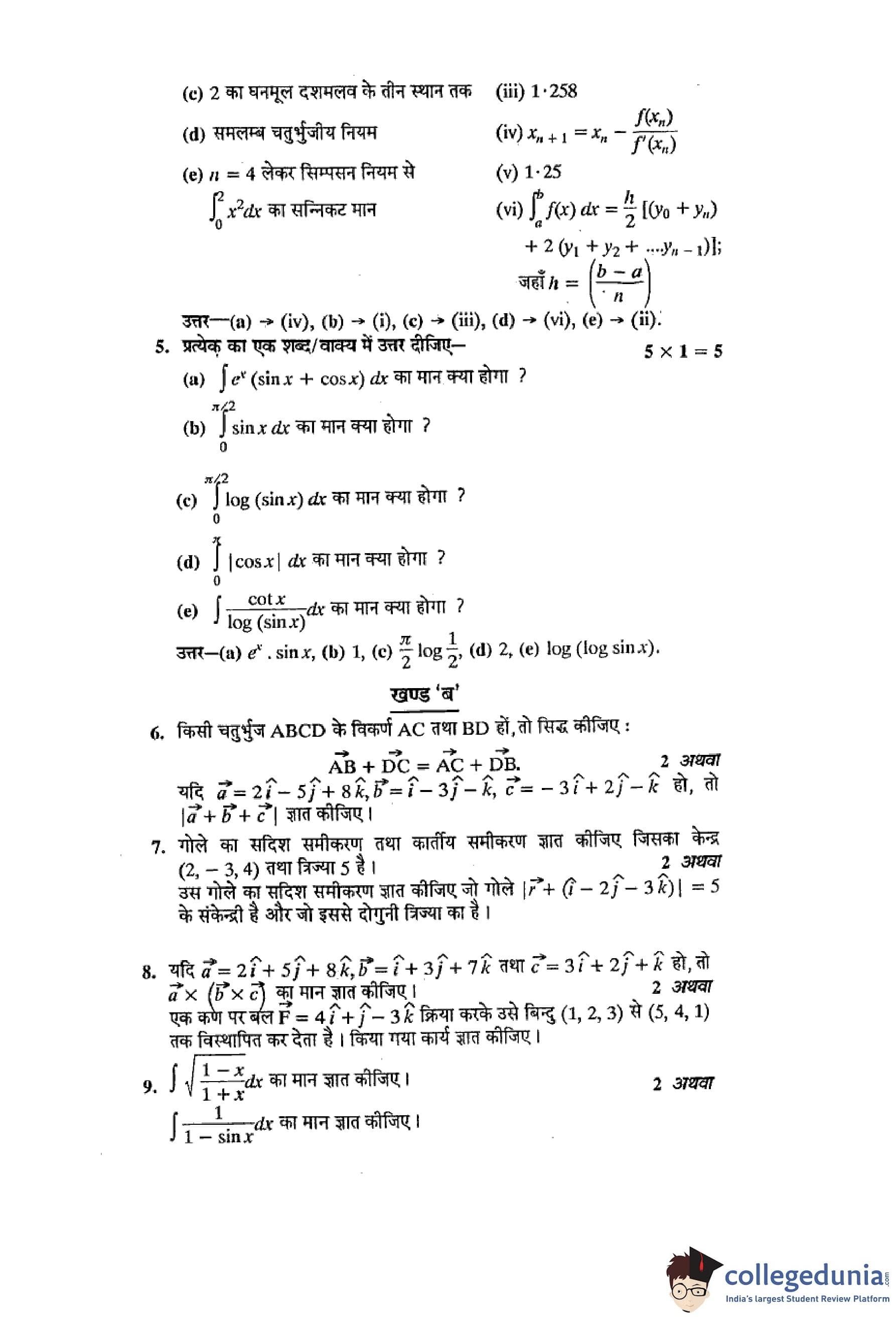 MP Board 12th Higher Mathematics Hindi Question Paper 2014 with Answer Key