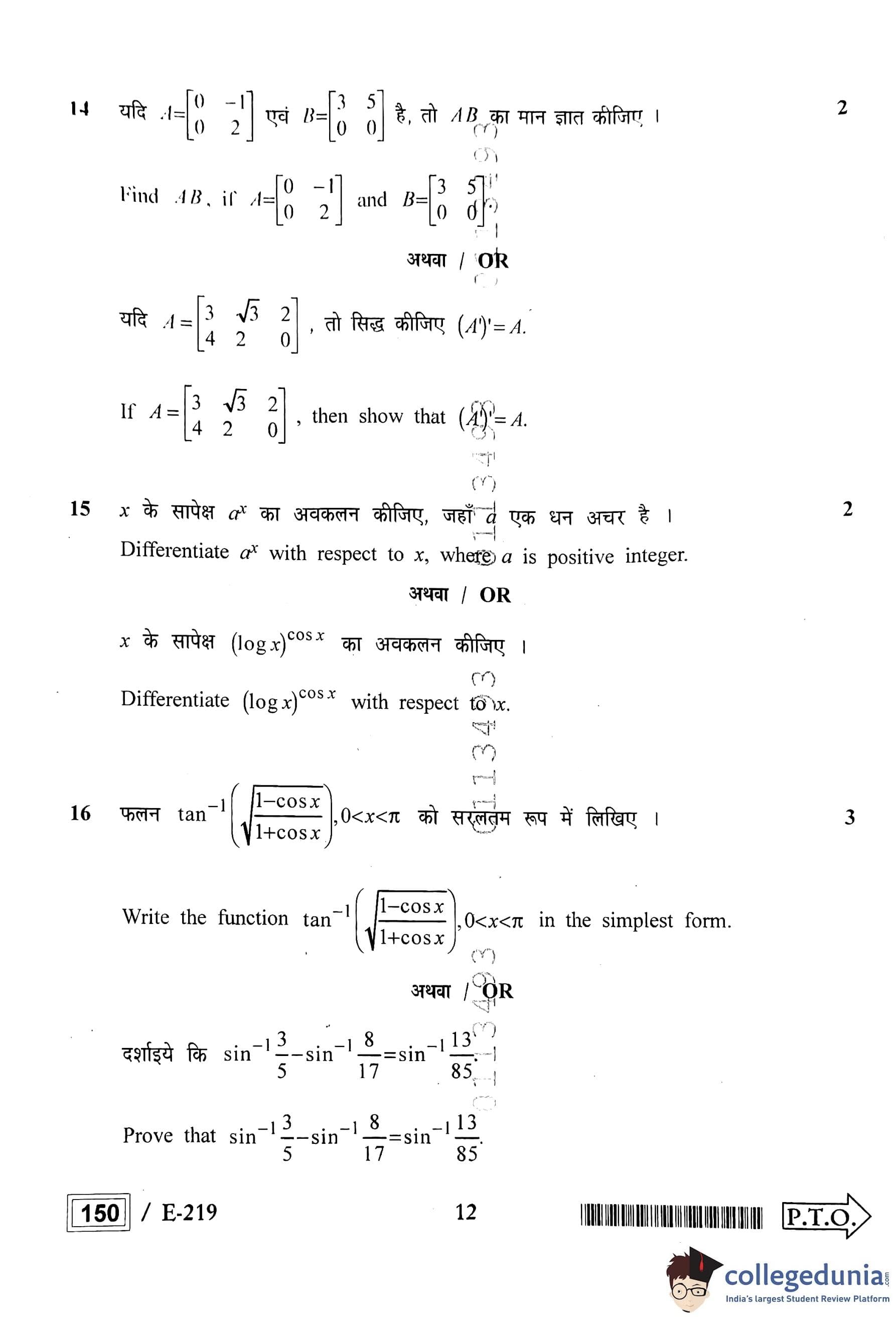 MP Board 12th Higher Mathematics Question Paper 2022 with Answer Key pdf is available for download here. The exam was conducted by Madhya Pradesh Board of Secondary Education, MPBSE on March 3, 2022 in the Morning Session 10 AM to 1 PM. The question paper comprised a total of 23 questions.