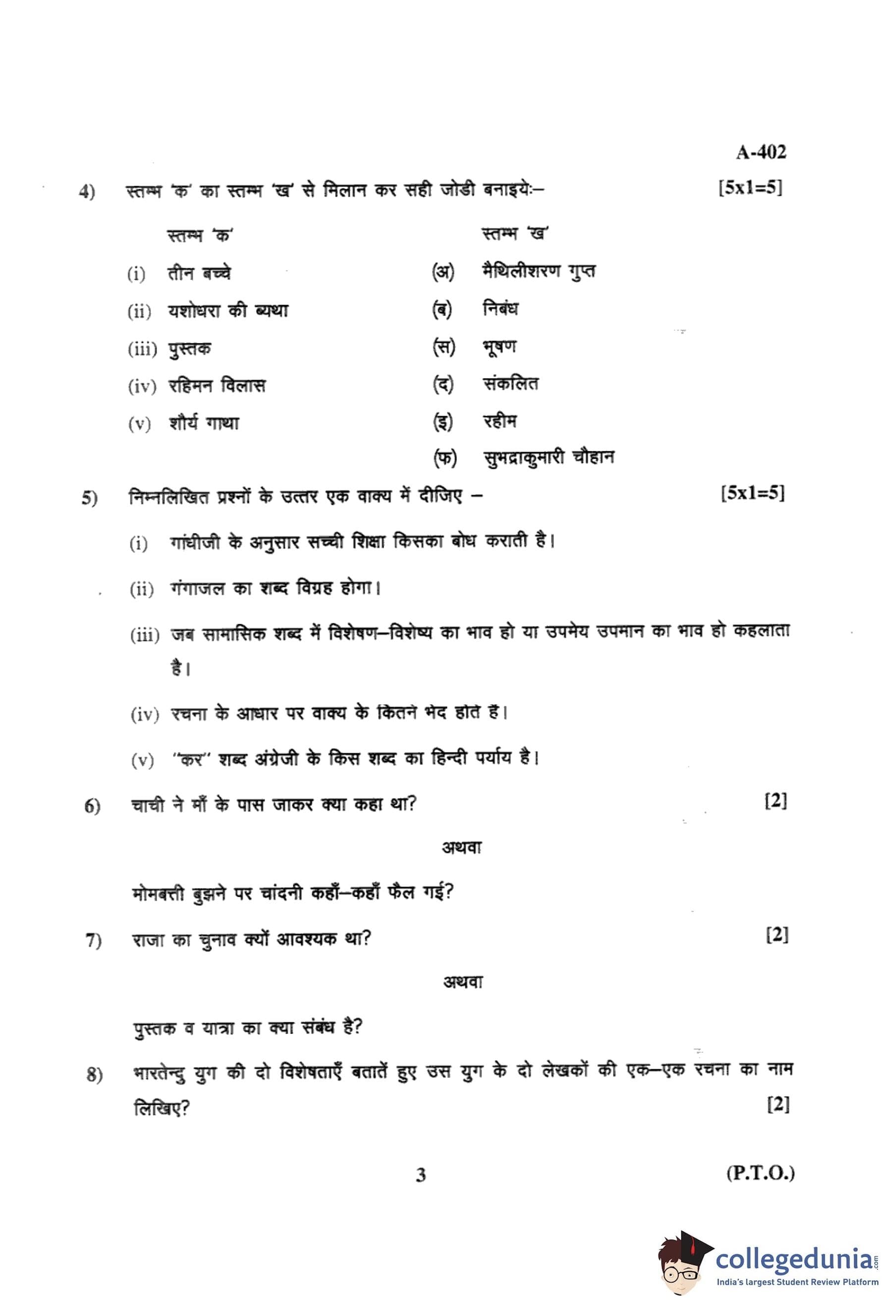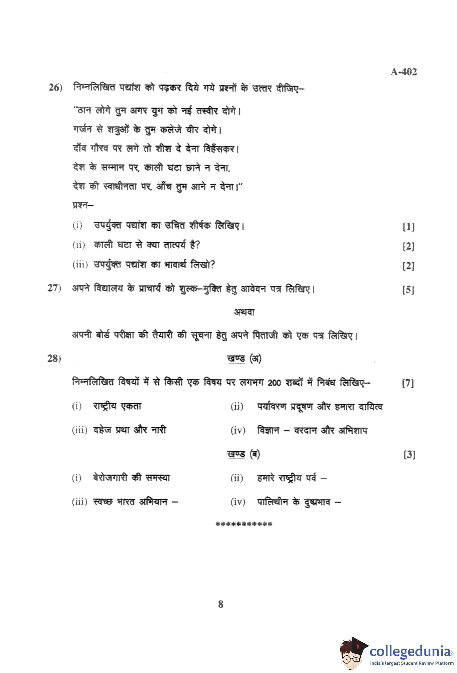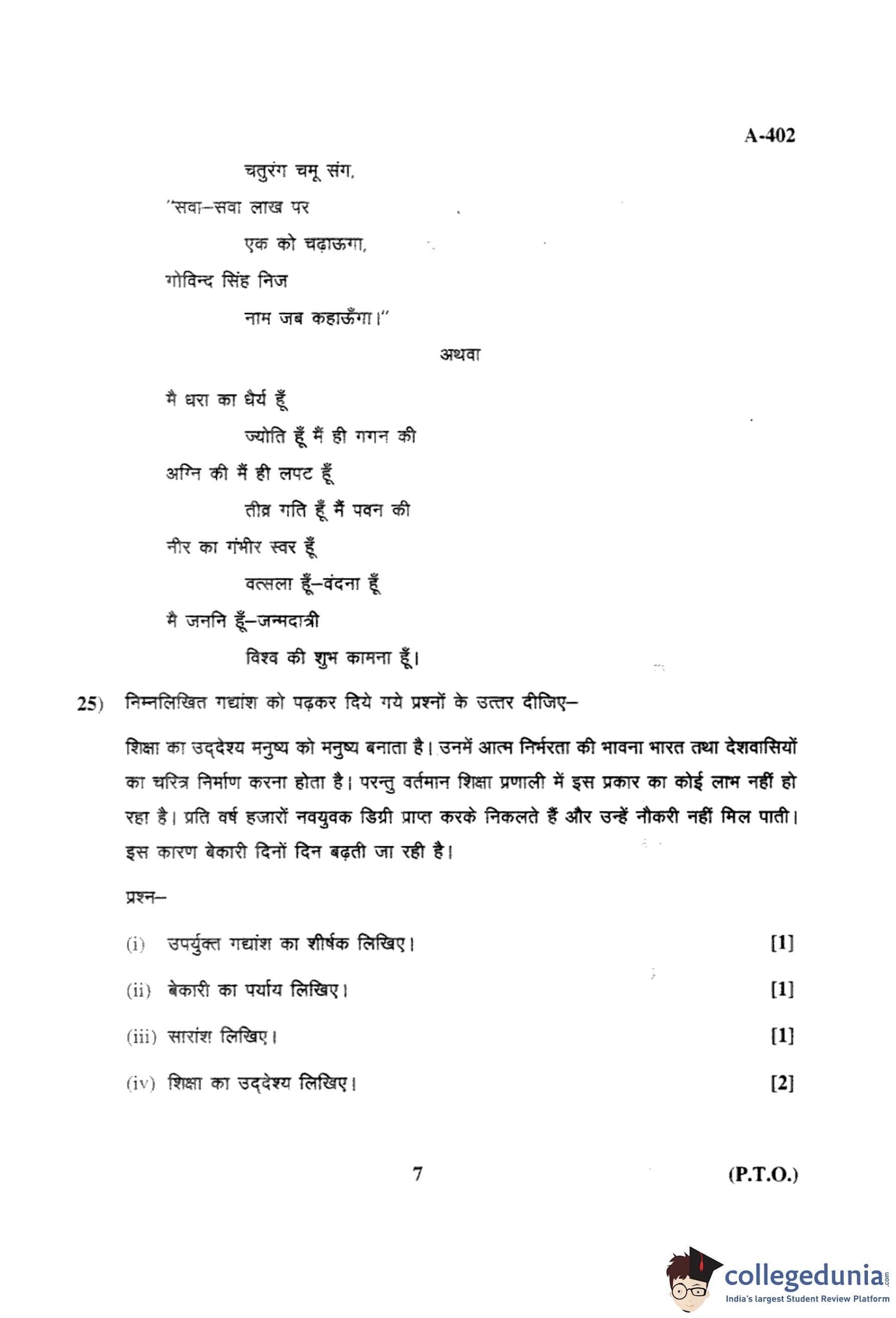 MP Board 12th Hindi (General) Question Paper 2017 with Answer Key