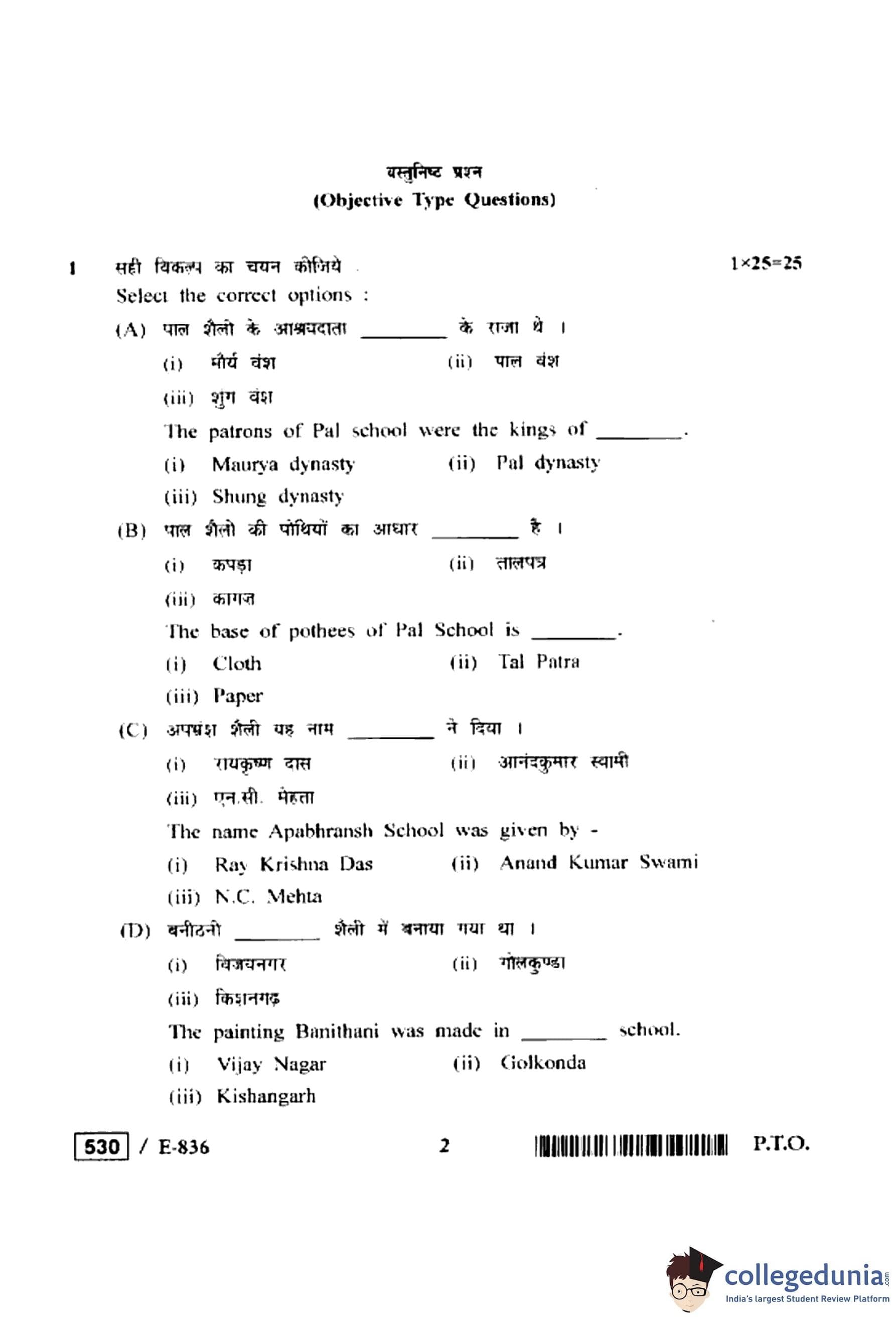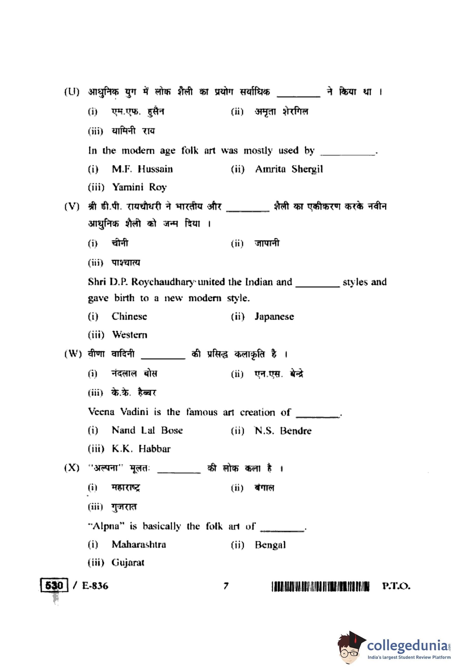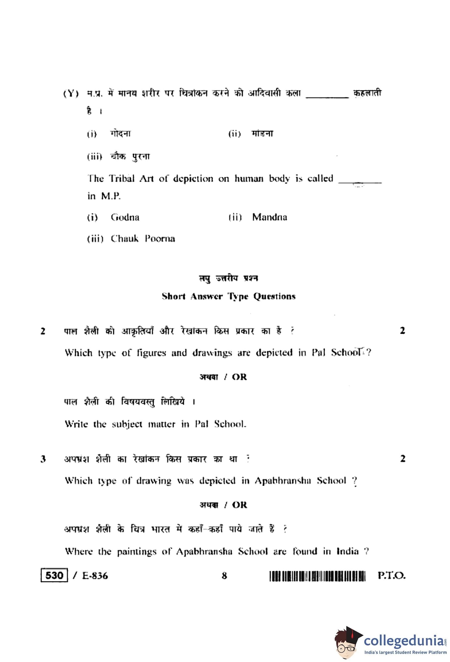 MP Board 12th History of Indian Art Question Paper 2020 with Answer Key