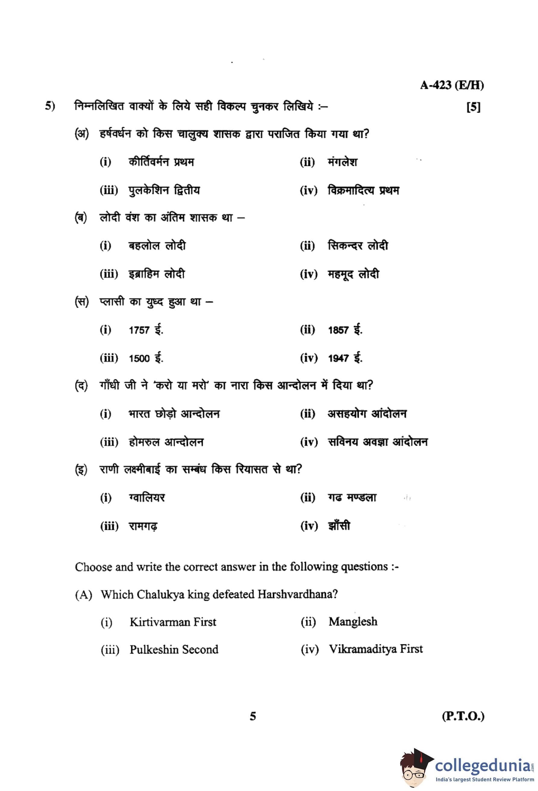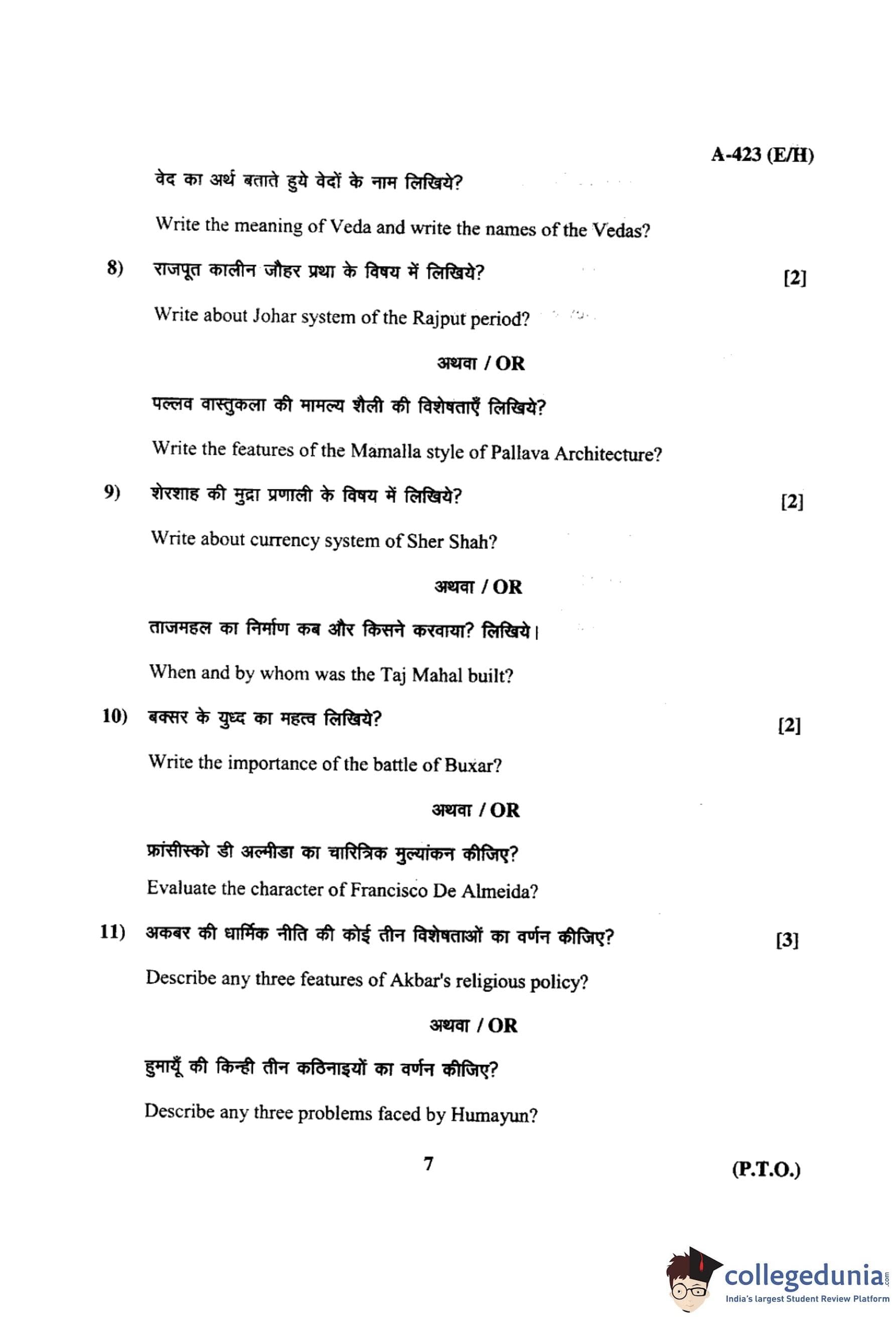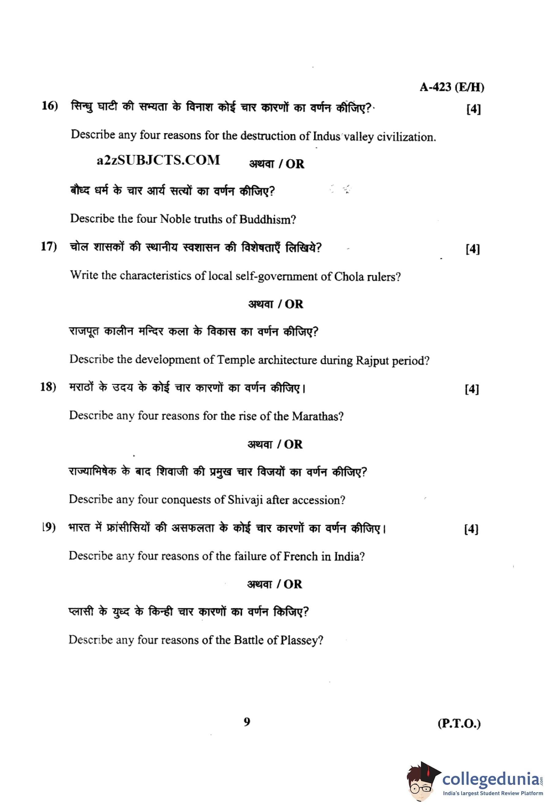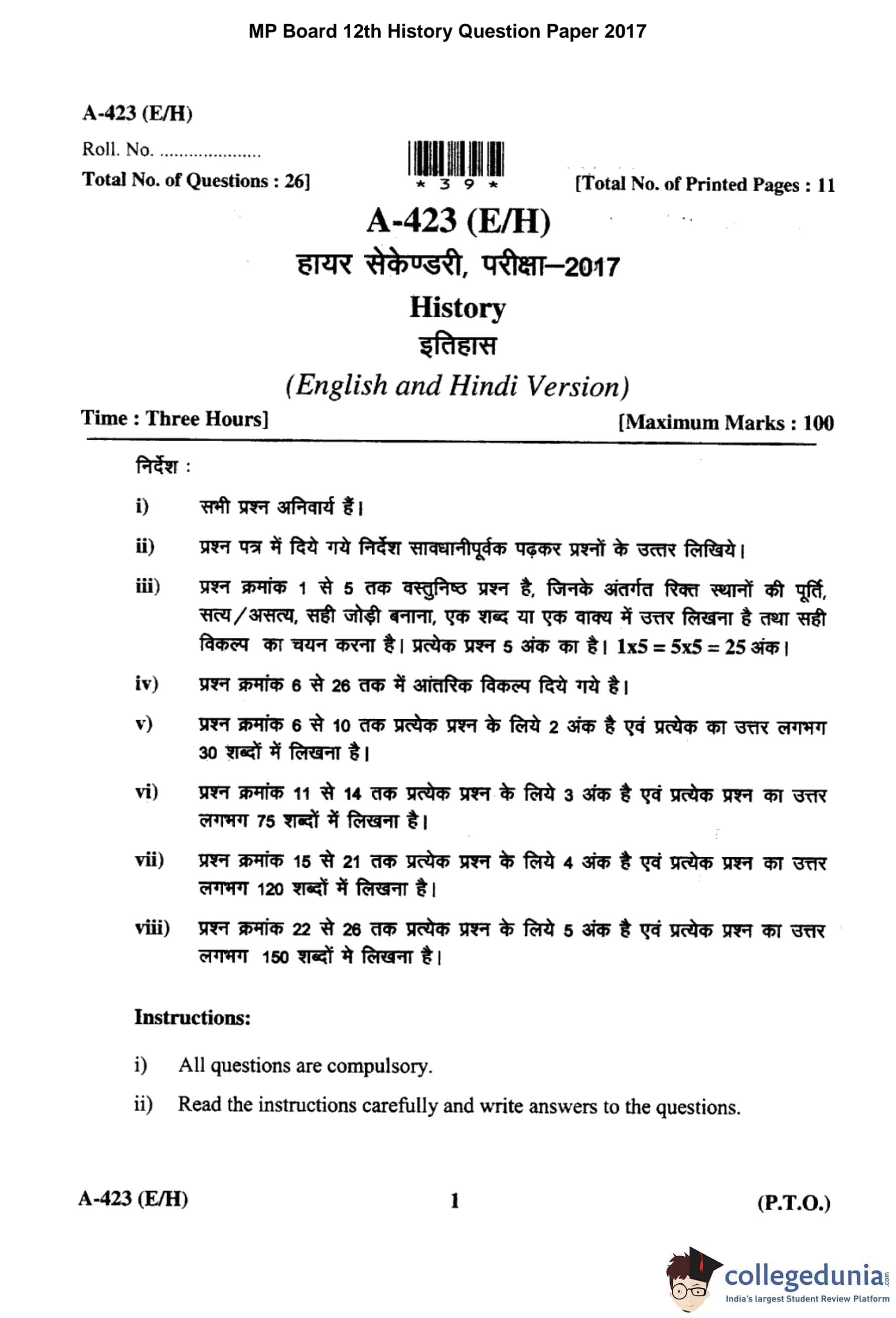 MP Board 12th History Question Paper 2017 with Answer Key pdf is available for download here. The exam was conducted by Madhya Pradesh Board of Secondary Education, MPBSE on March 11, 2017 in the Morning Session 8.30 AM to 11.30AM. The question paper comprised a total of 26 questions.