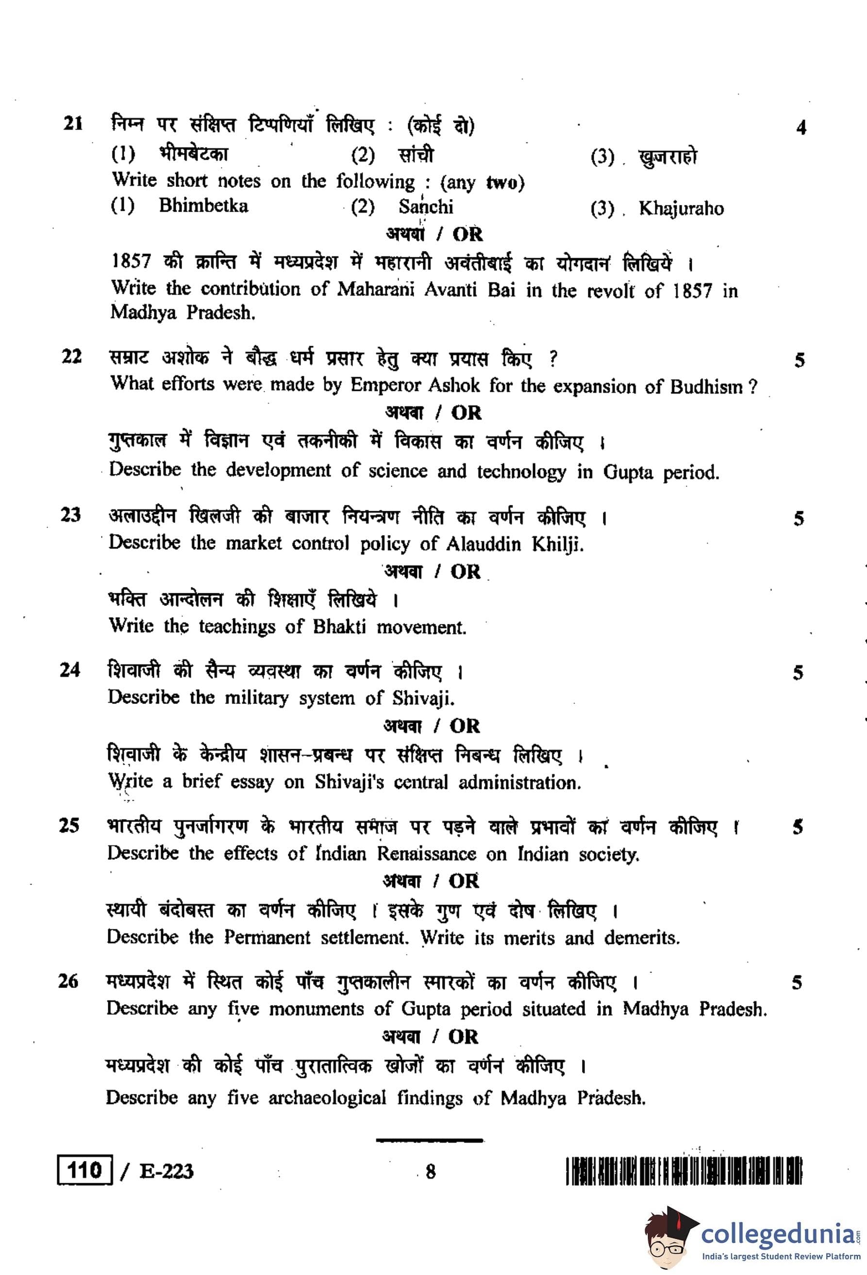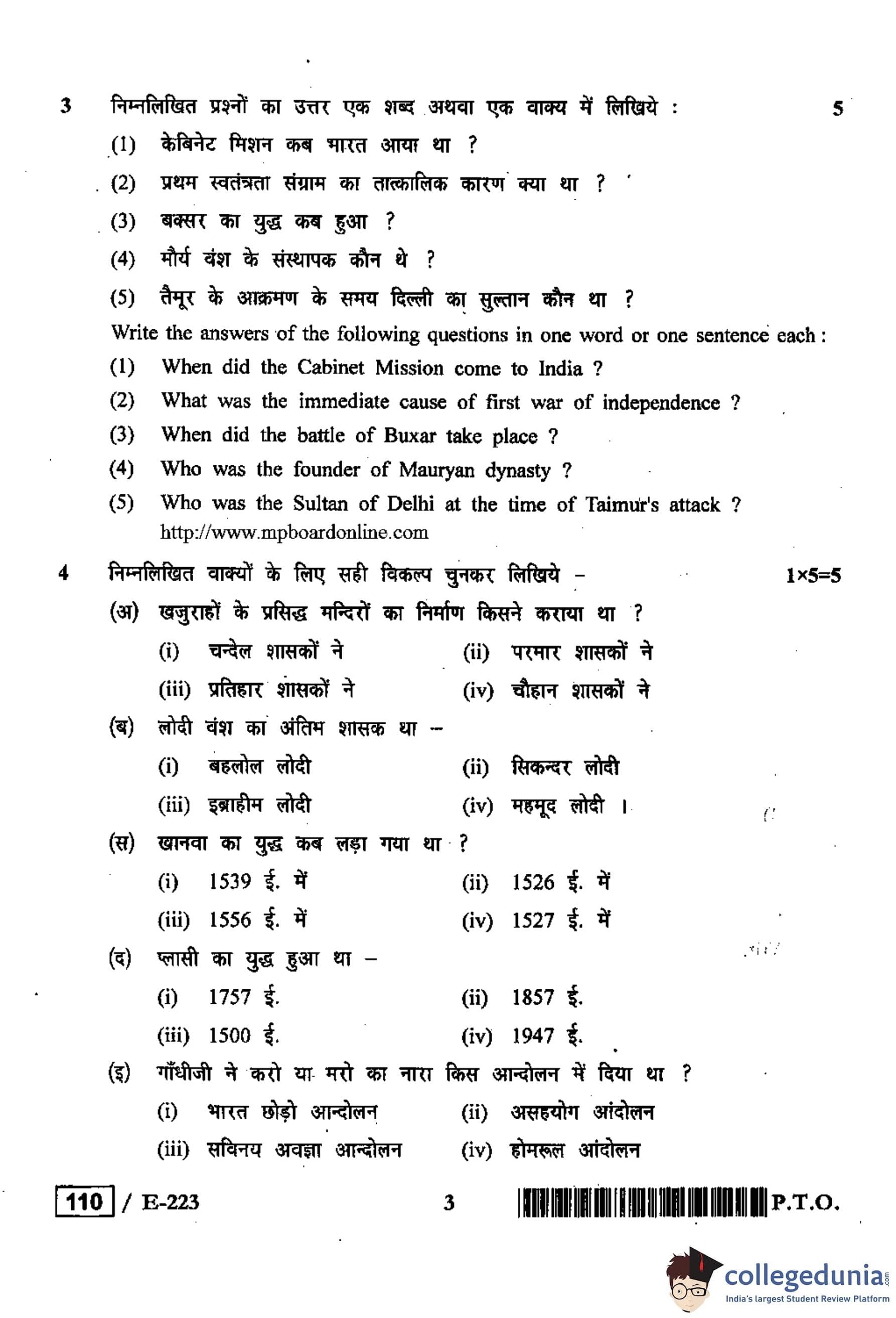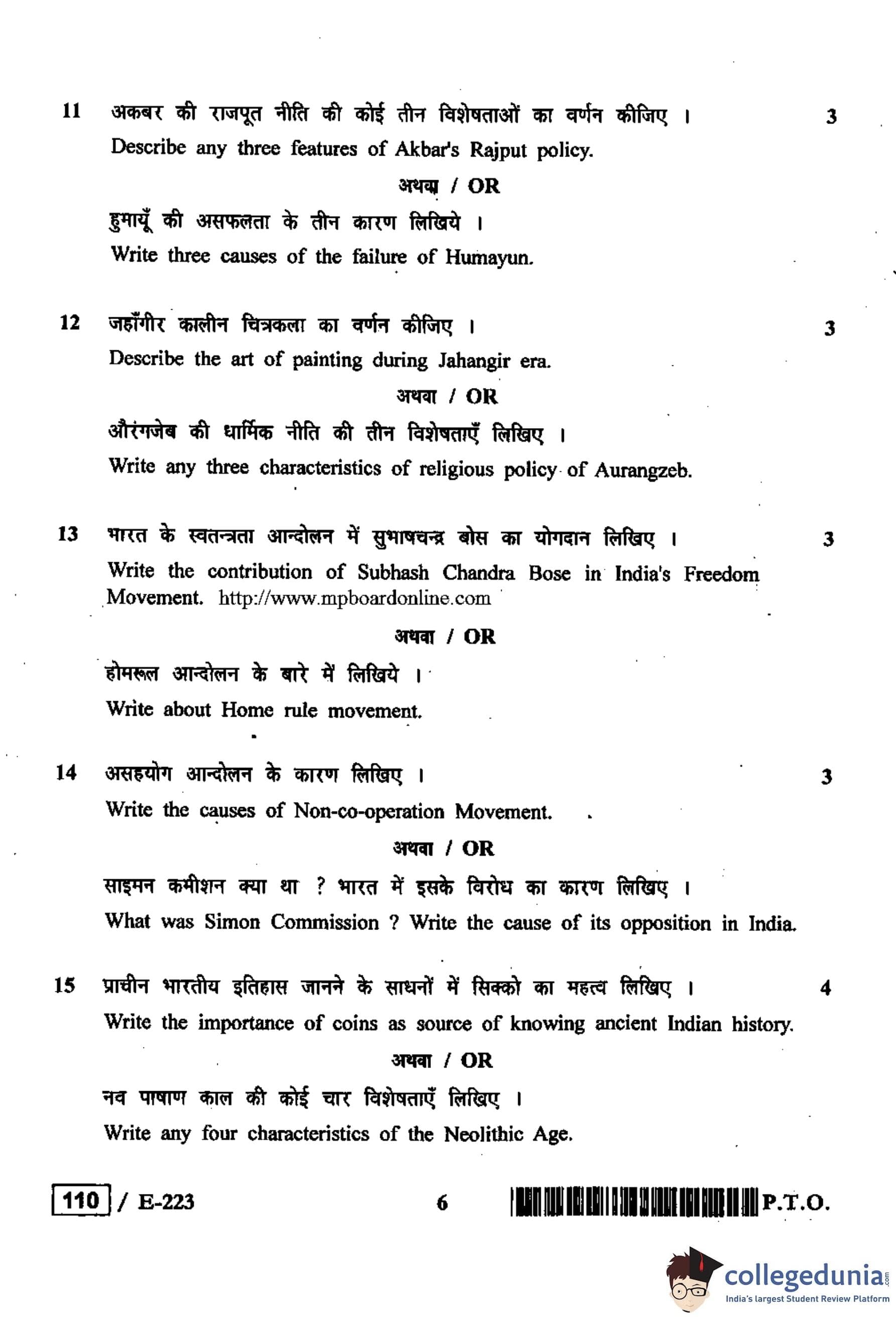 MP Board 12th History Question Paper 2019 with Answer Key