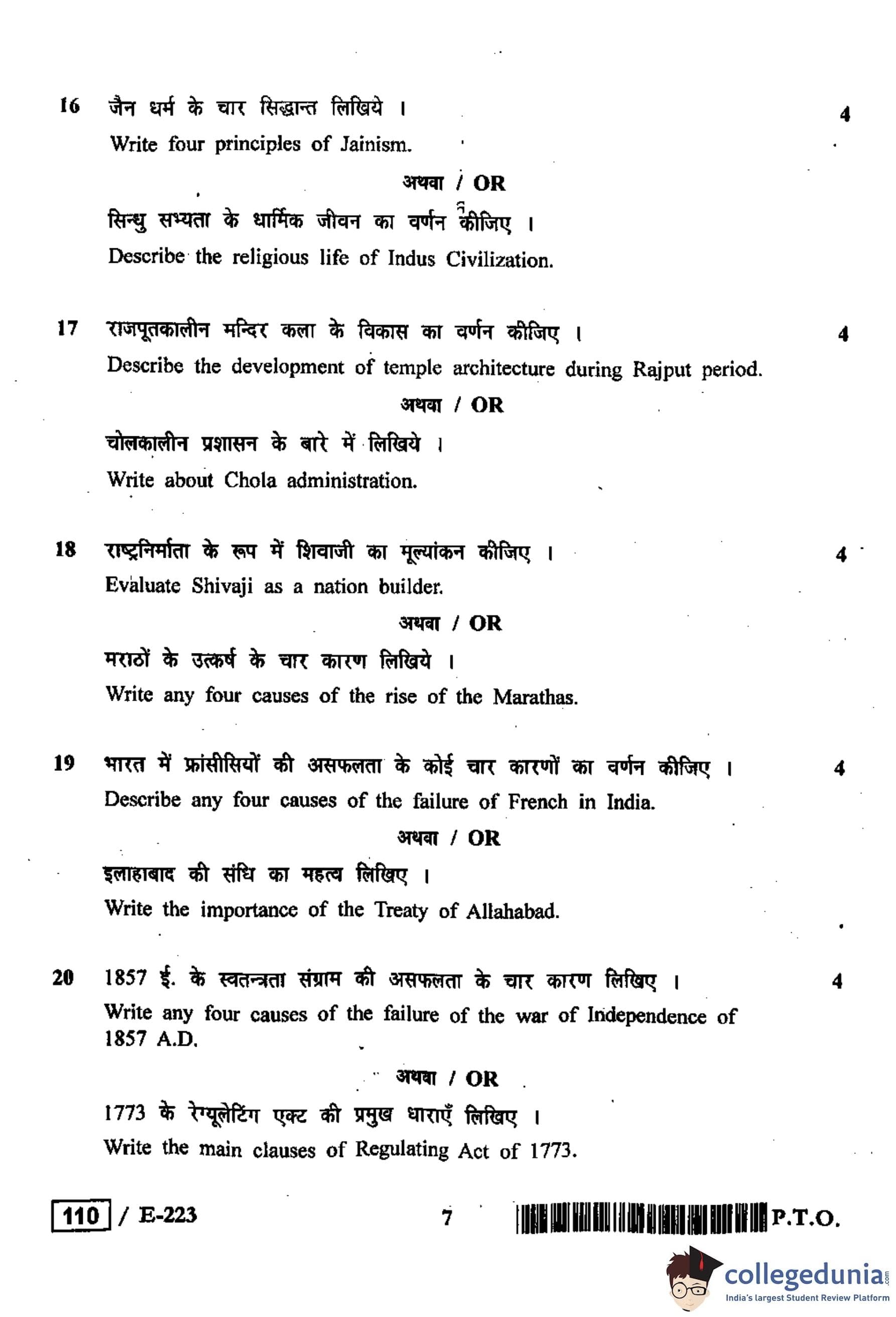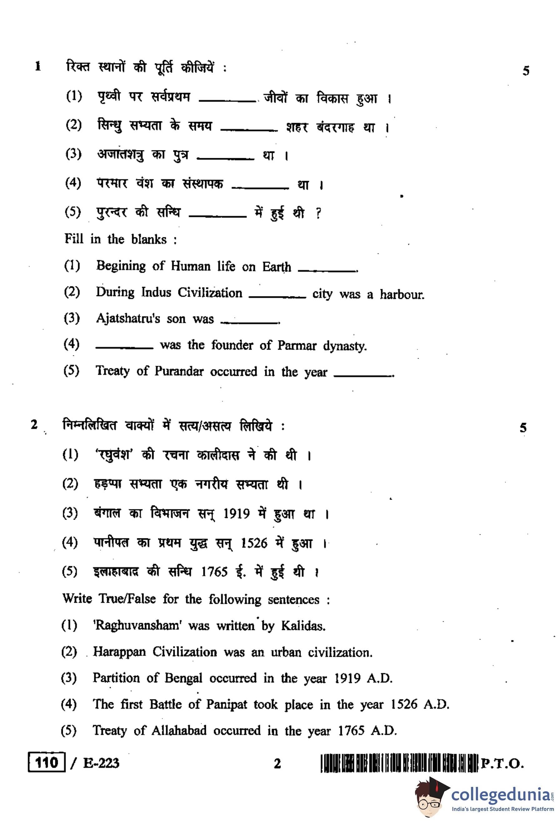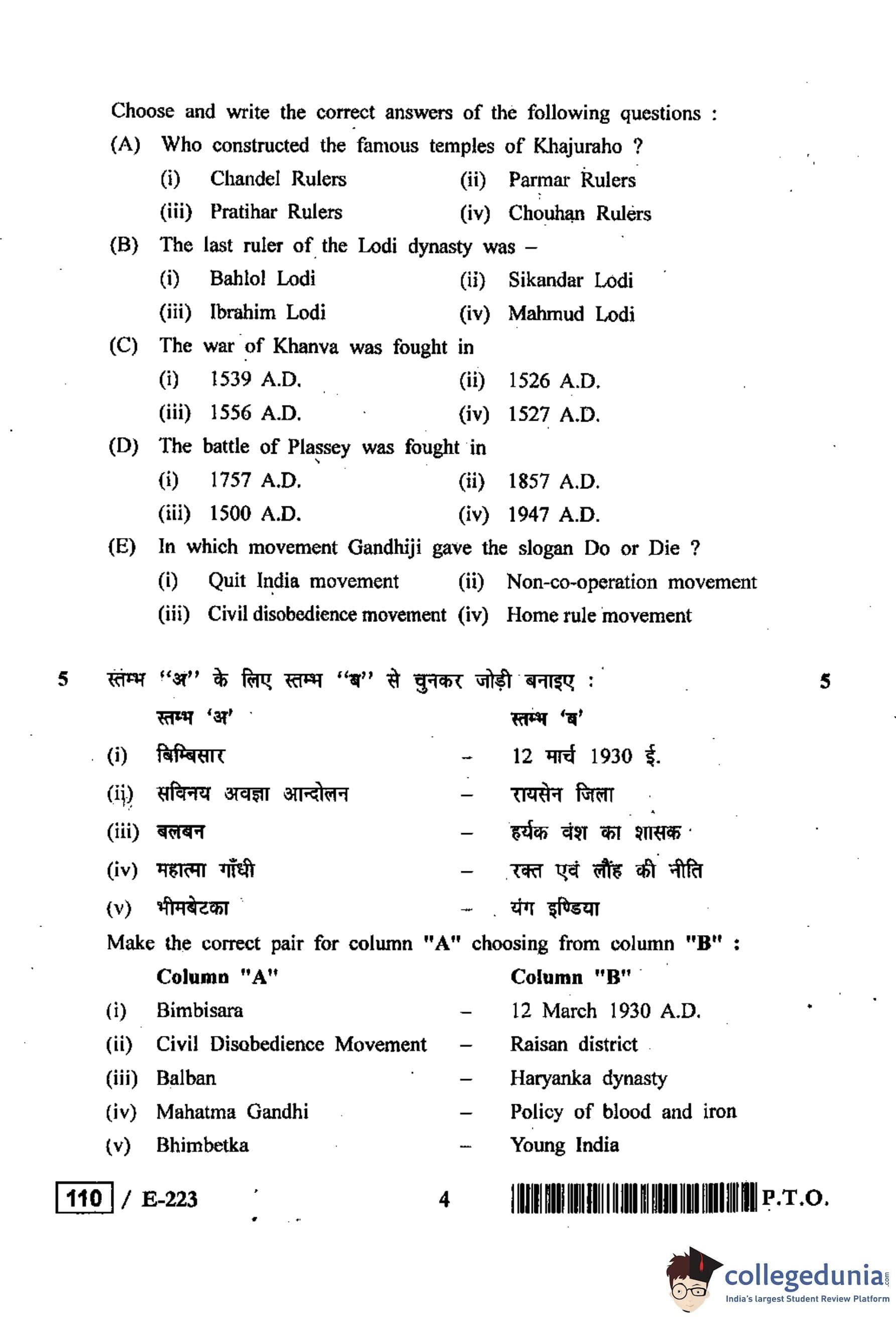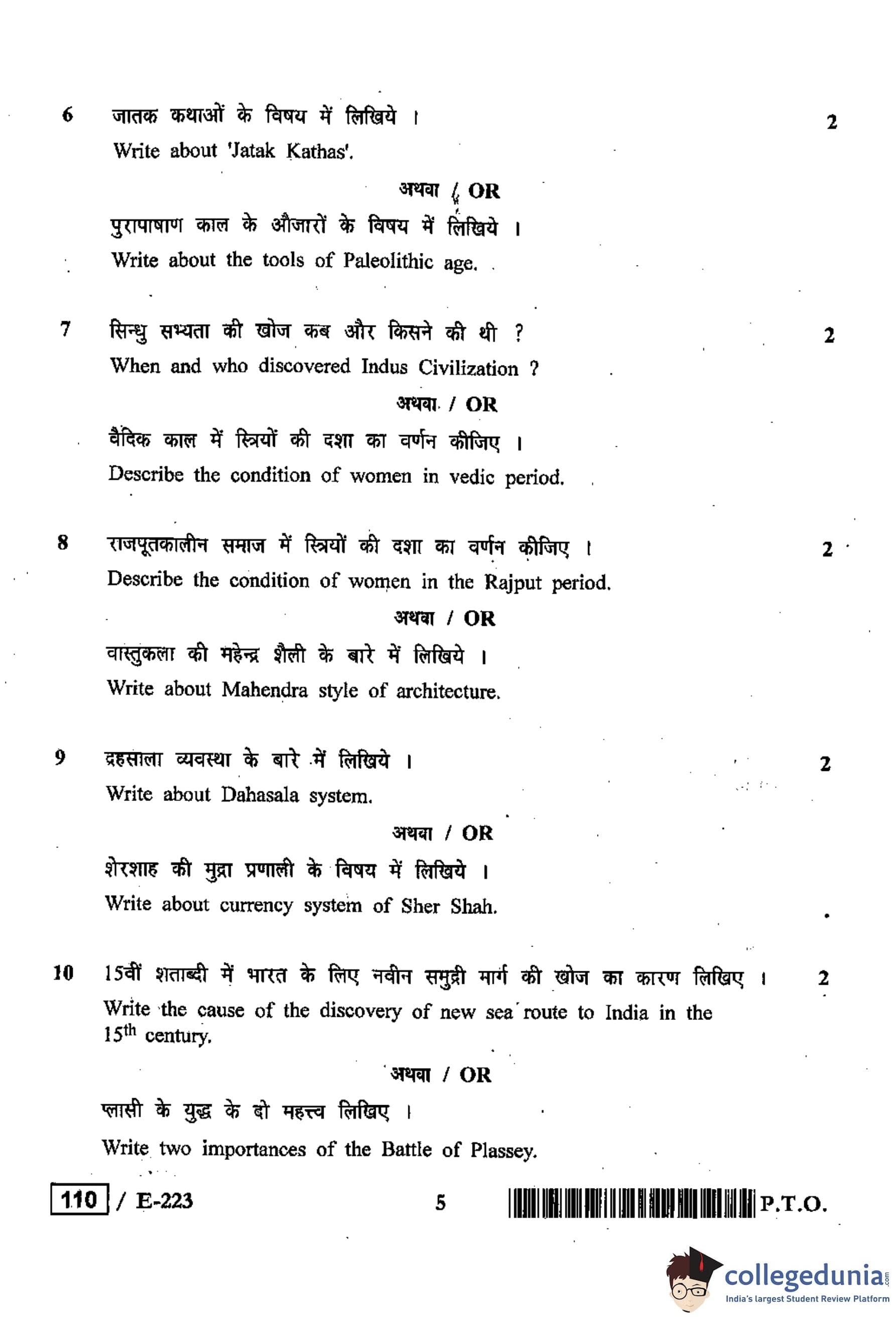 MP Board 12th History Question Paper 2019 with Answer Key