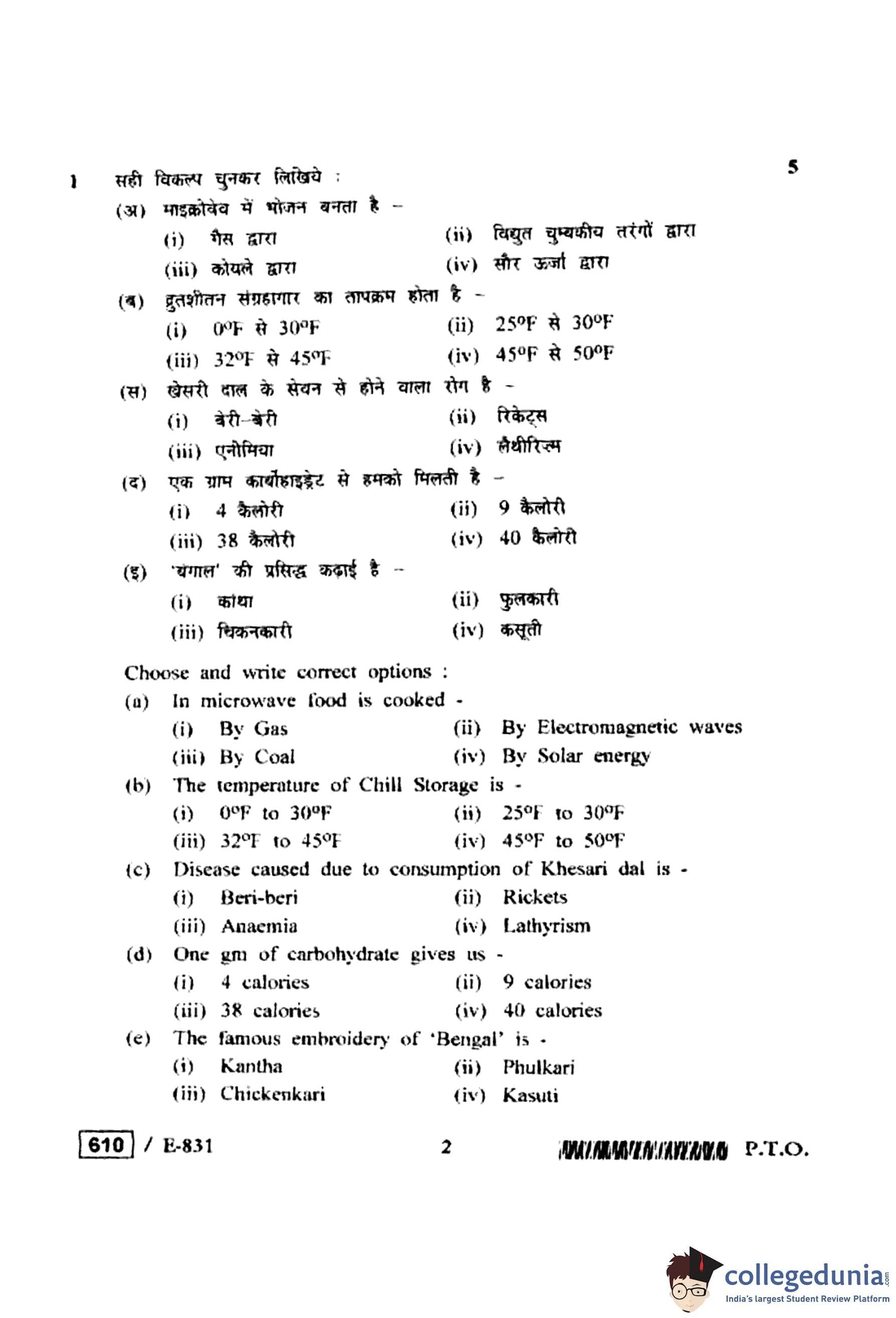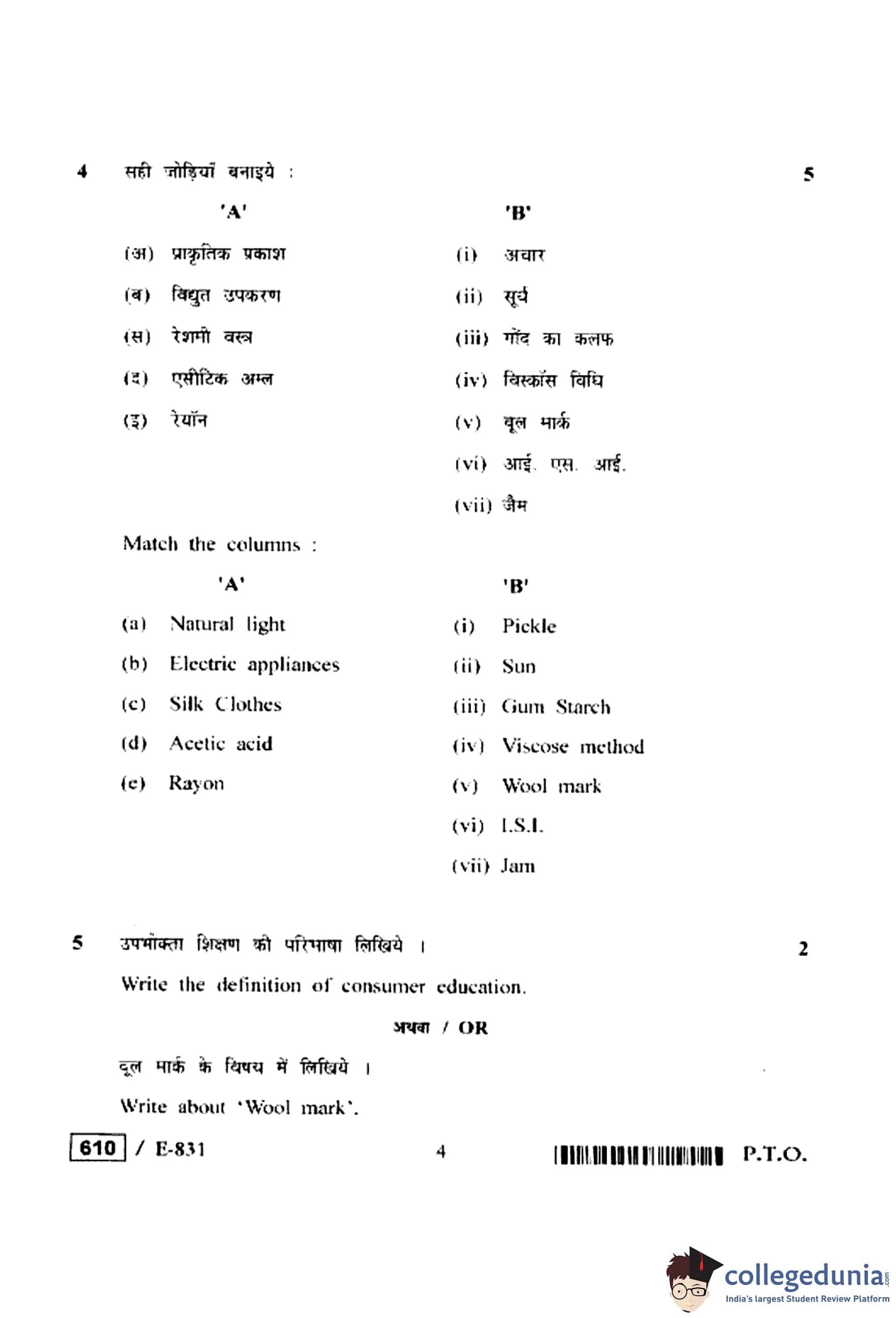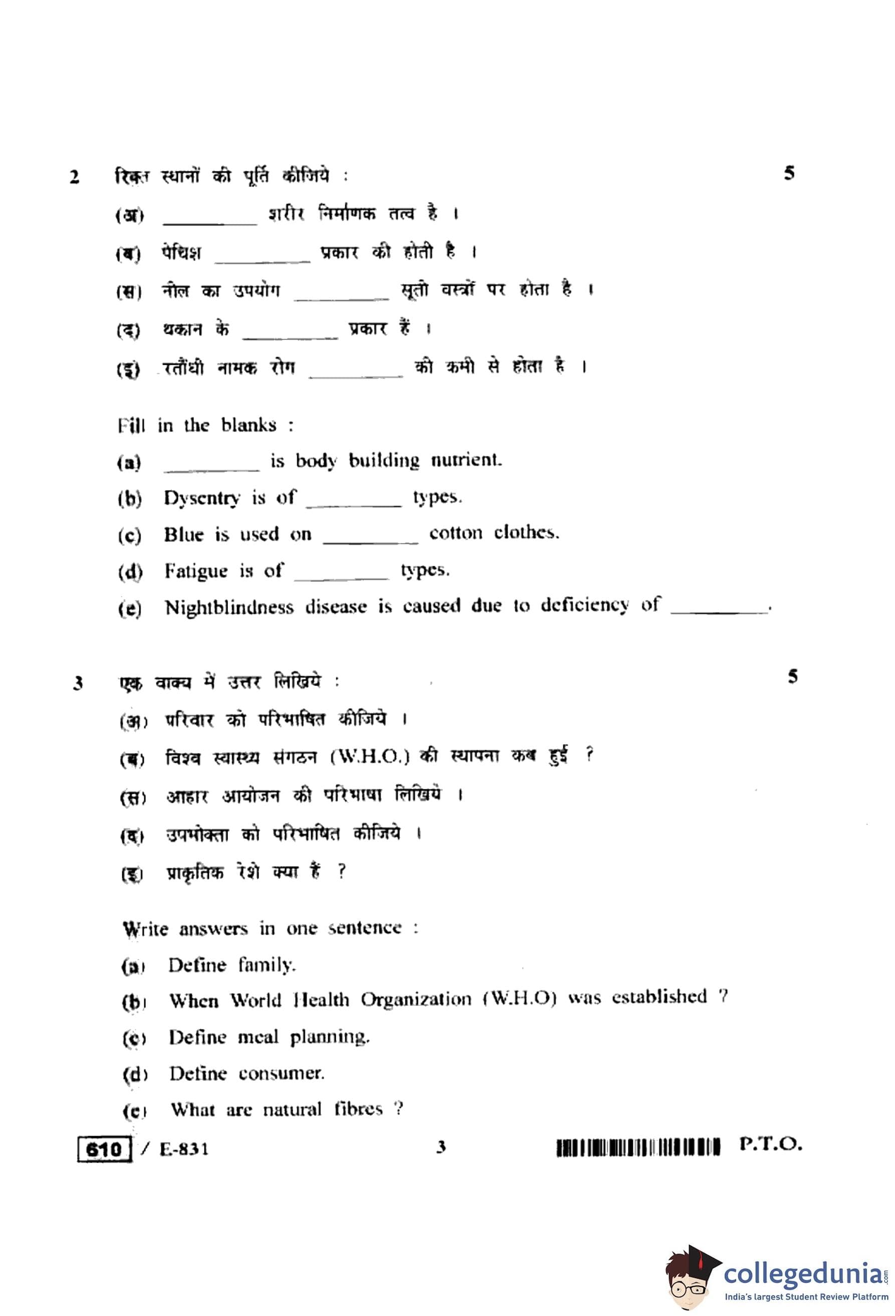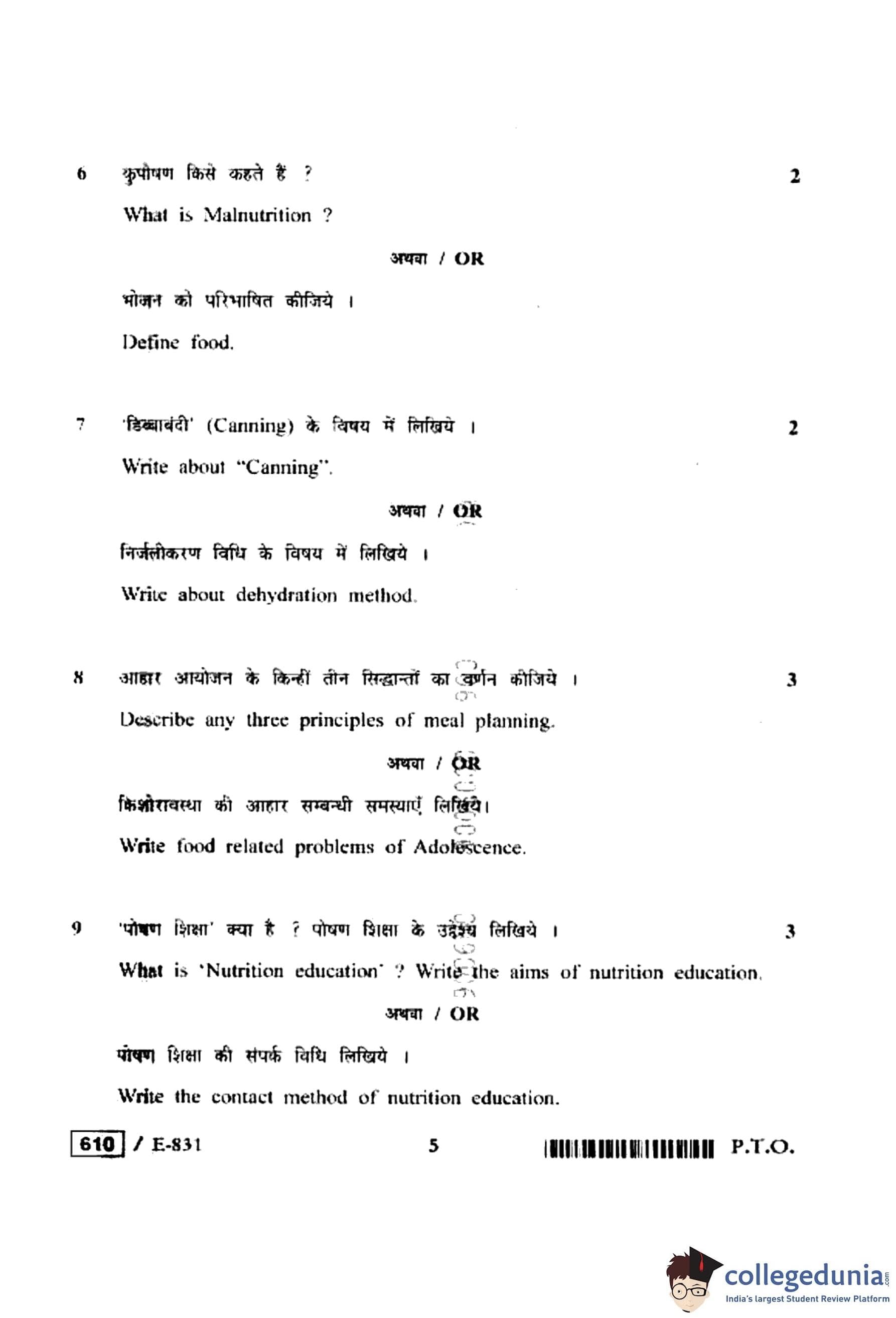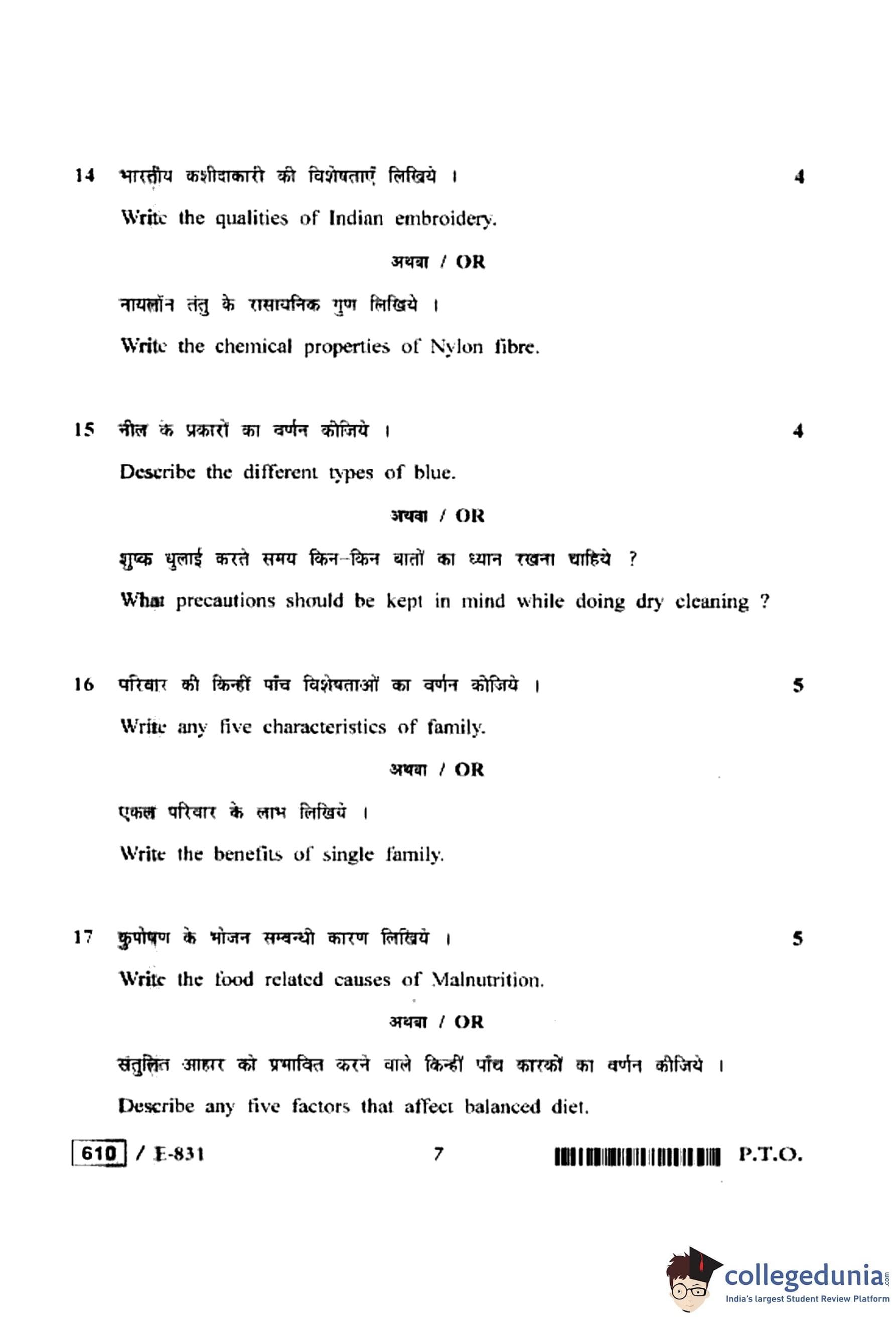 MP Board 12th Home Management, Nutrition & Textile Question Paper 2020 with Answer Key