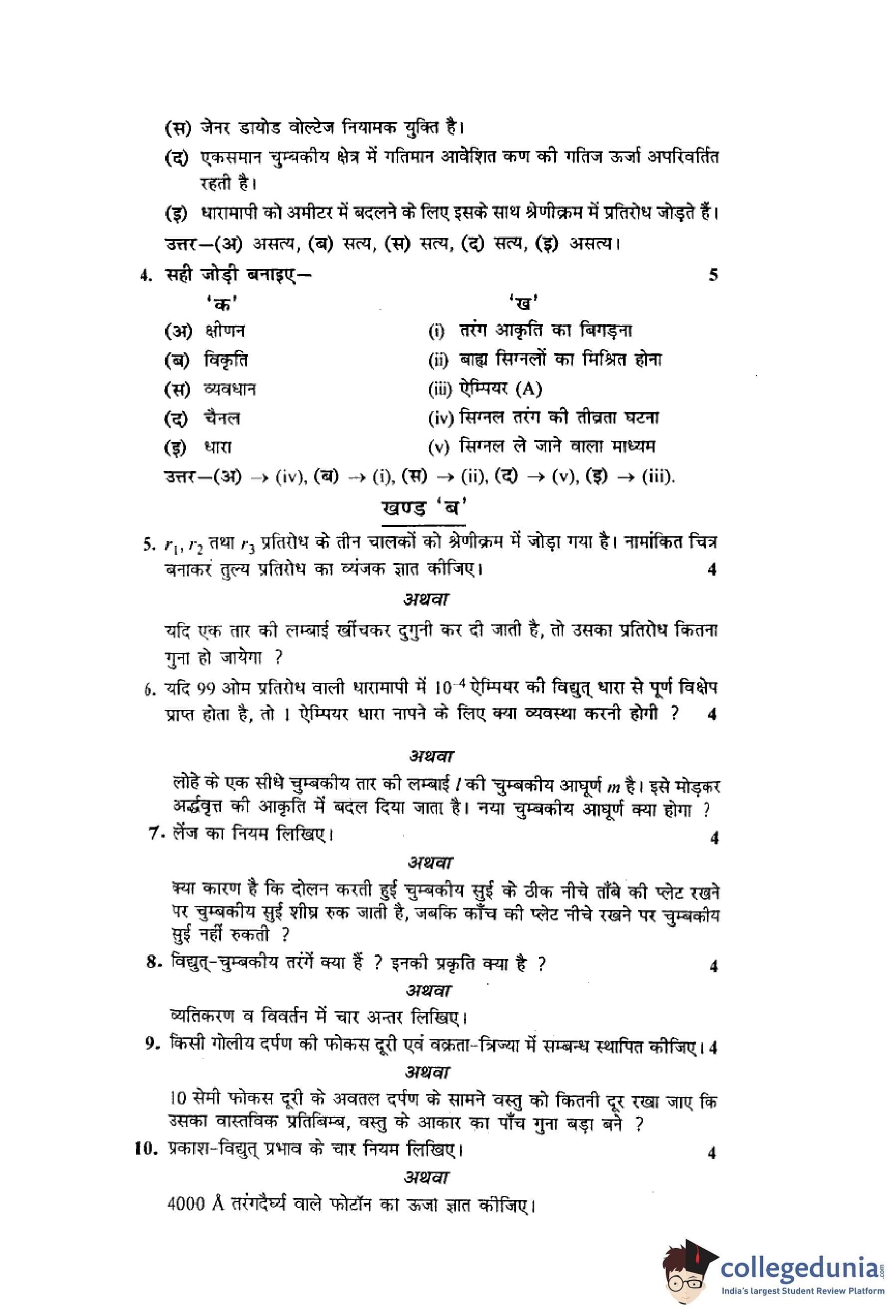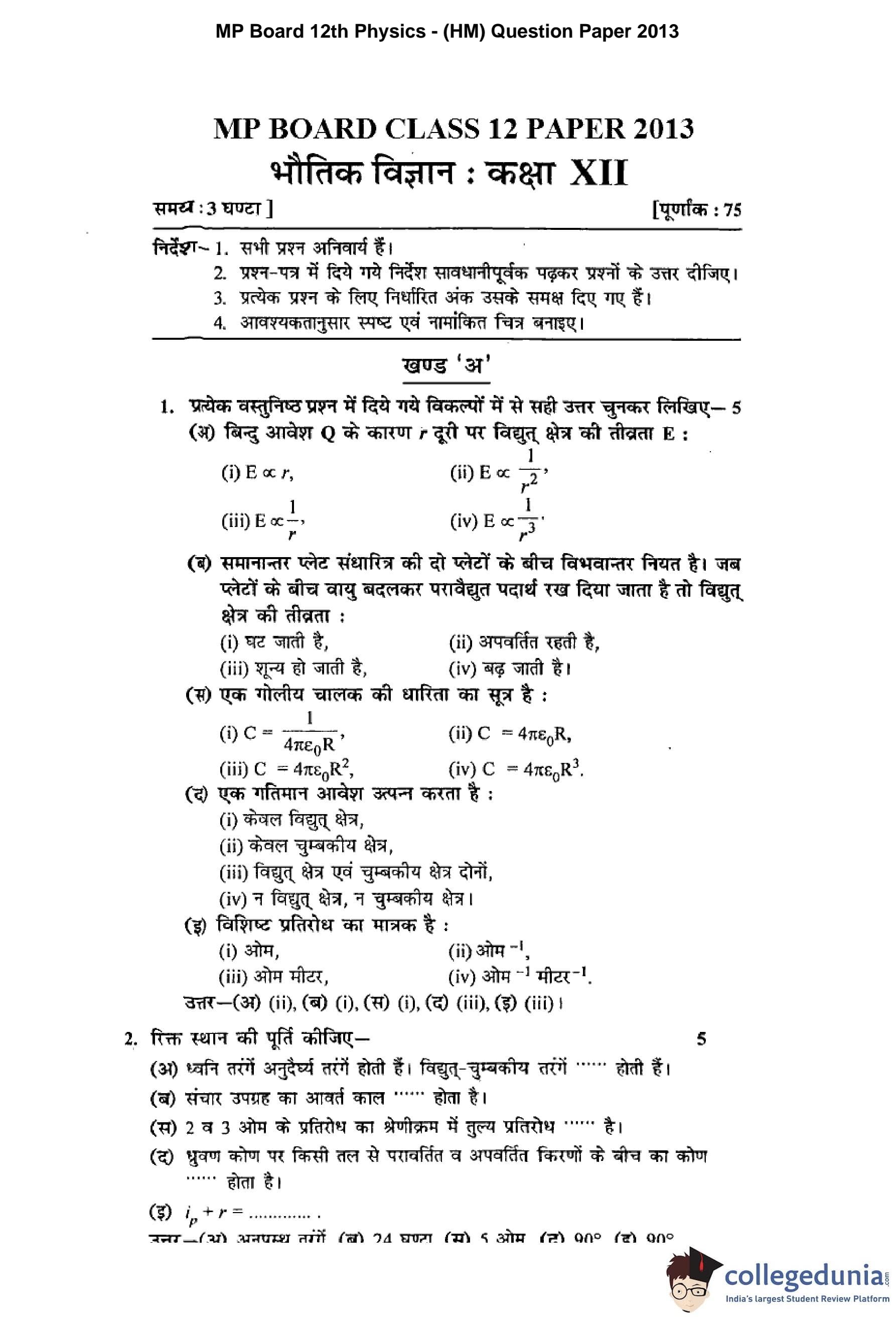 MP Board 12th Physics Hindi Question Paper 2013 with Answer Key
