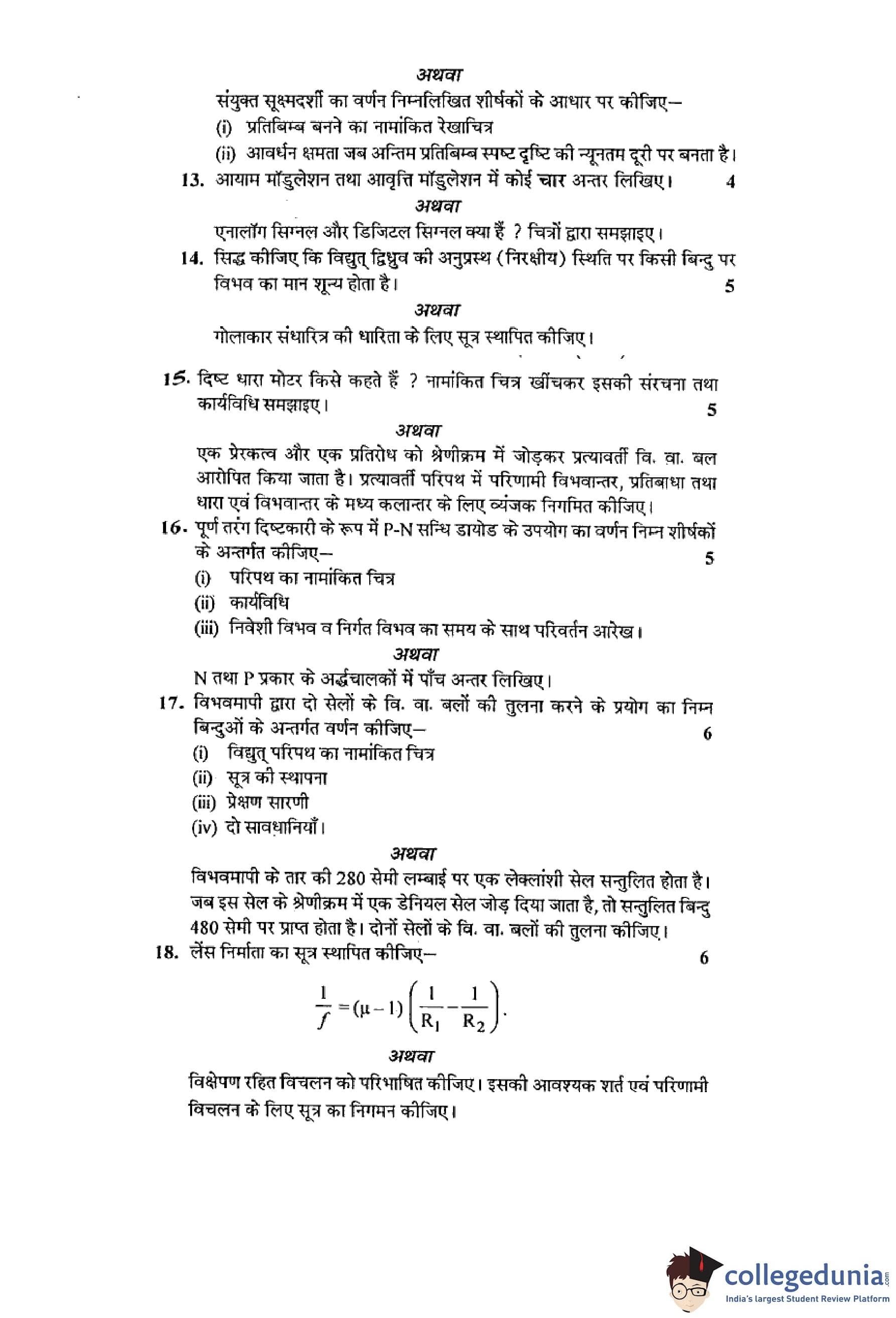 MP Board 12th Physics Hindi Question Paper 2014 with Answer Key pdf is available for download here. The exam was conducted by Madhya Pradesh Board of Secondary Education, MPBSE on March 10, 2014 in the Morning Session 8.30 AM to 11.30AM. The question paper comprised a total of 18 questions.