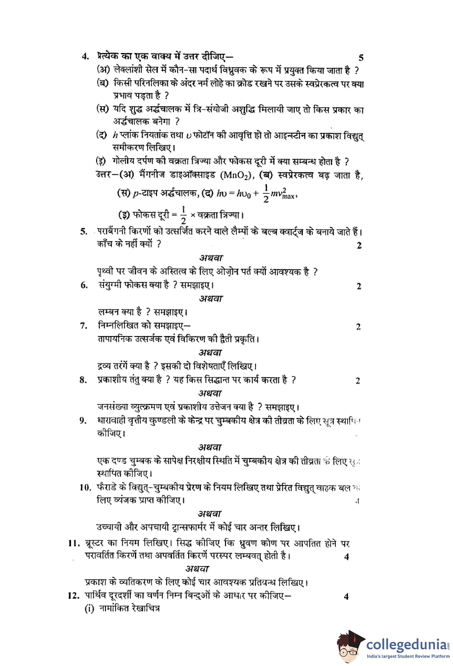MP Board 12th Physics Hindi Question Paper 2015 with Answer Key pdf is available for download here. The exam was conducted by Madhya Pradesh Board of Secondary Education, MPBSE on March 9, 2015 in the Morning Session 8.30 AM to 11.30AM. The question paper comprised a total of 18 questions.