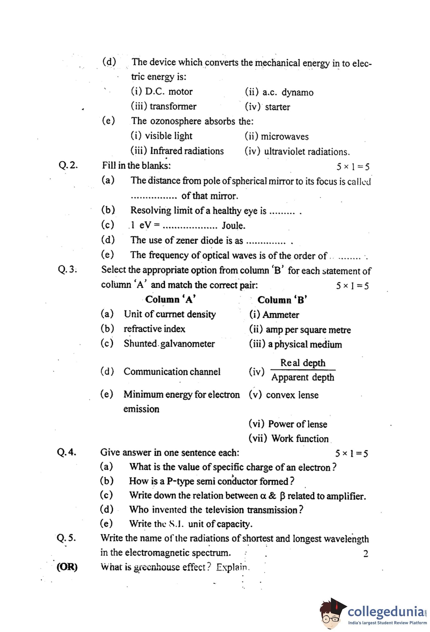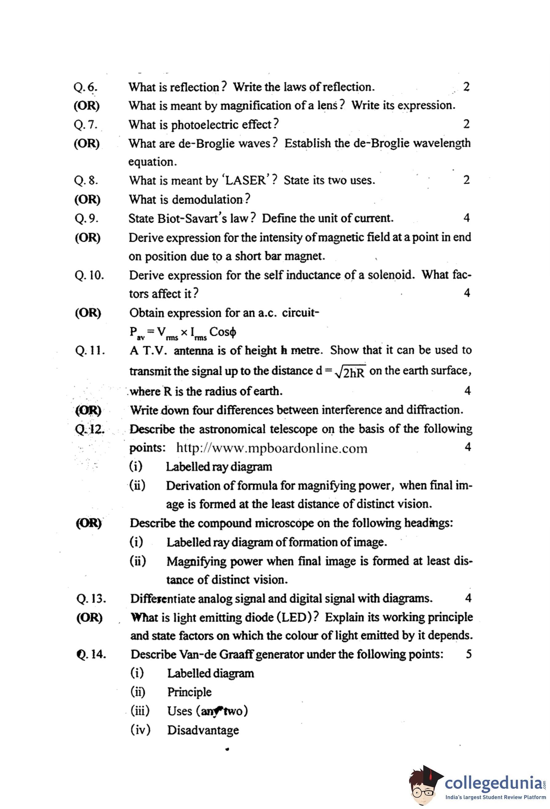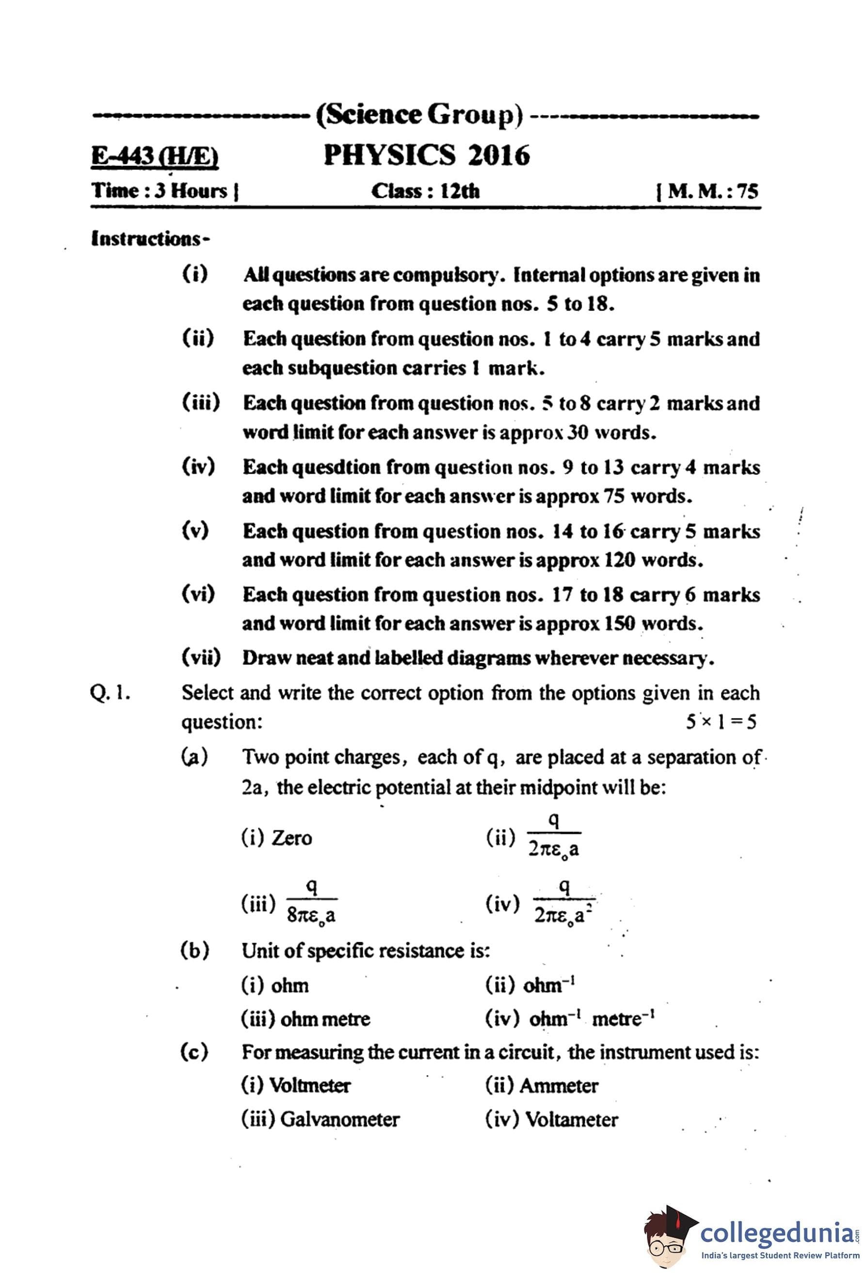MP Board 12th Physics Question Paper 2016 with Answer Key pdf is available for download here. The exam was conducted by Madhya Pradesh Board of Secondary Education, MPBSE on March 16, 2016 in the Morning Session 8.30 AM to 11.30AM. The question paper comprised a total of 18 questions.