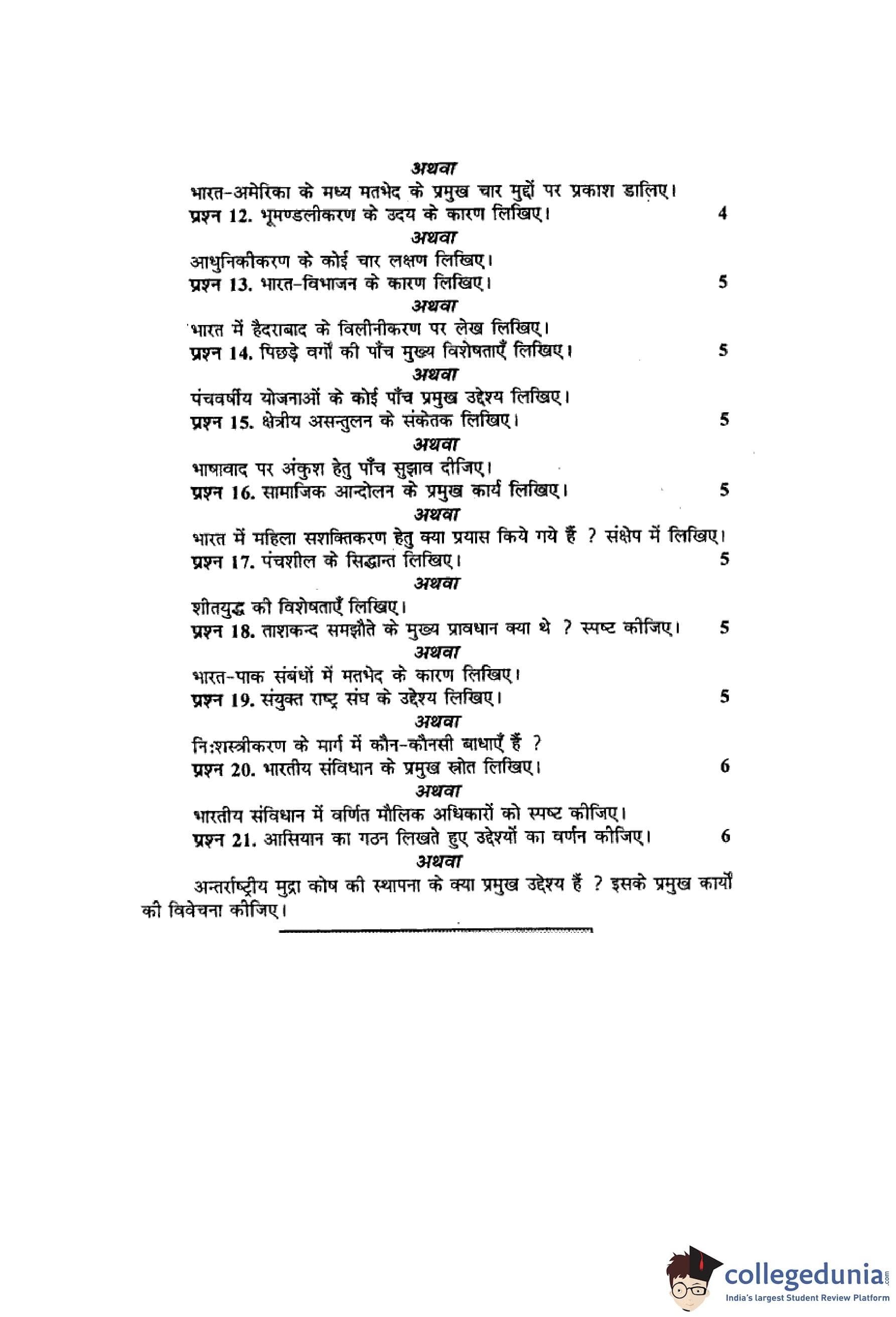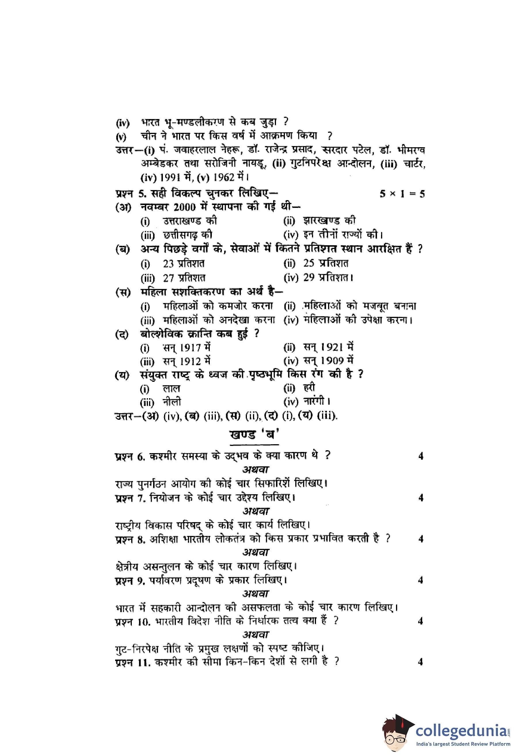 MP Board 12th Political Science Hindi Question Paper 2013 with Answer Key