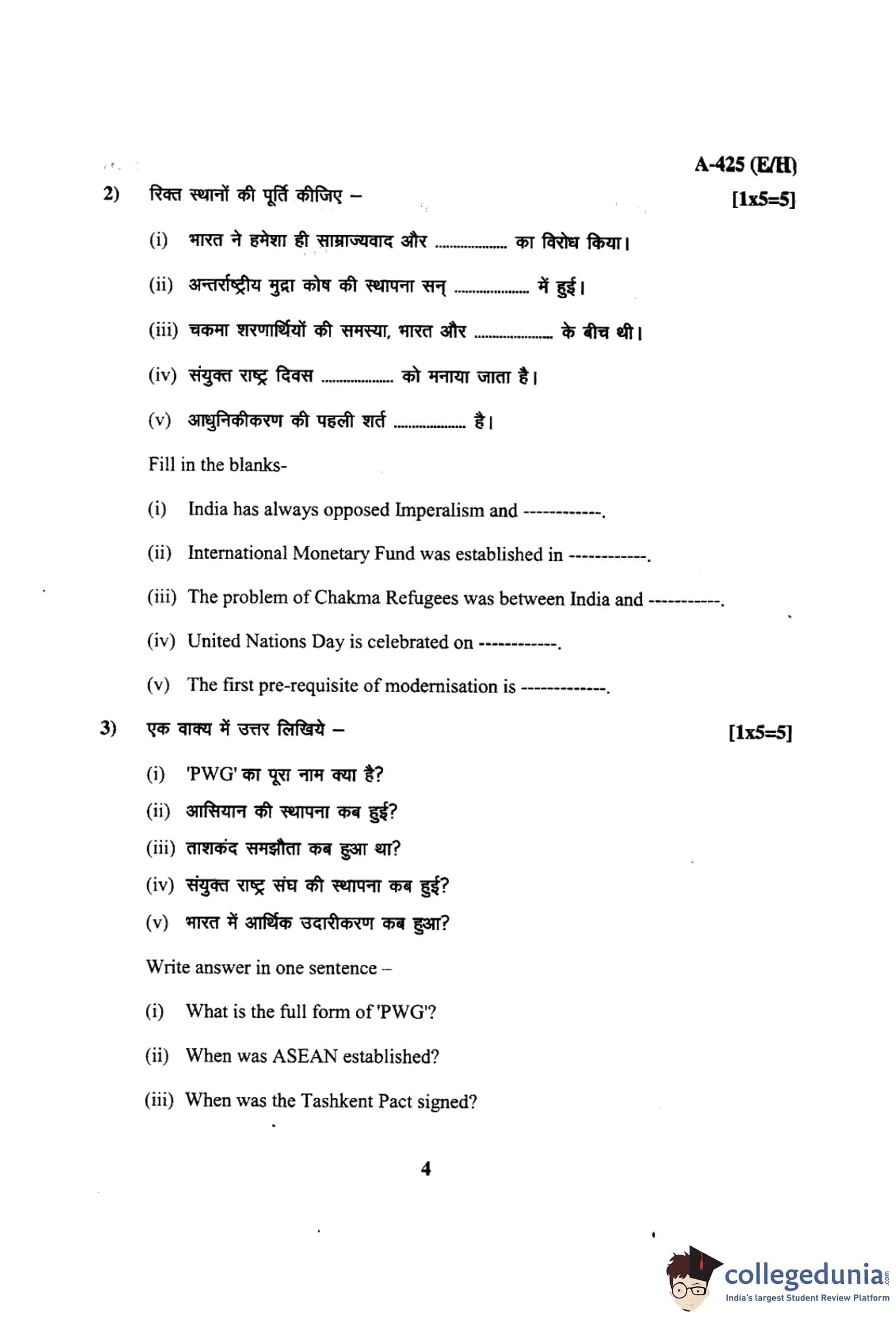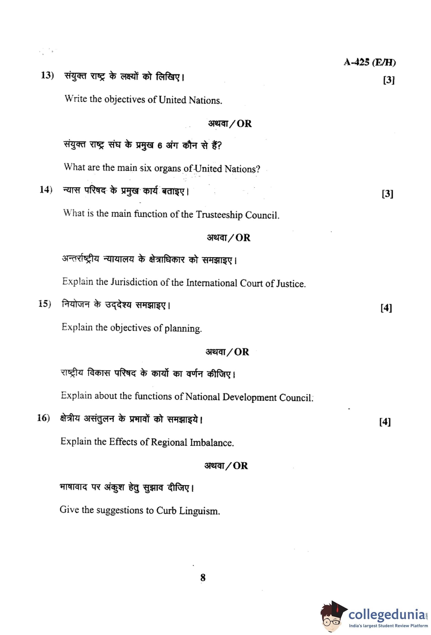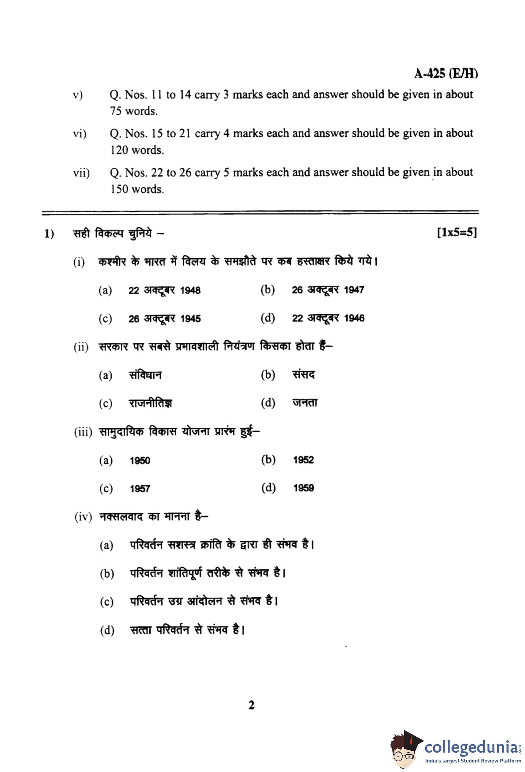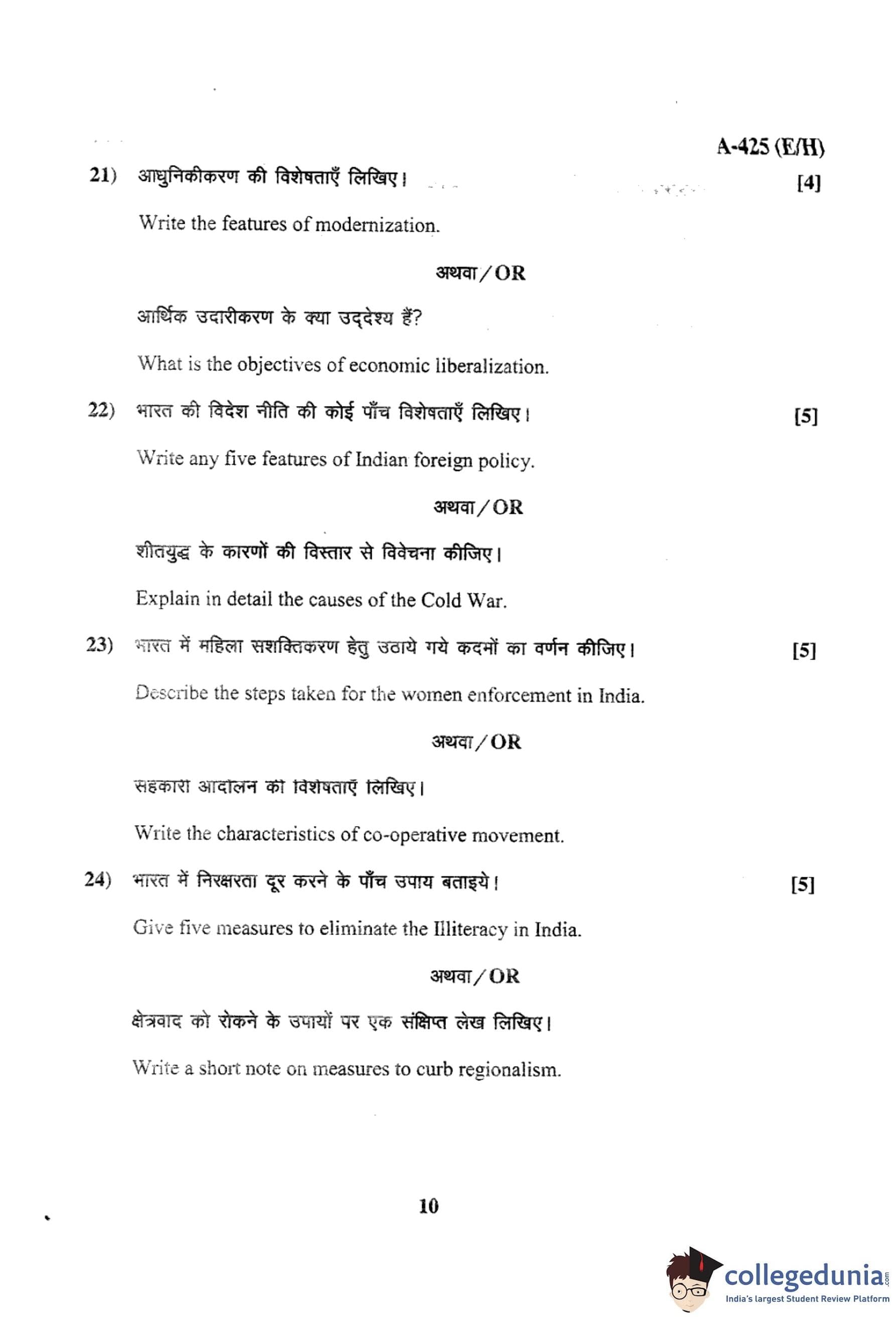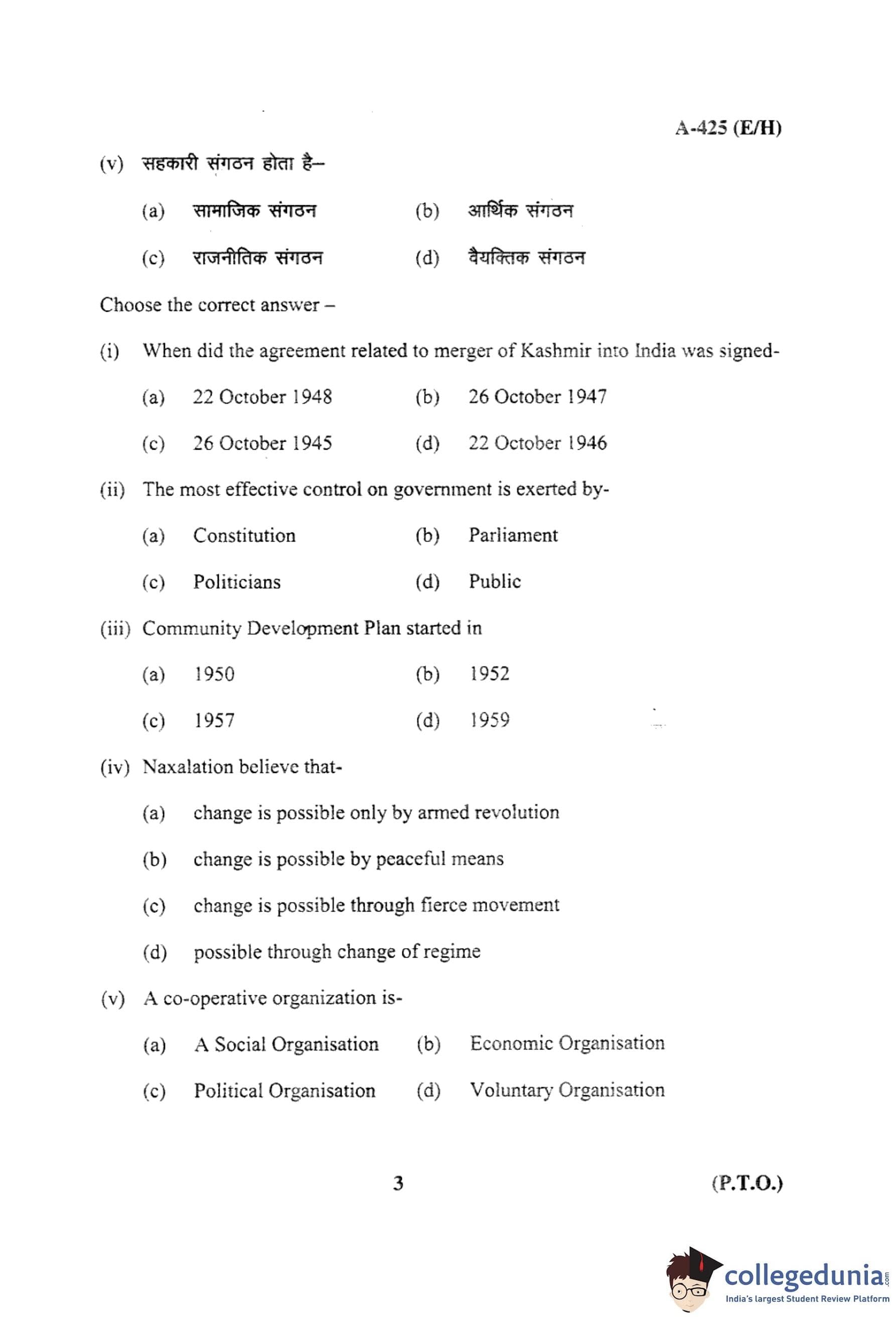 MP Board 12th Political Science Question Paper 2017 with Answer Key