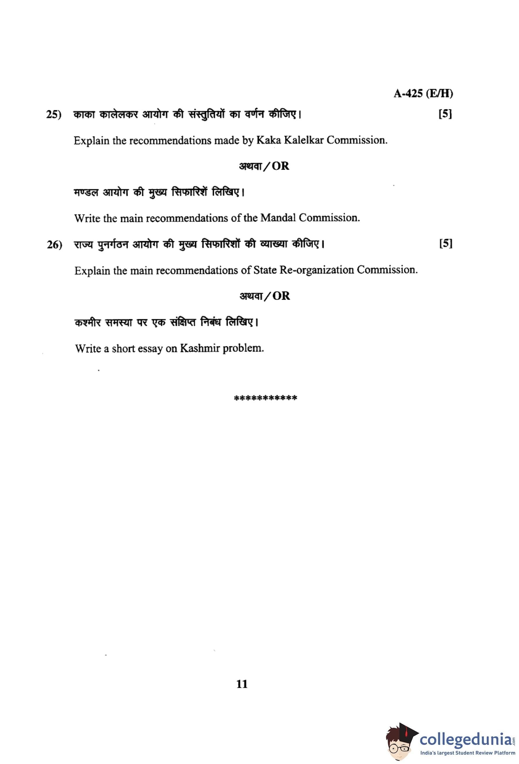 MP Board 12th Political Science Question Paper 2017 with Answer Key pdf is available for download here. The exam was conducted by Madhya Pradesh Board of Secondary Education, MPBSE on March 20, 2017 in the Morning Session 8.30 AM to 11.30AM. The question paper comprised a total of 26 questions.